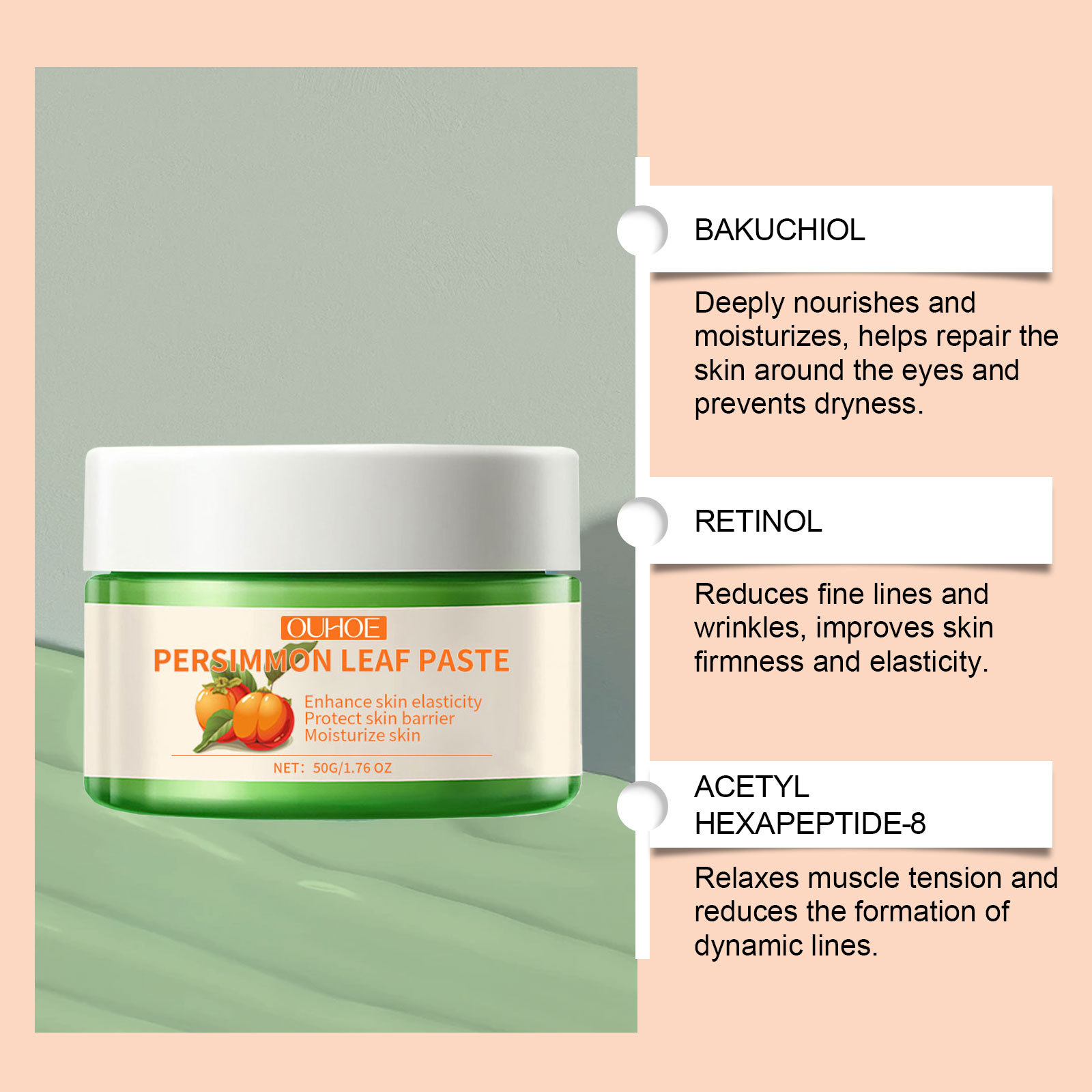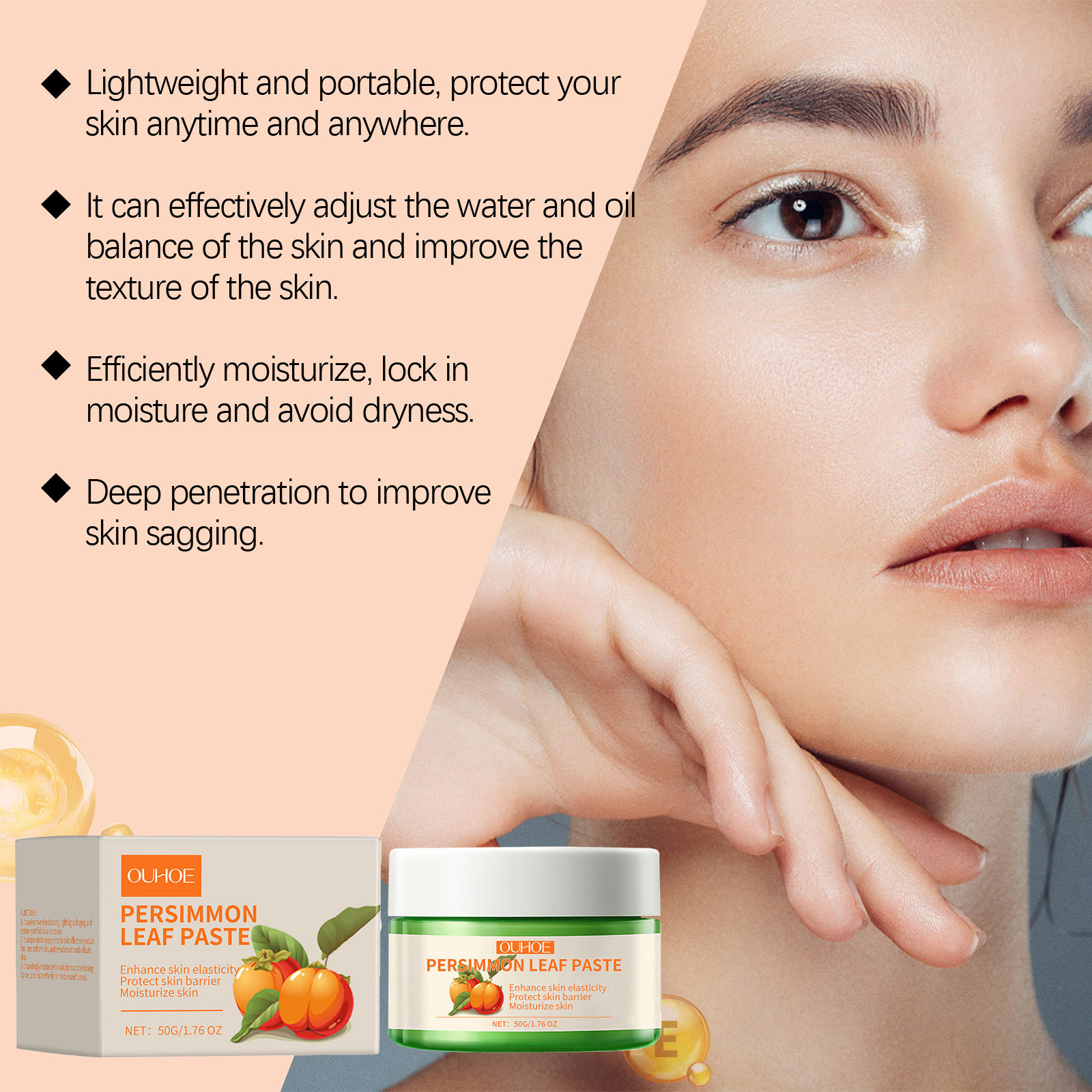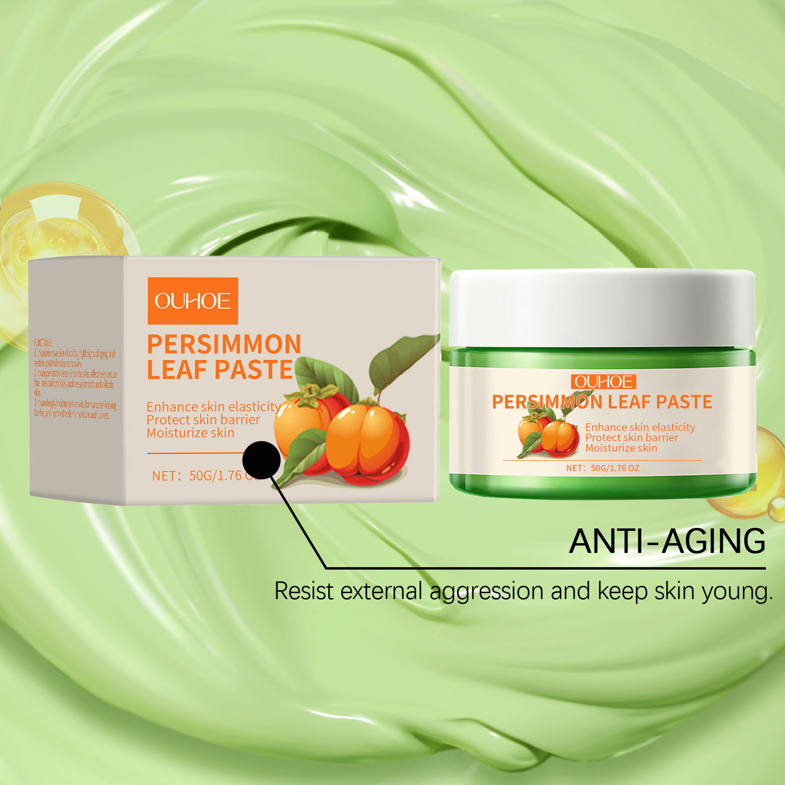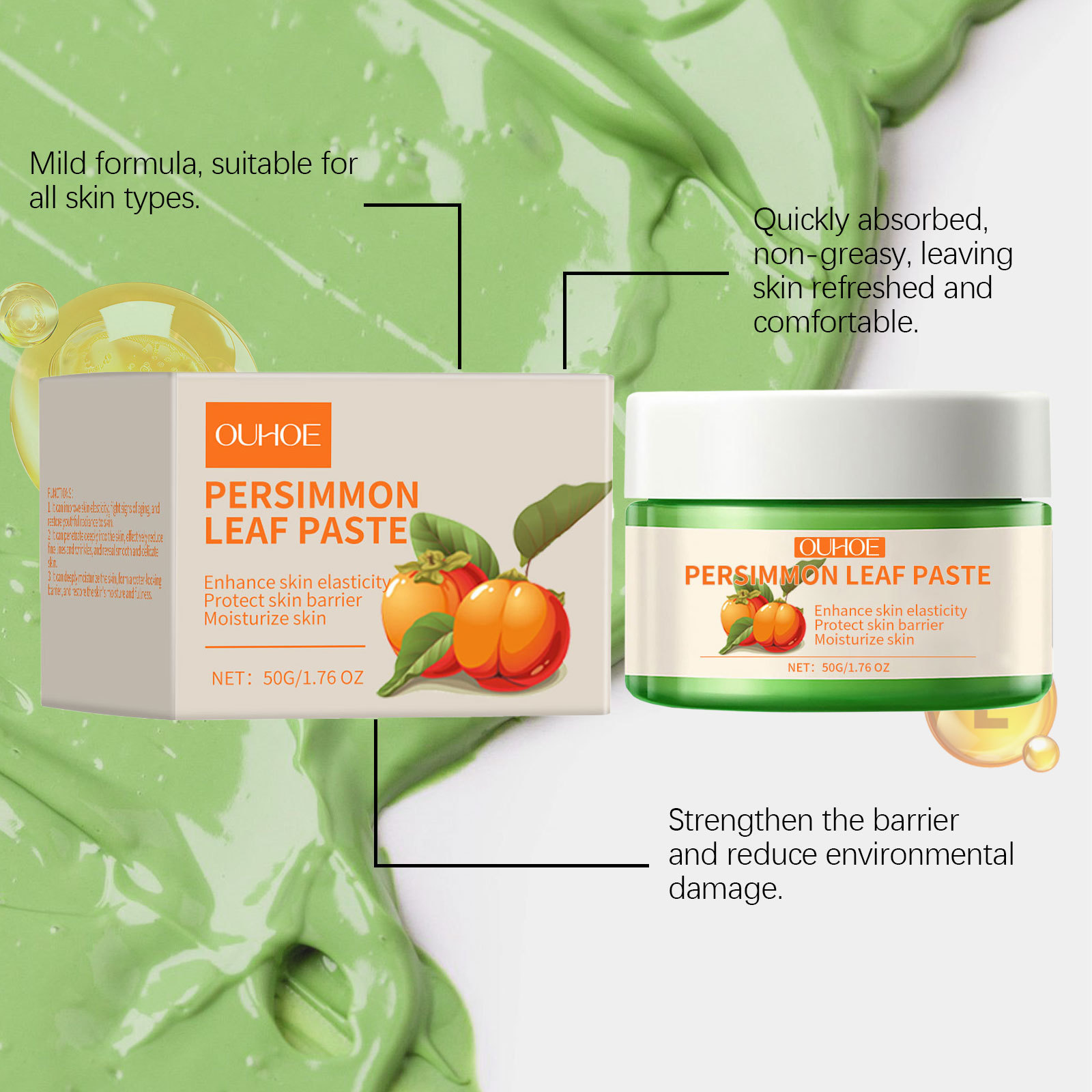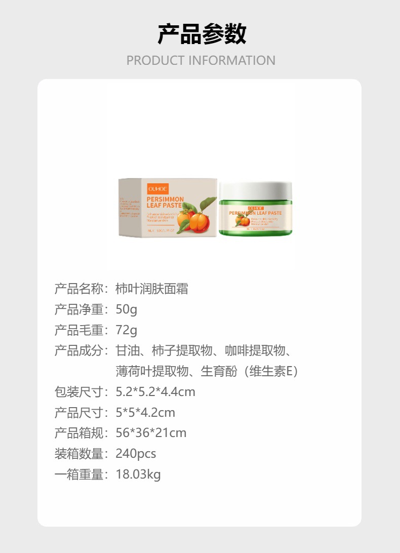 OUHOE 감잎 보습 크림 보습 및 수화 탄성 얼굴 피부 미세 보습 및 케어 크림