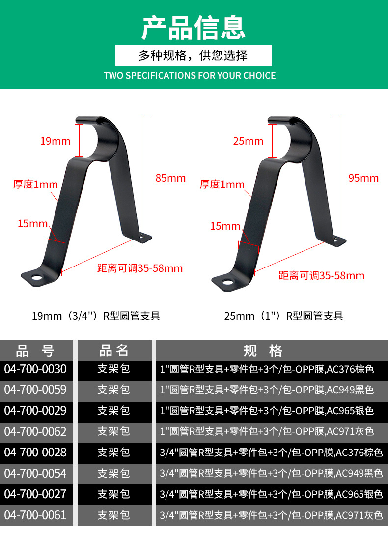 커튼 봉 브래킷 탄력성 설치 용이 로마 봉 액세서리 크로스보더 19mm25mm 철제 R형 브래킷 지지대스토어 가기