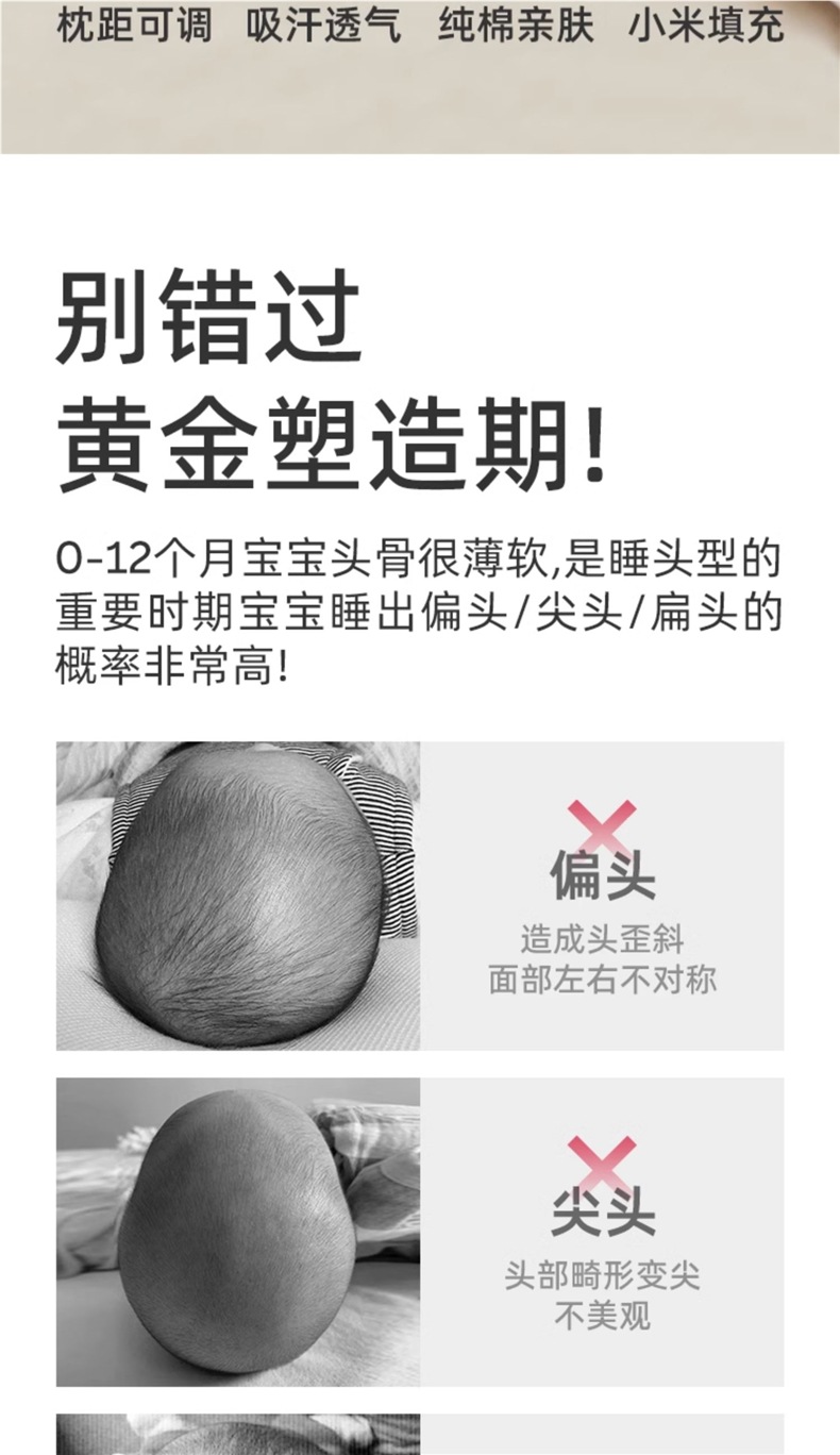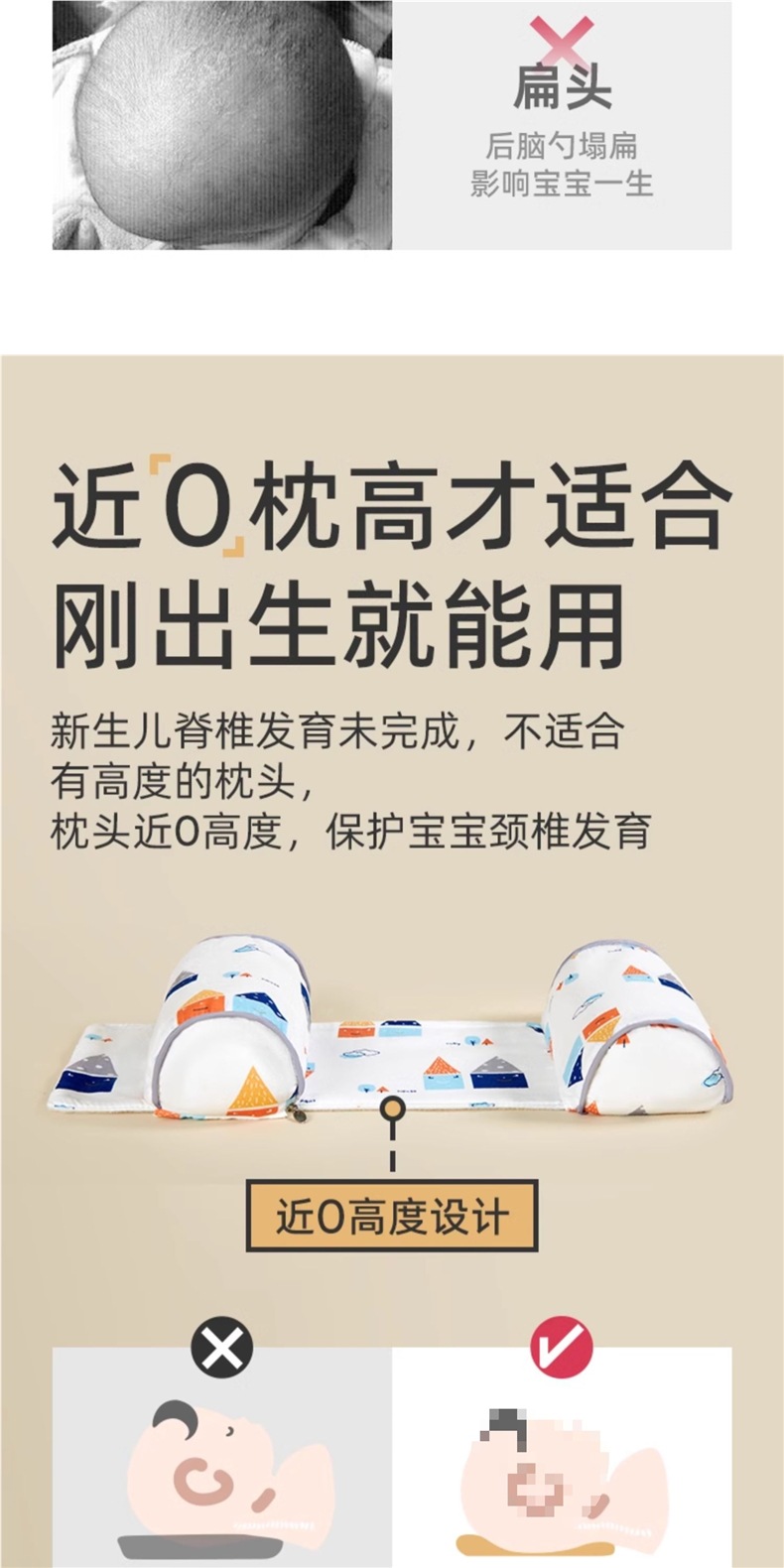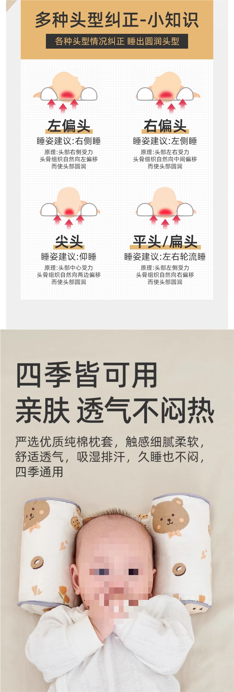 Jing Qi 아기 음영 베개 기장 유아용 아기 올바른 편차 방지 헤드 메밀 신생아 음영 측면 수면스토어 가기