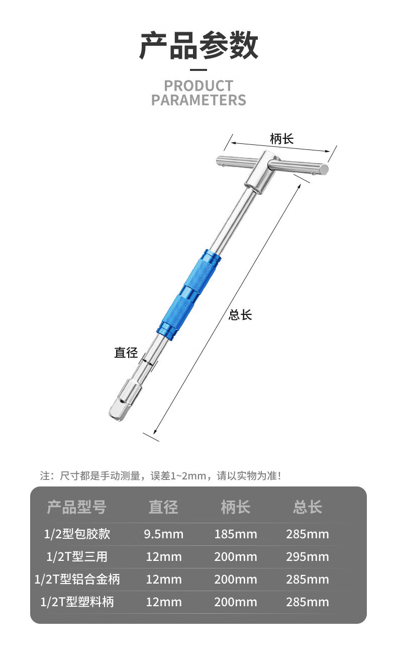 T 형 대형 플라이 렌치 소켓 다기능 노동 절약 슬라이딩 로드 어댑터 1/2t 형 T 형 렌치 조합 스위치로드