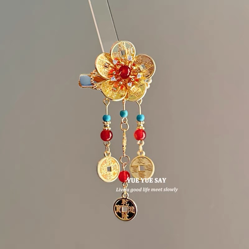 재정 자원은 ~ 레트로 국가 스타일의 황금 구리 돈 꽃 술 헤어 클립 새로운 중국 하이 엔드 사이드 클립으로 굴러 가고 있습니다.스토어 가기