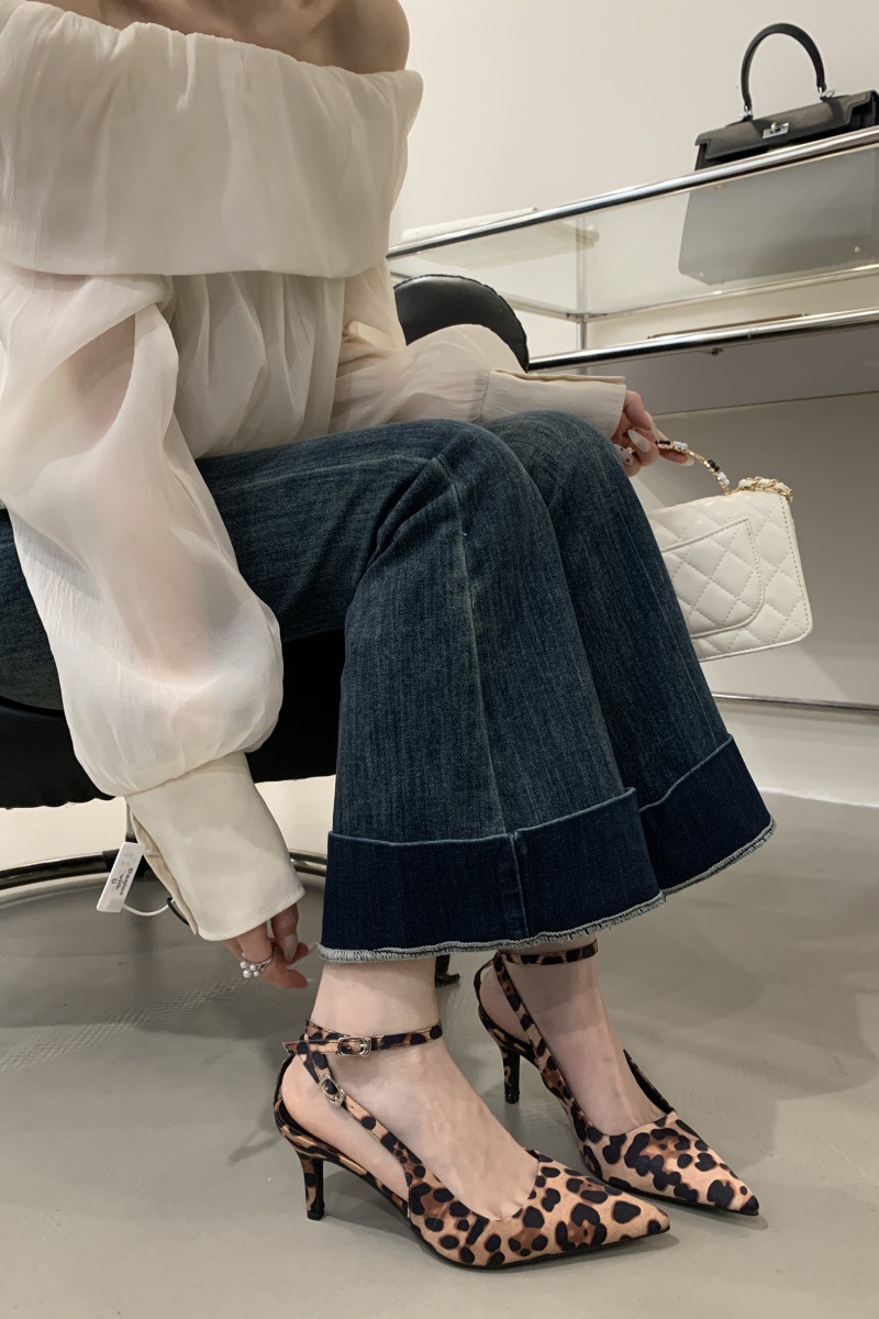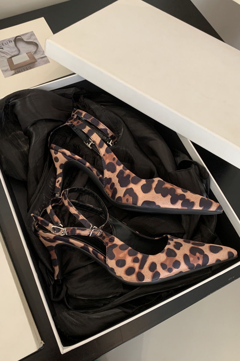 2025 봄과 가을 새로운 유럽과 미국 스타일 섹시한 레오파드 무늬 굽 높은 뾰족한 토끼 신발 여성 유행 우아한 하이힐스토어 가기