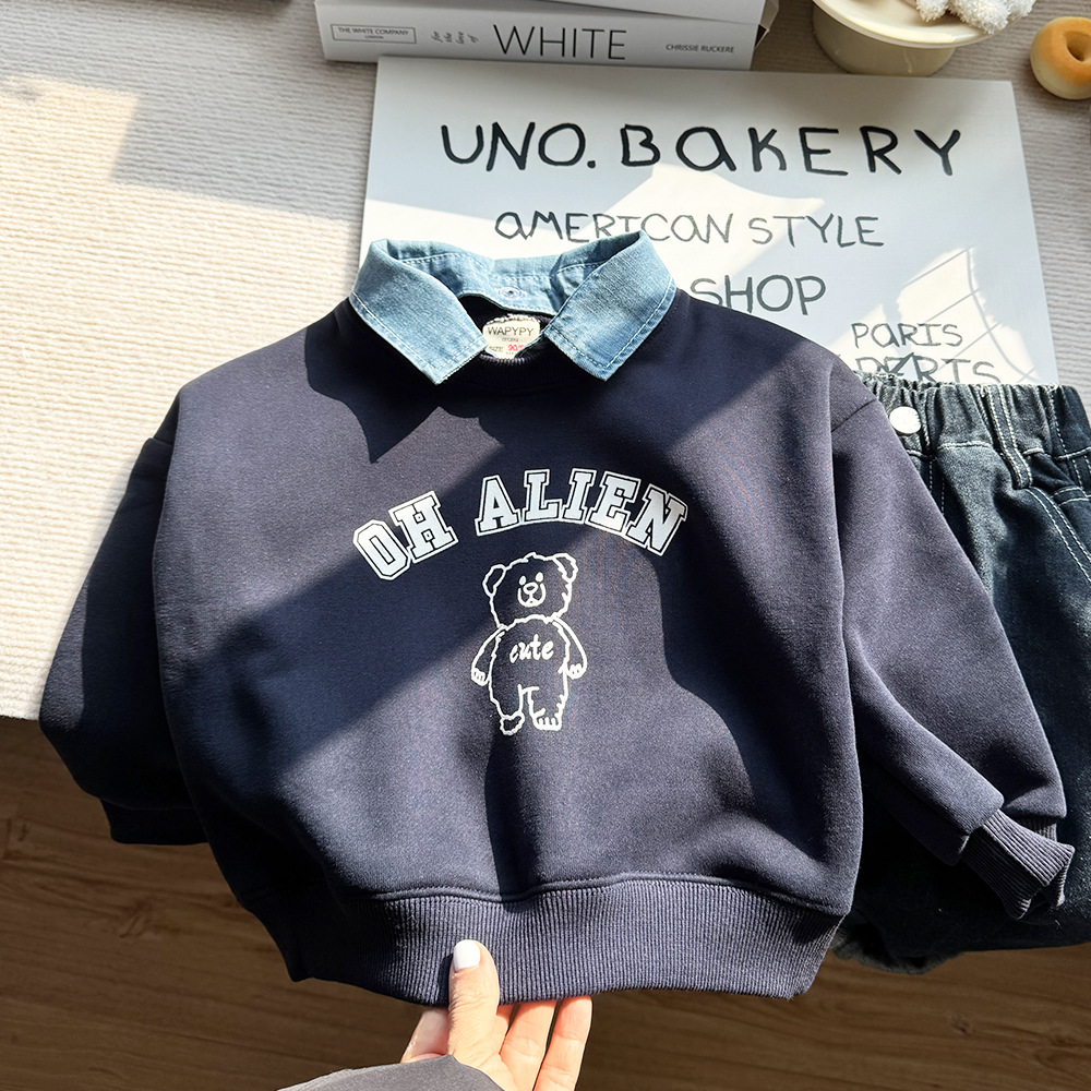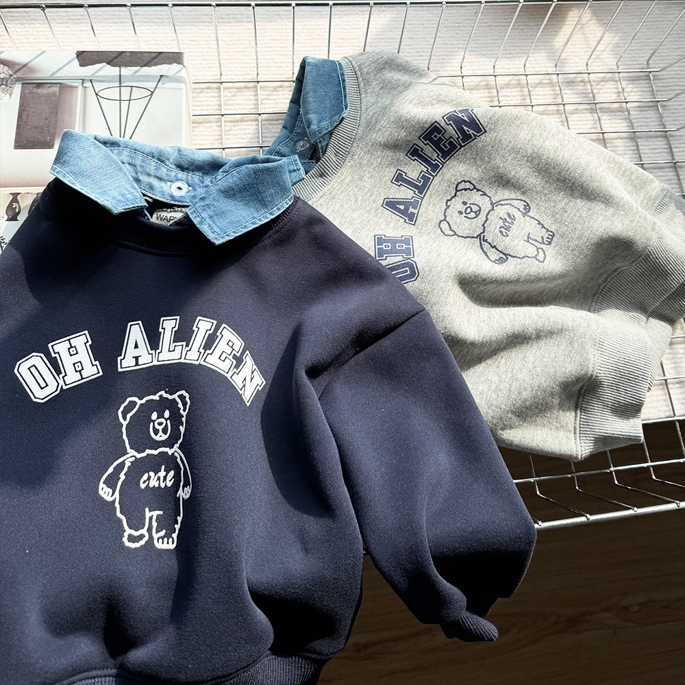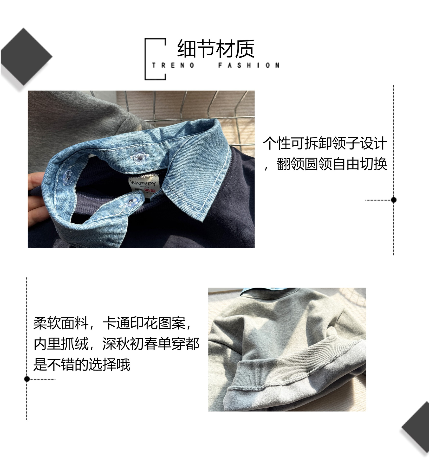 어린이 개인화 된 분리 가능한 칼라 스웨트 봄 가을과 겨울 소년 아기 인쇄 만화 벨벳 가짜 투피스 탑스토어 가기
