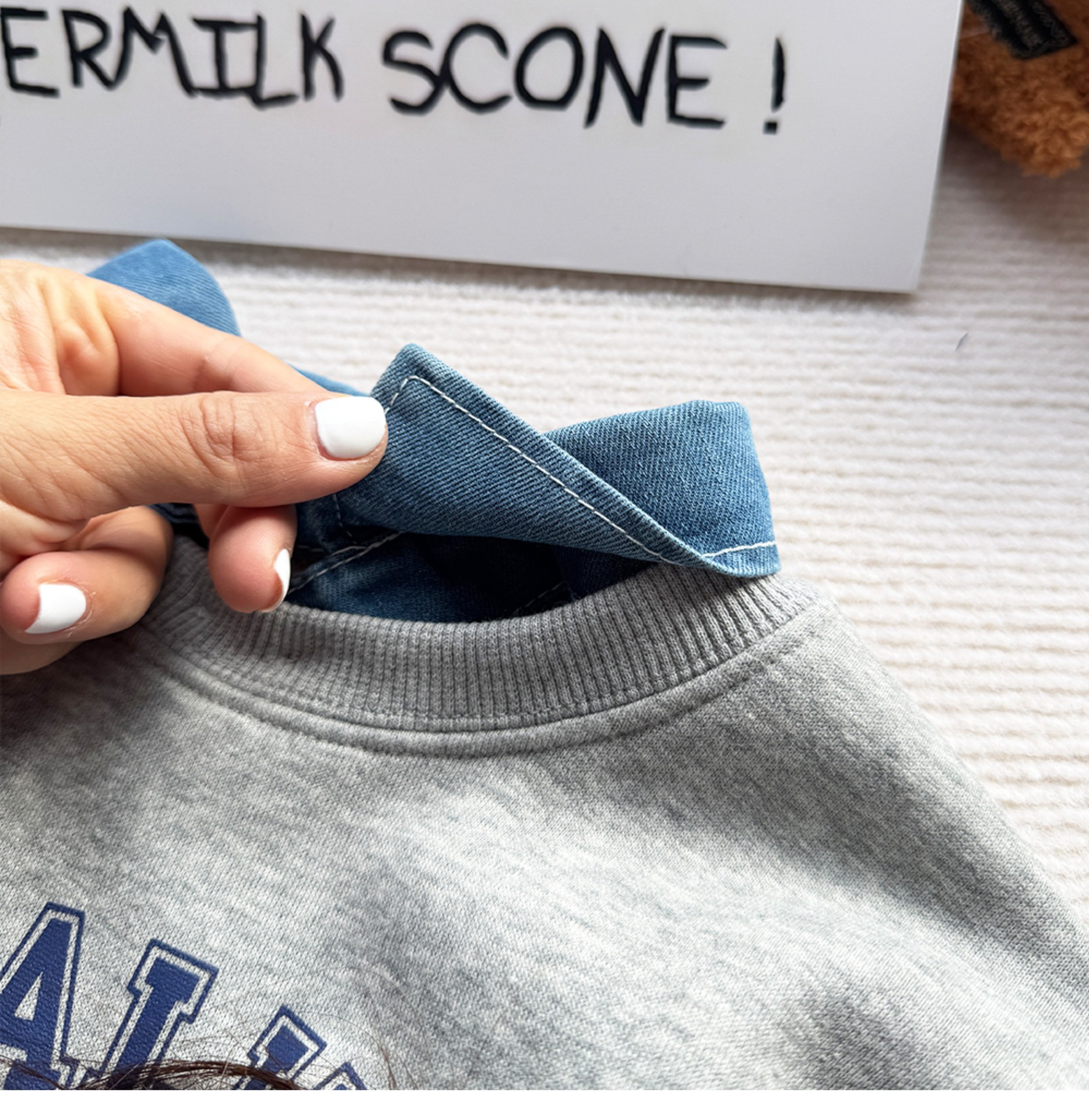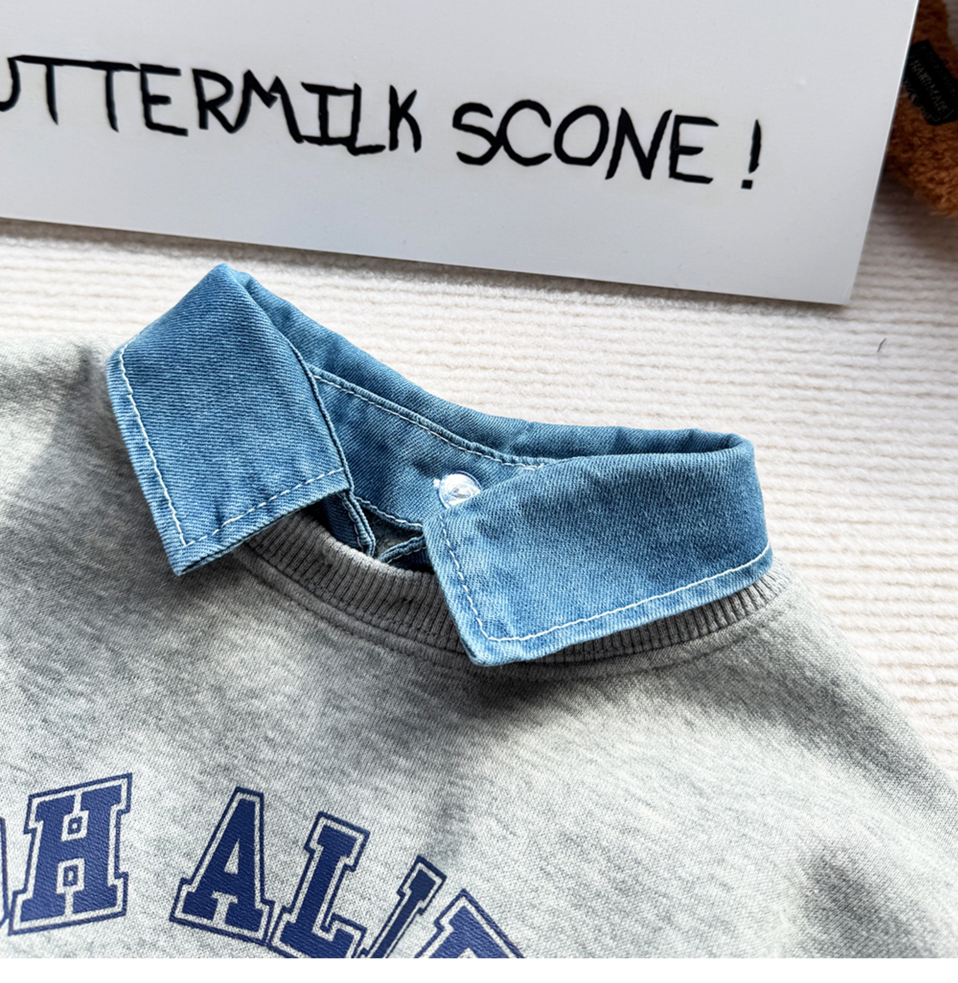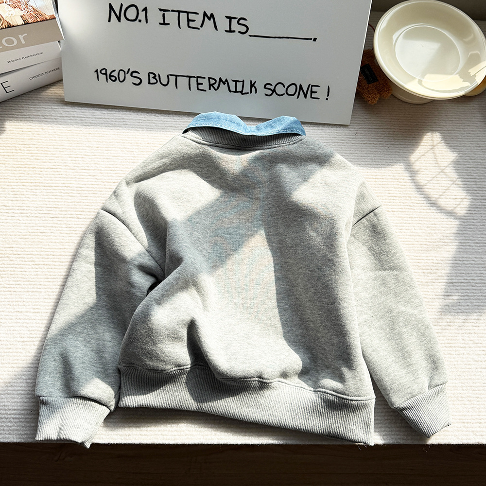 어린이 개인화 된 분리 가능한 칼라 스웨트 봄 가을과 겨울 소년 아기 인쇄 만화 벨벳 가짜 투피스 탑스토어 가기