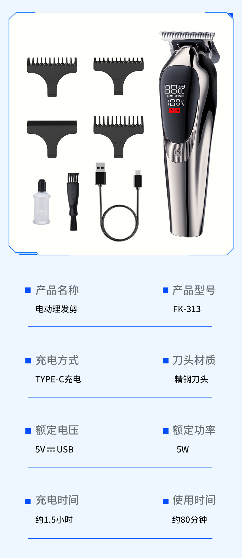 새로운 전기 헤어 클리퍼 가정용 헤어 살롱 TYPE-C 빠른 충전 조각 도매 오일 헤드 전기 클리퍼 도매