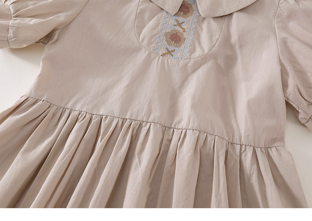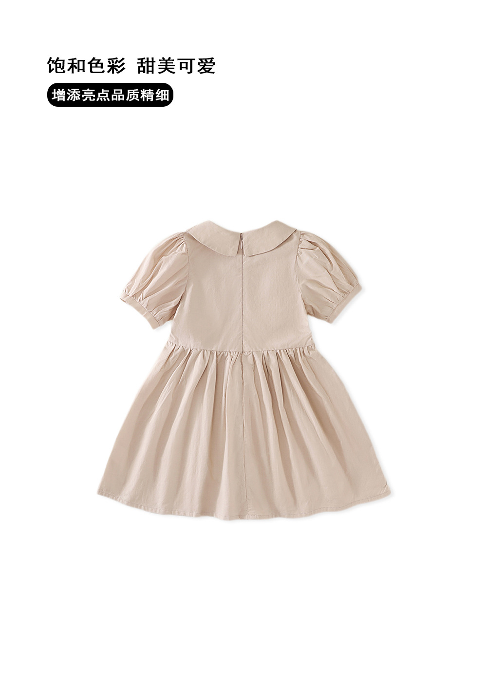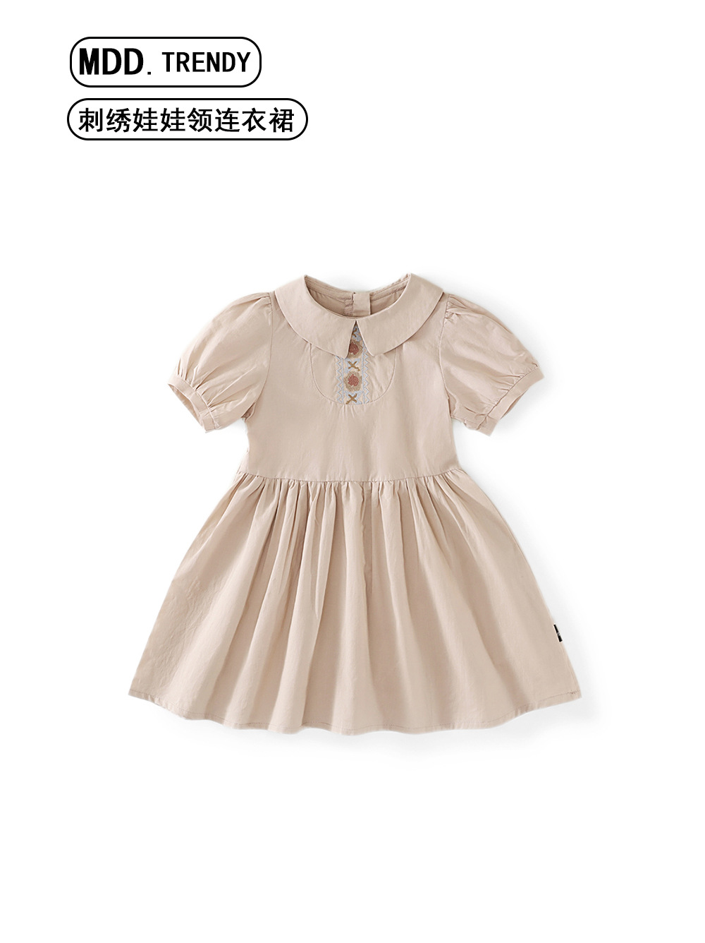 MDD 소녀 원피스 2025 봄과 여름 새로운 인형 칼라 짧은 소매 프랑스 소녀 핑크 자수 스커트