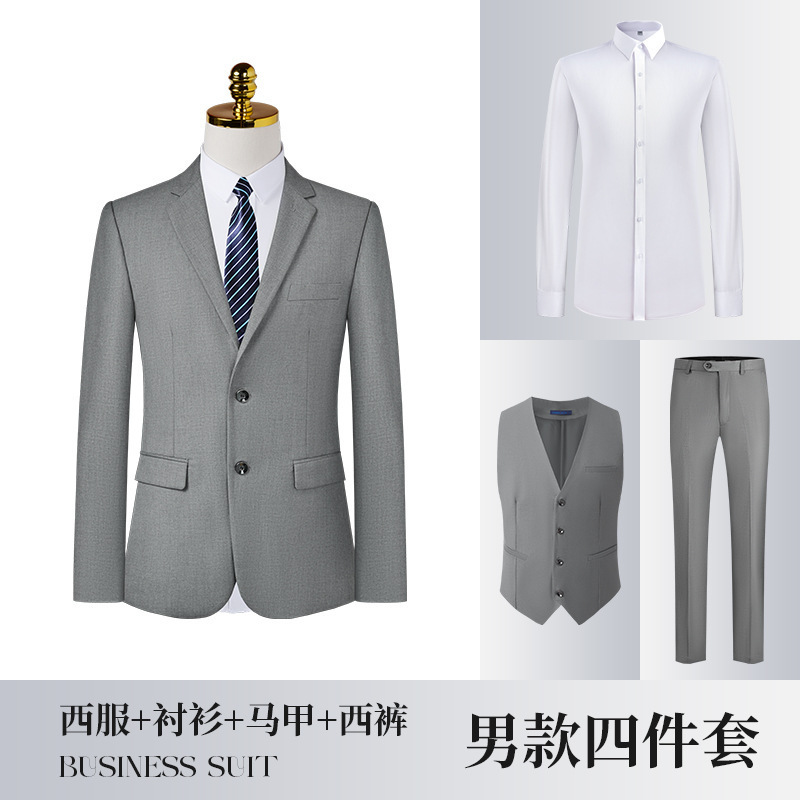 남성 정장 세트, 그레이 고급 사계절 정장, 직장 면접, 교사, 전문직 정장, 작업복스토어 가기