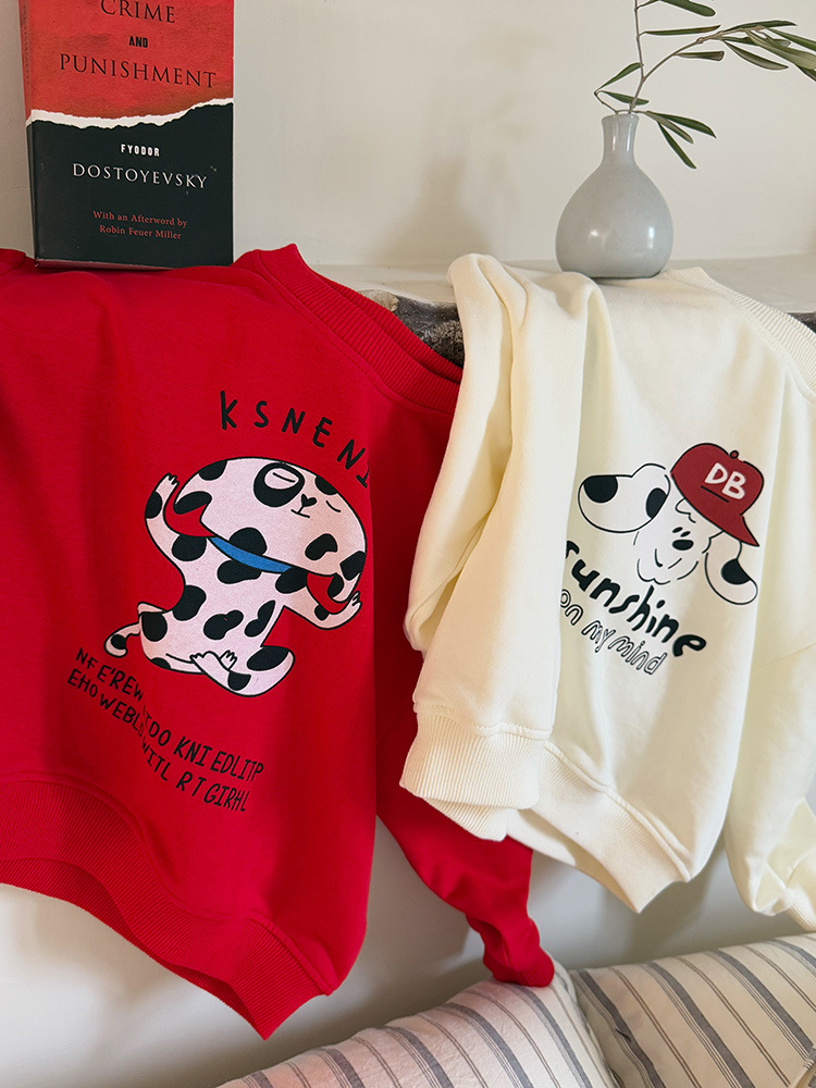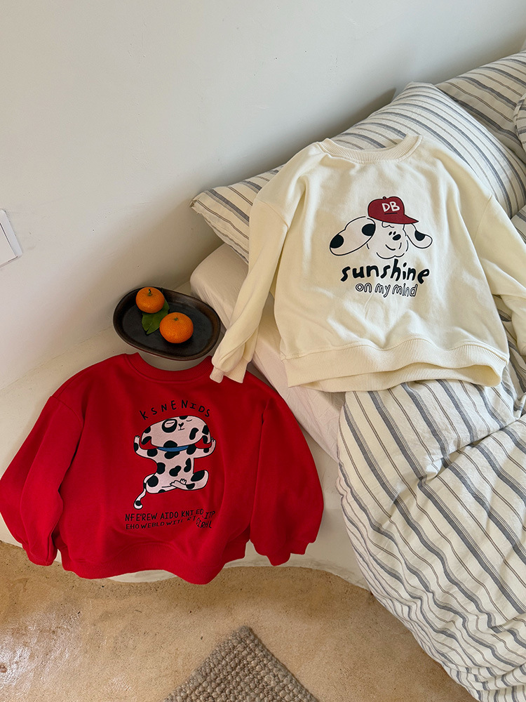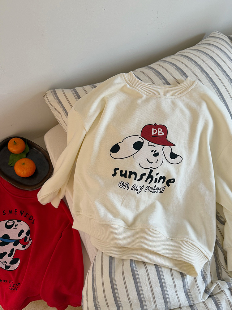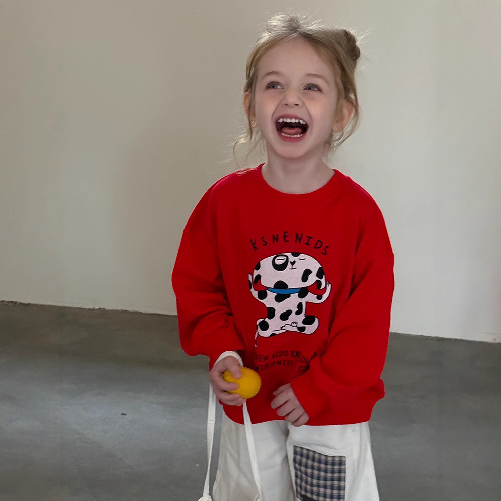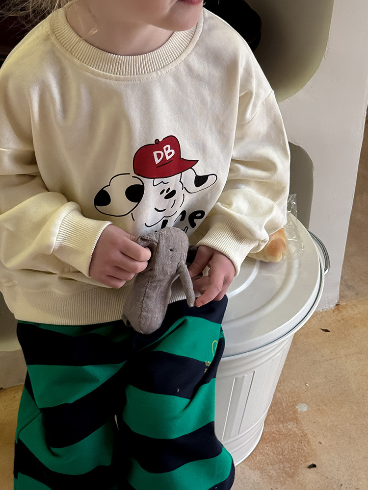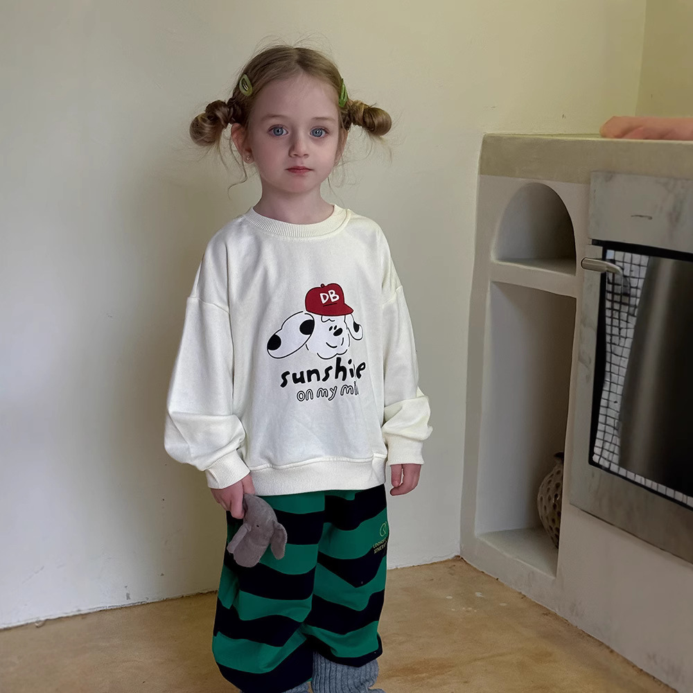 어린이 만화 개 운동복 2025 봄과 가을 스타일 소년과 소녀 만화 패턴 귀여운 긴 소매 운동복 라운드 넥스토어 가기