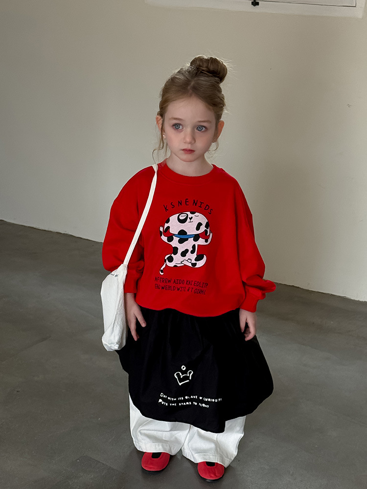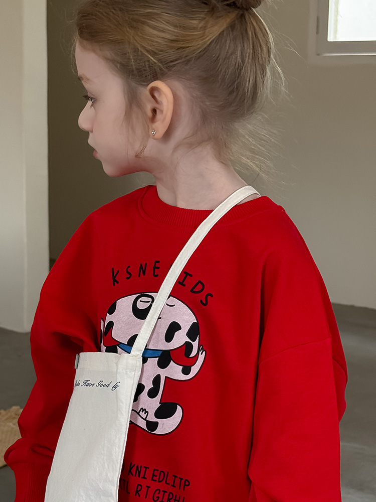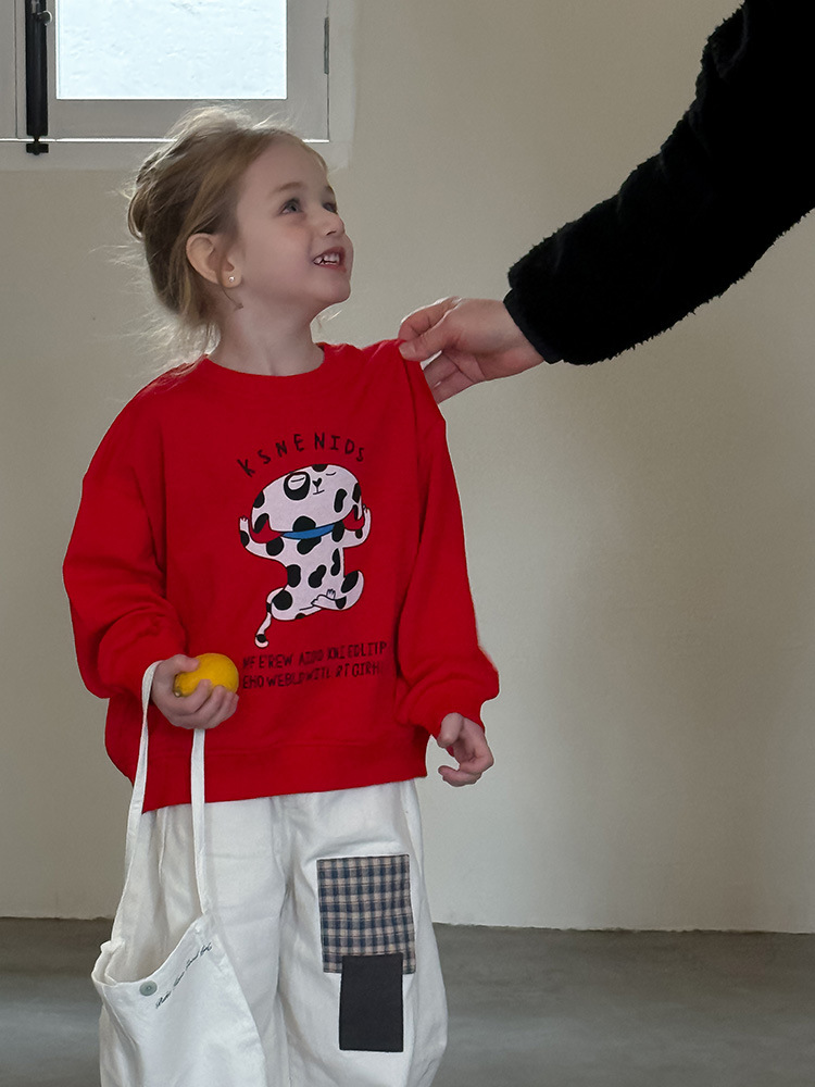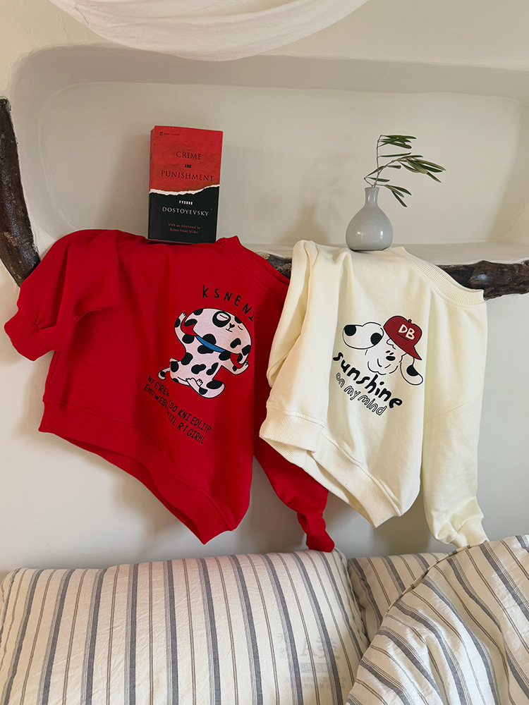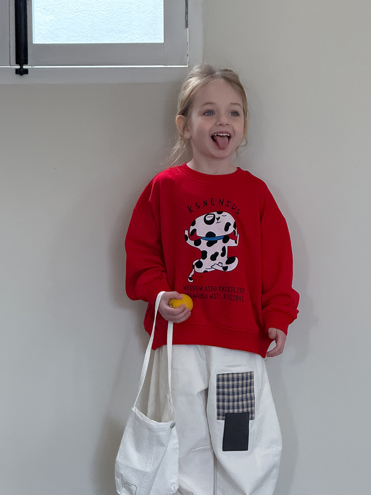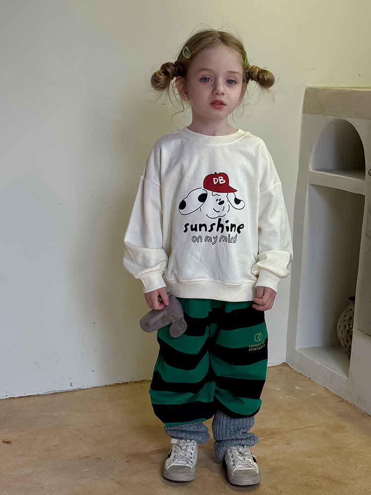 어린이 만화 개 운동복 2025 봄과 가을 스타일 소년과 소녀 만화 패턴 귀여운 긴 소매 운동복 라운드 넥스토어 가기