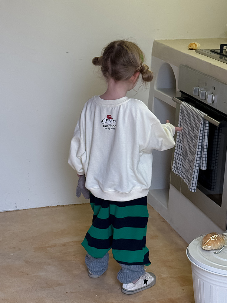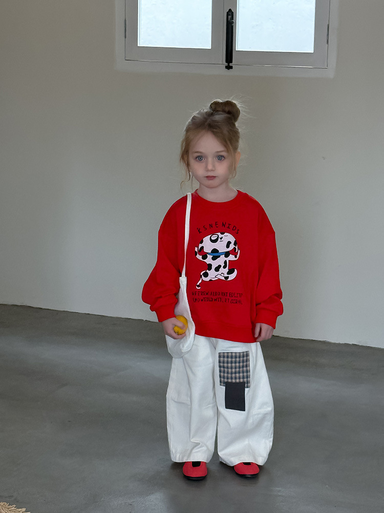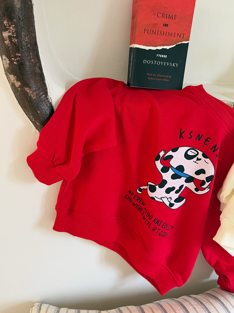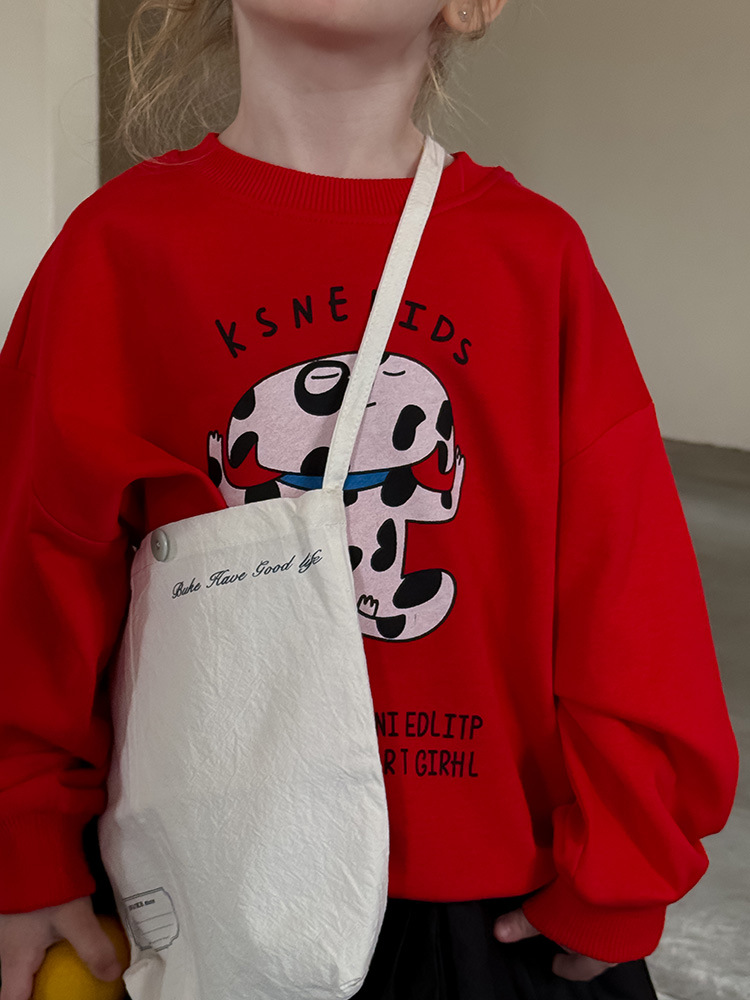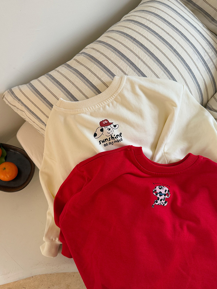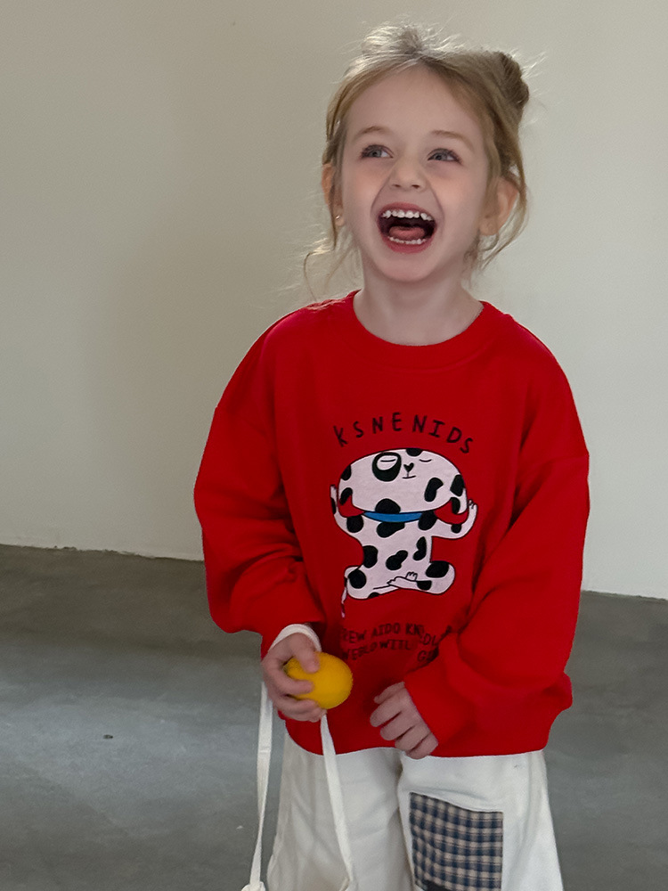 어린이 만화 개 운동복 2025 봄과 가을 스타일 소년과 소녀 만화 패턴 귀여운 긴 소매 운동복 라운드 넥스토어 가기