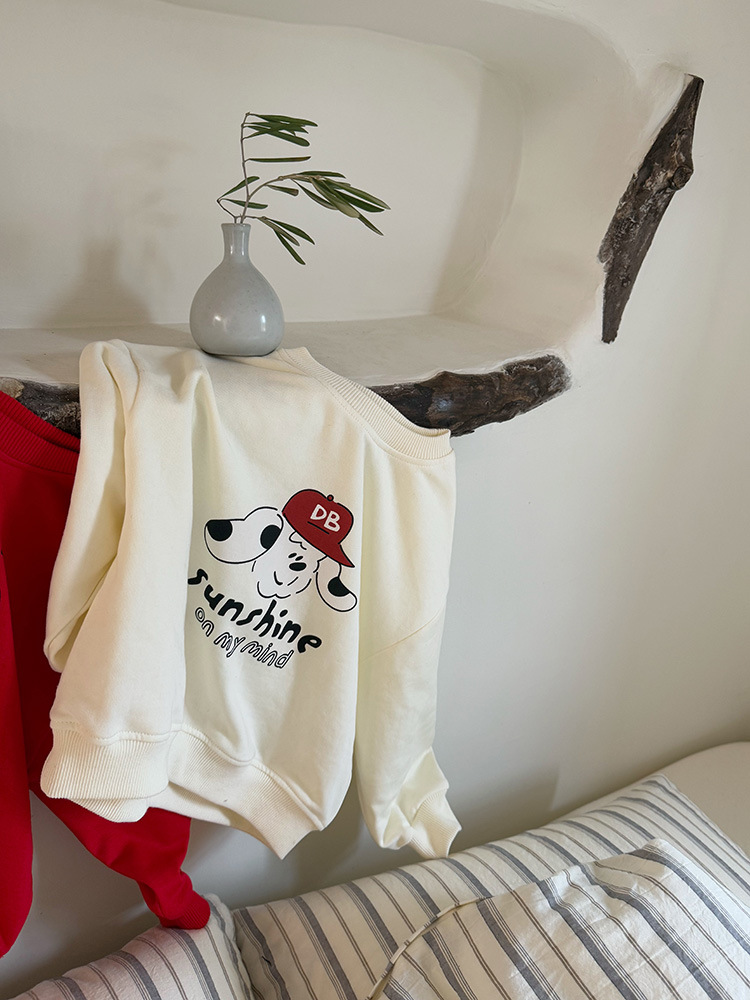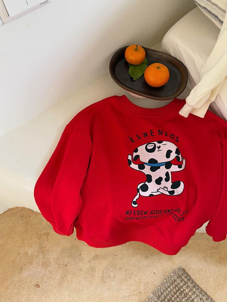 어린이 만화 개 운동복 2025 봄과 가을 스타일 소년과 소녀 만화 패턴 귀여운 긴 소매 운동복 라운드 넥