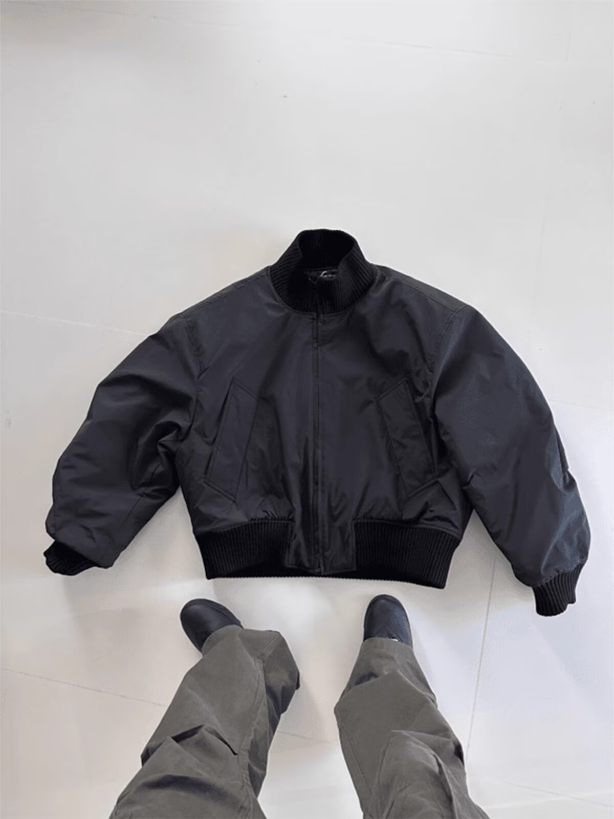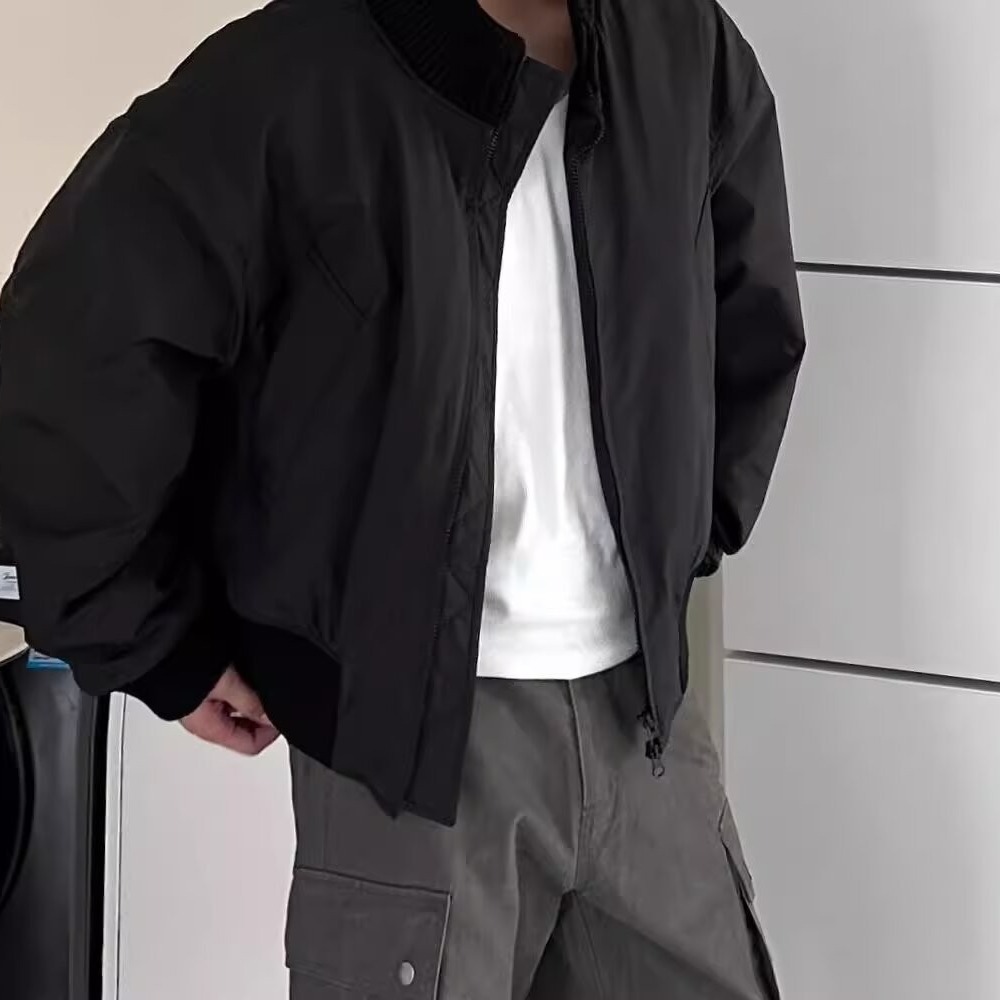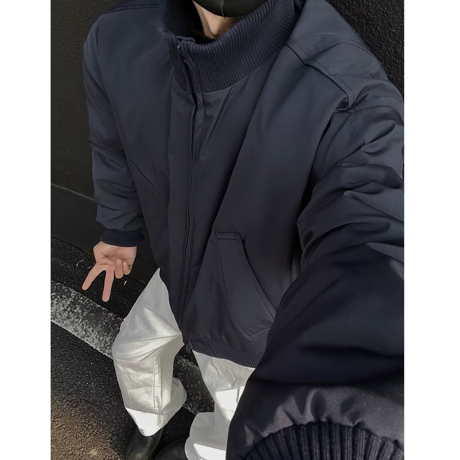 다크 브라운 미국식 프로필 Bomber Jacket 코튼 패딩 재킷 남자 겨울 클렌핏 퀼트 재킷 빈티지 짧은 빵 세트