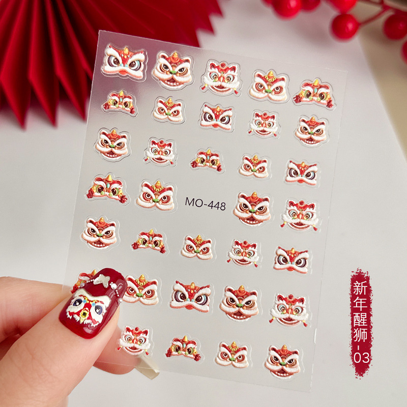 사자 댄스 네일 아트 릴리프 스티커 국가 조수 새해 구호 스테레오 사자 댄스 귀여운 봄 축제 착용 갑옷 장식 스티커스토어 가기