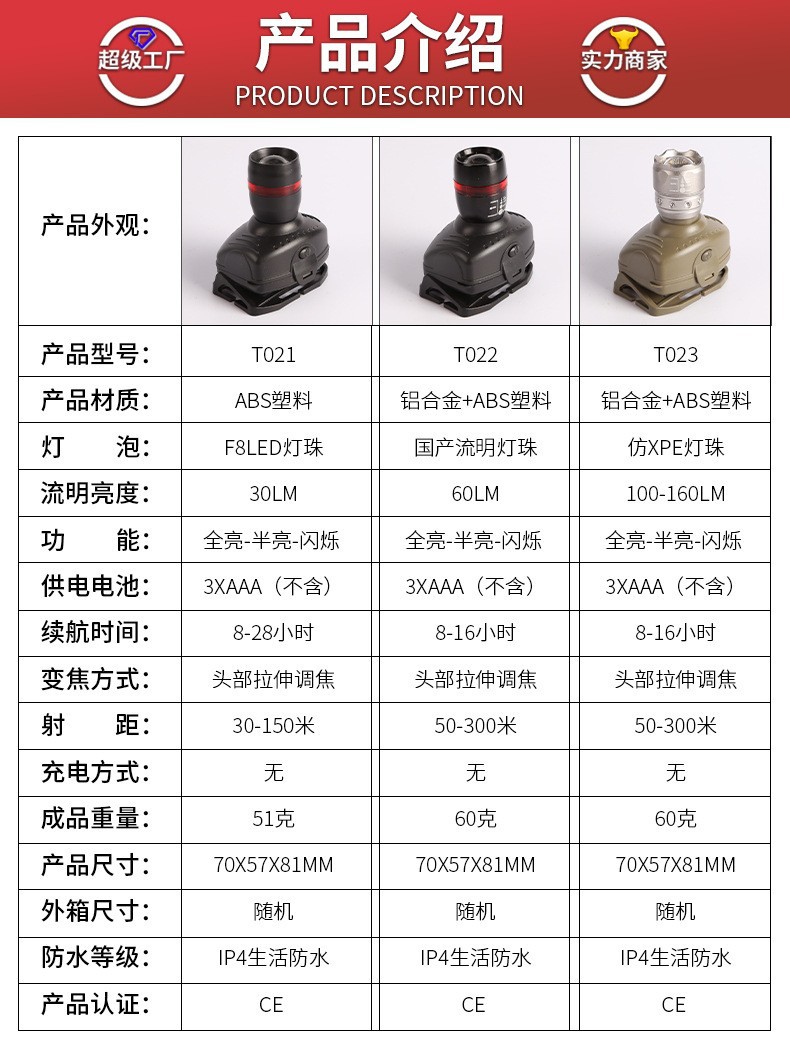 • T023 접이식 포커싱(베어 램프 + 헤드라이트 스트랩 + 배터리 미포함)