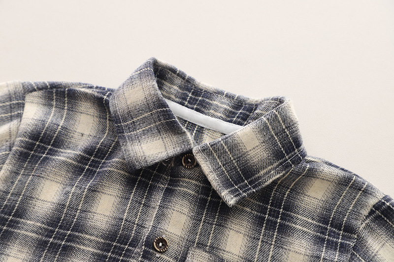 • 240945브라운 체크무늬 긴팔 셔츠 쓰리피스 세트