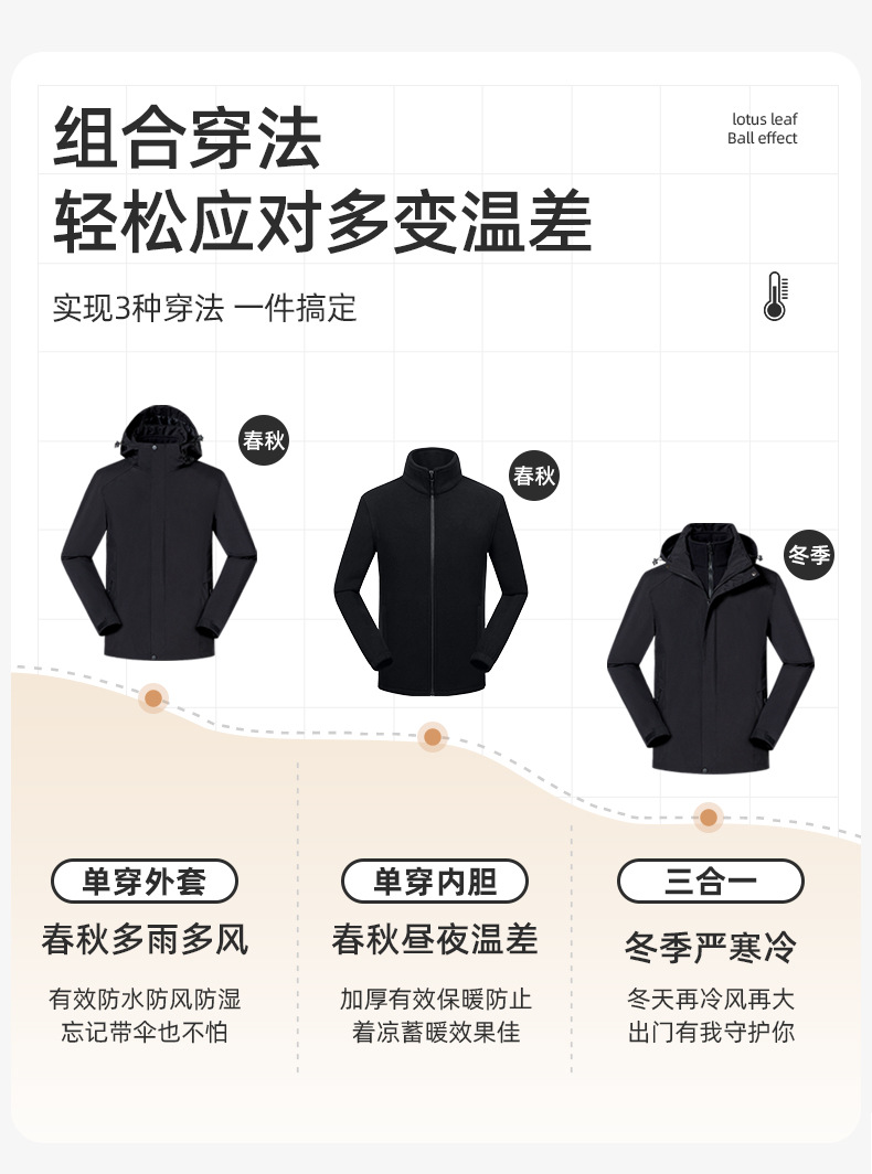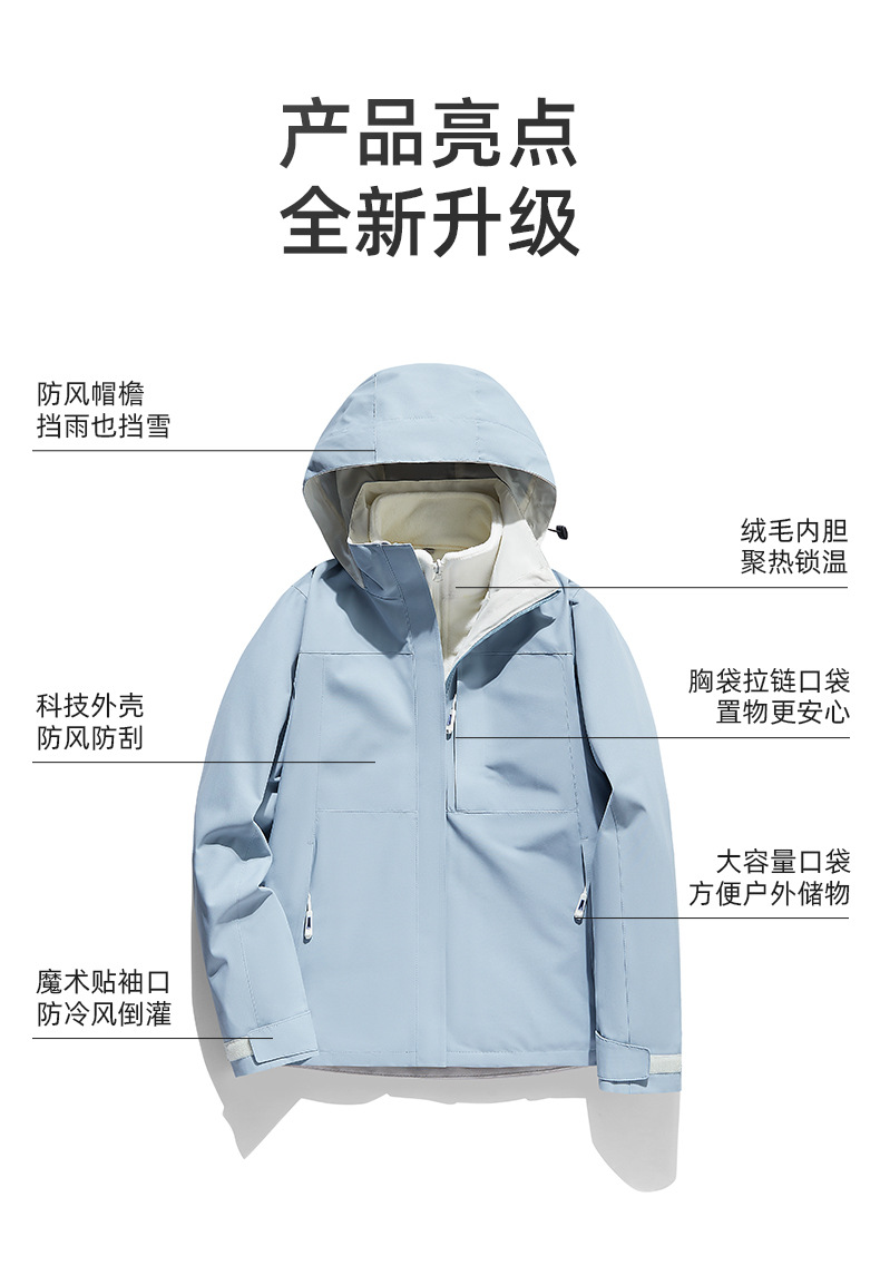남성과 여성을위한 카멜 HJCAMEL 재킷 가을과 겨울 3 인원 분리 가능한 2 피스 양털 재킷스토어 가기
