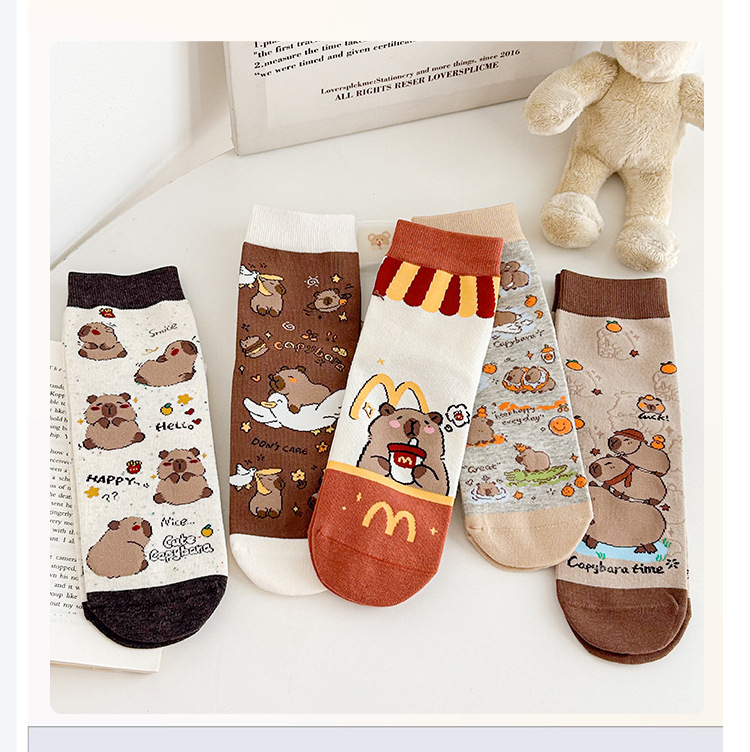 양말 여성용 종아리 중간 양말 귀여운 일본 만화 곰 카피바라 학생 양말 봄과 가을면 양말 겨울 뼈없는 양말스토어 가기