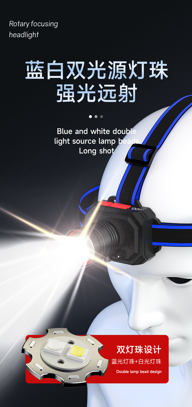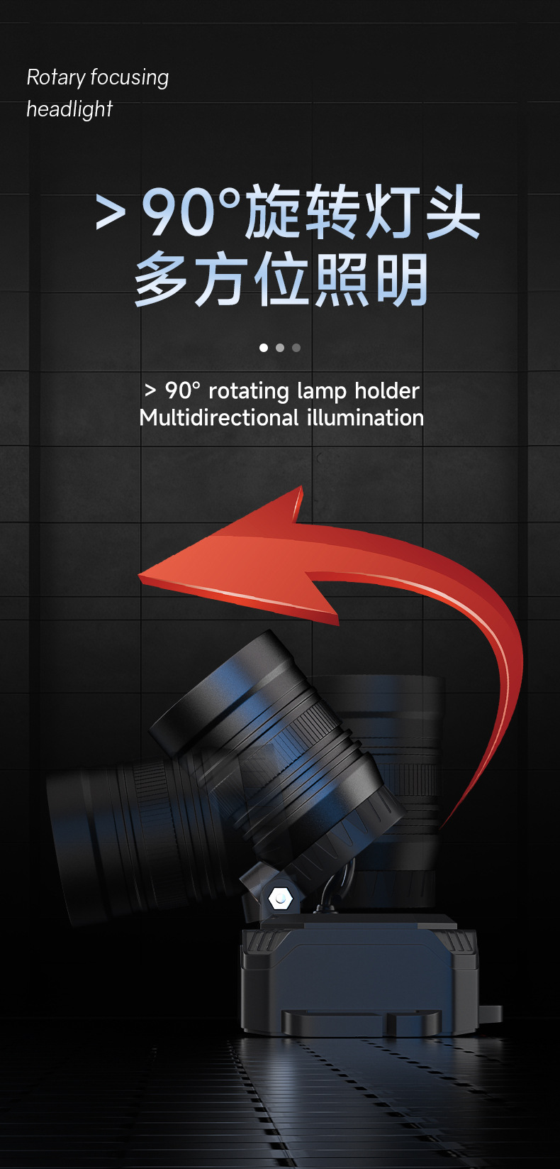 야외용 헤드램프, 충전식 헤드램프, 광부용 램프, 가정용, 매우 긴 배터리 수명, 야간 낚시 전용, 360도 회전