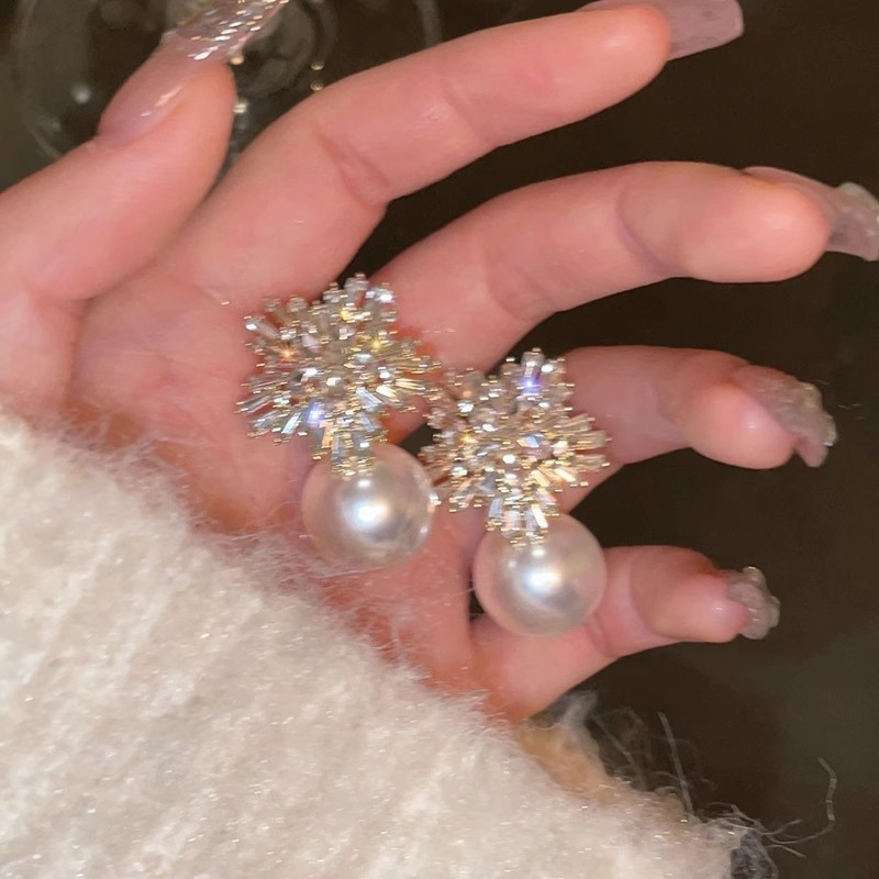 절묘한 풀 다이아몬드 눈송이 진주 귀걸이 틈새 디자인 고급 귀 스터드 여성 가벼운 럭셔리 복고풍 인터넷 연예인 우아한 귀걸이스토어 가기