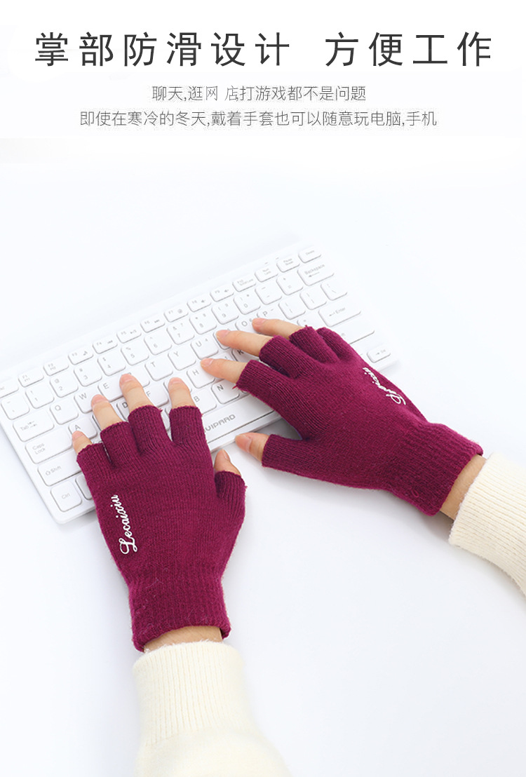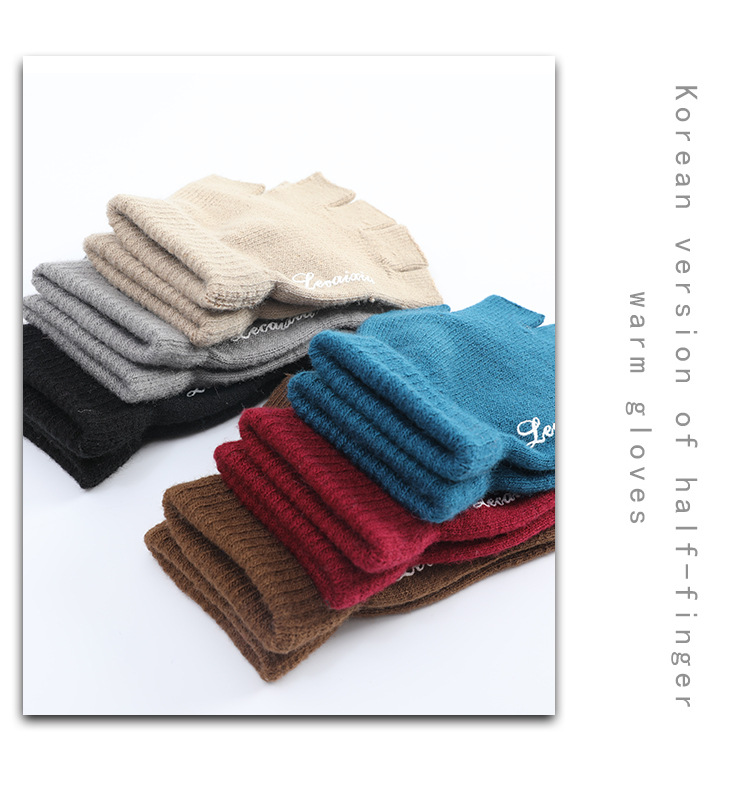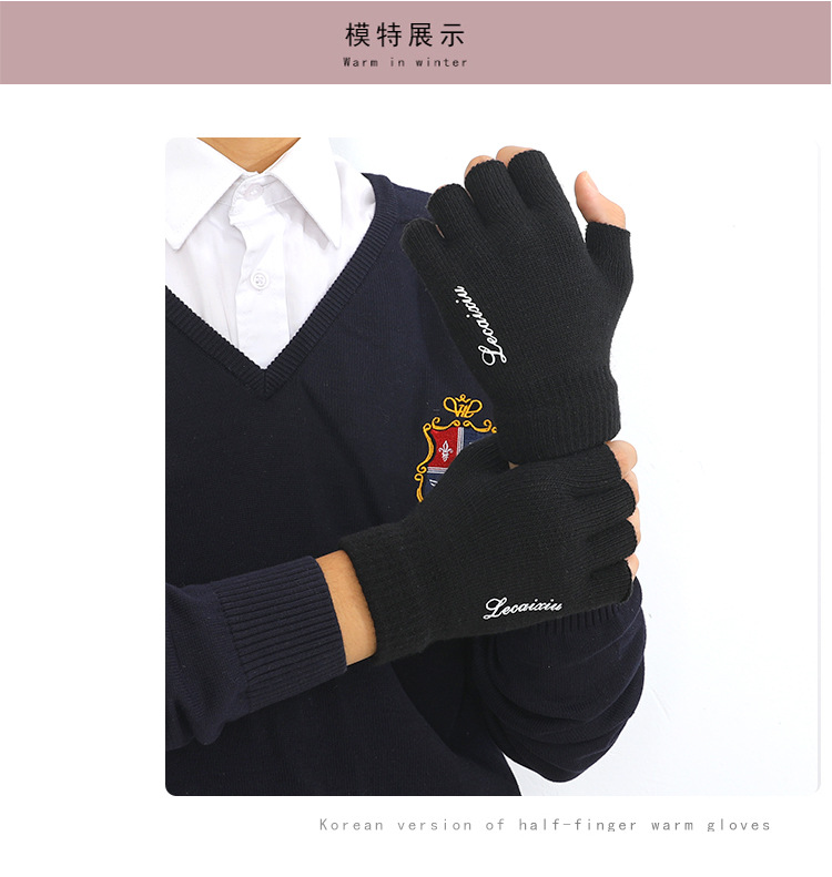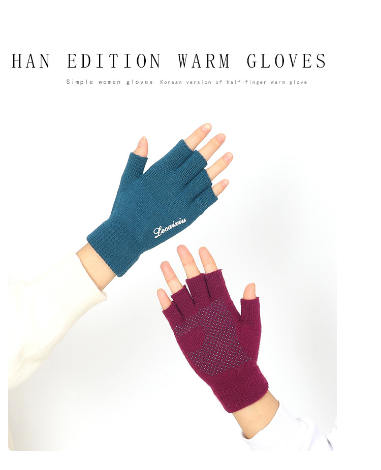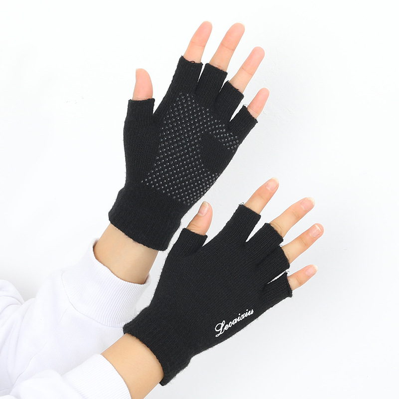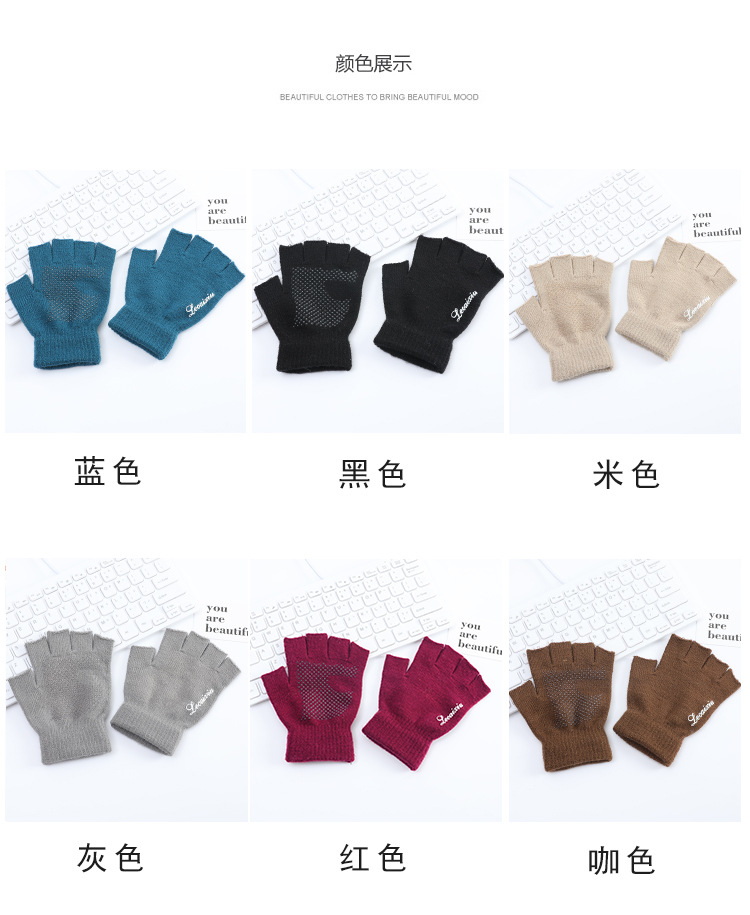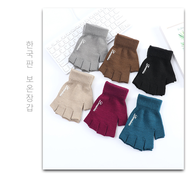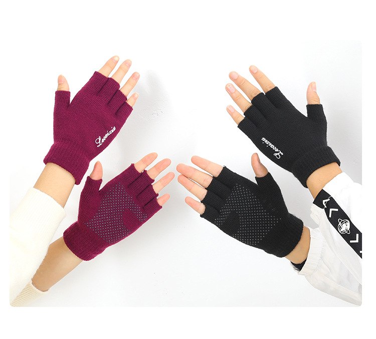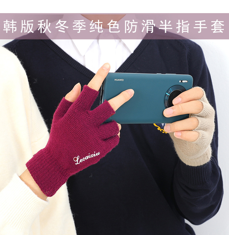 남성과 여성을위한 단색 반 손가락 장갑 가을 및 겨울 양모 니트 전시 장갑 비 슬립 따뜻한 반 손가락 장갑