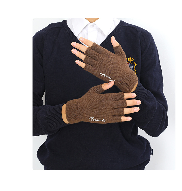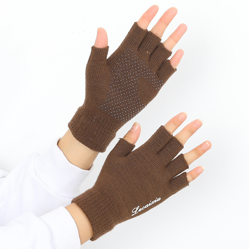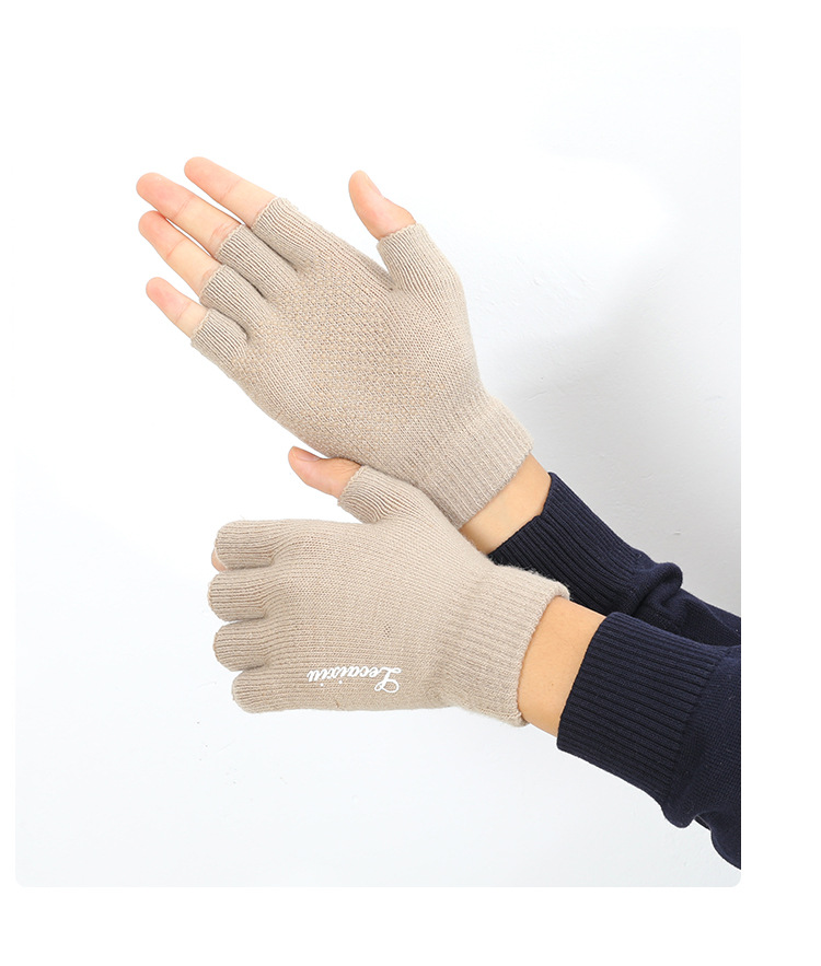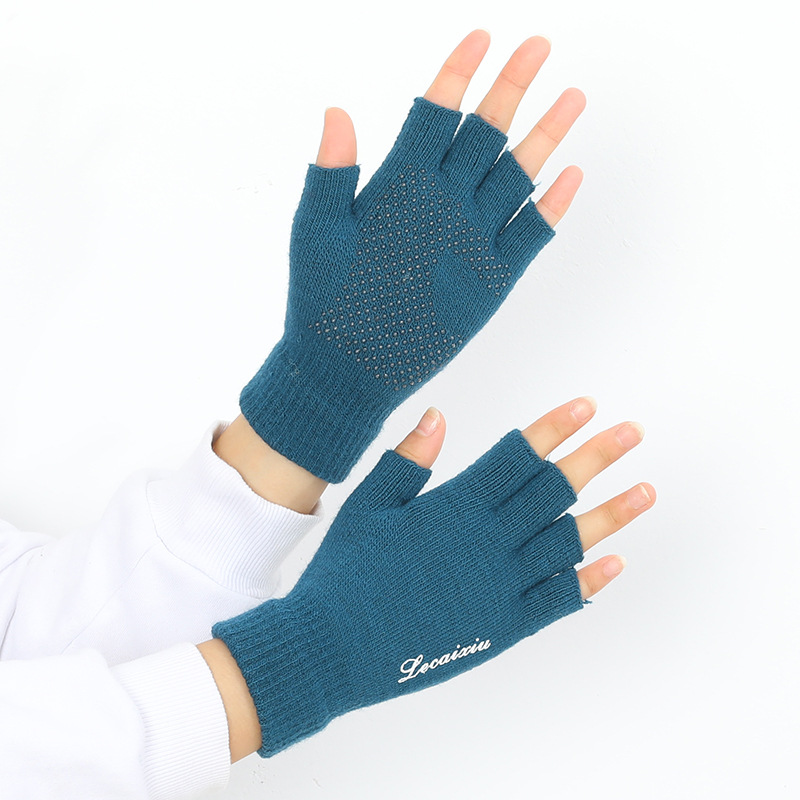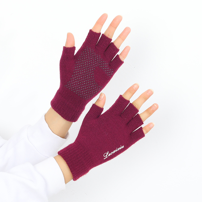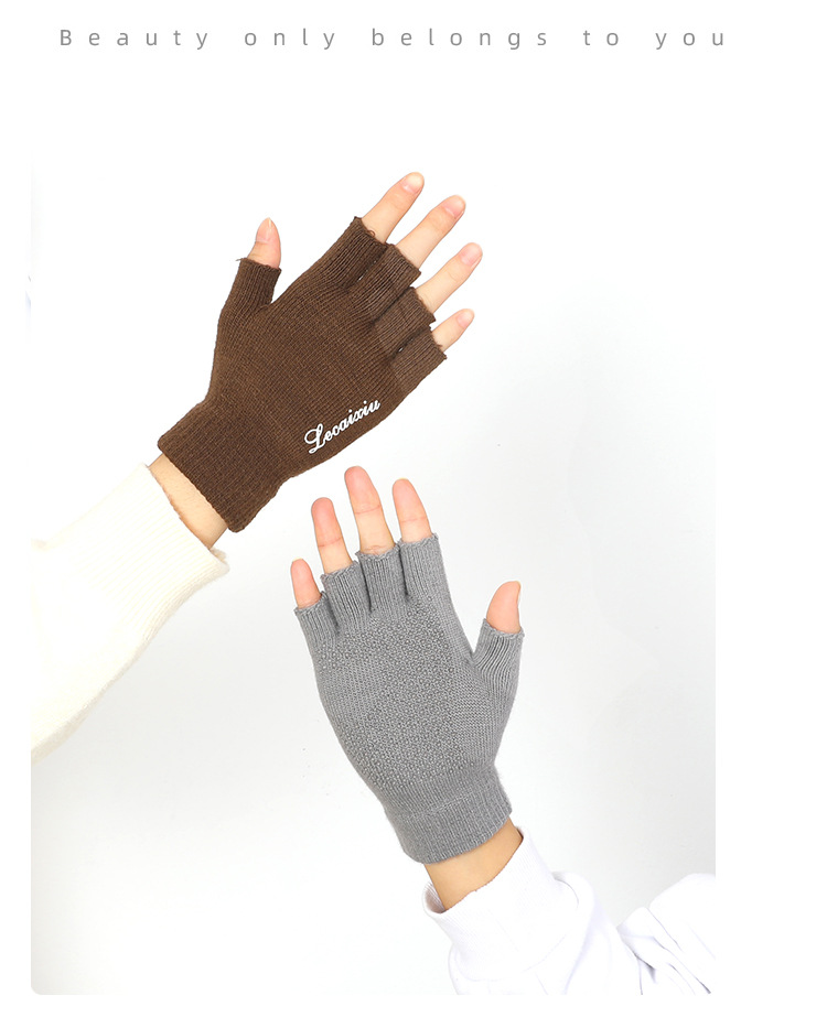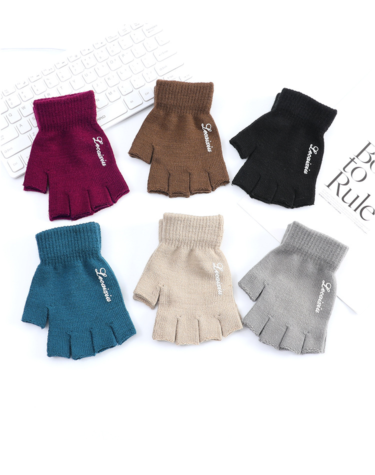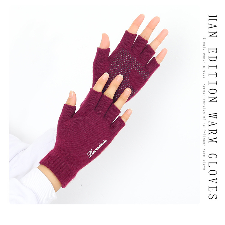 남성과 여성을위한 단색 반 손가락 장갑 가을 및 겨울 양모 니트 전시 장갑 비 슬립 따뜻한 반 손가락 장갑