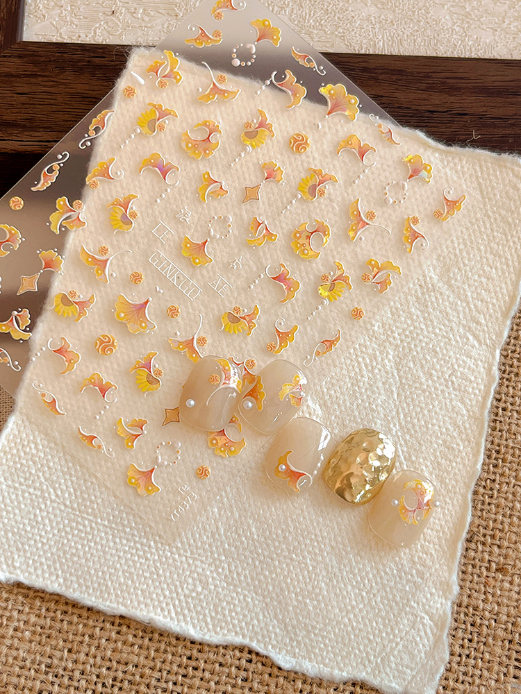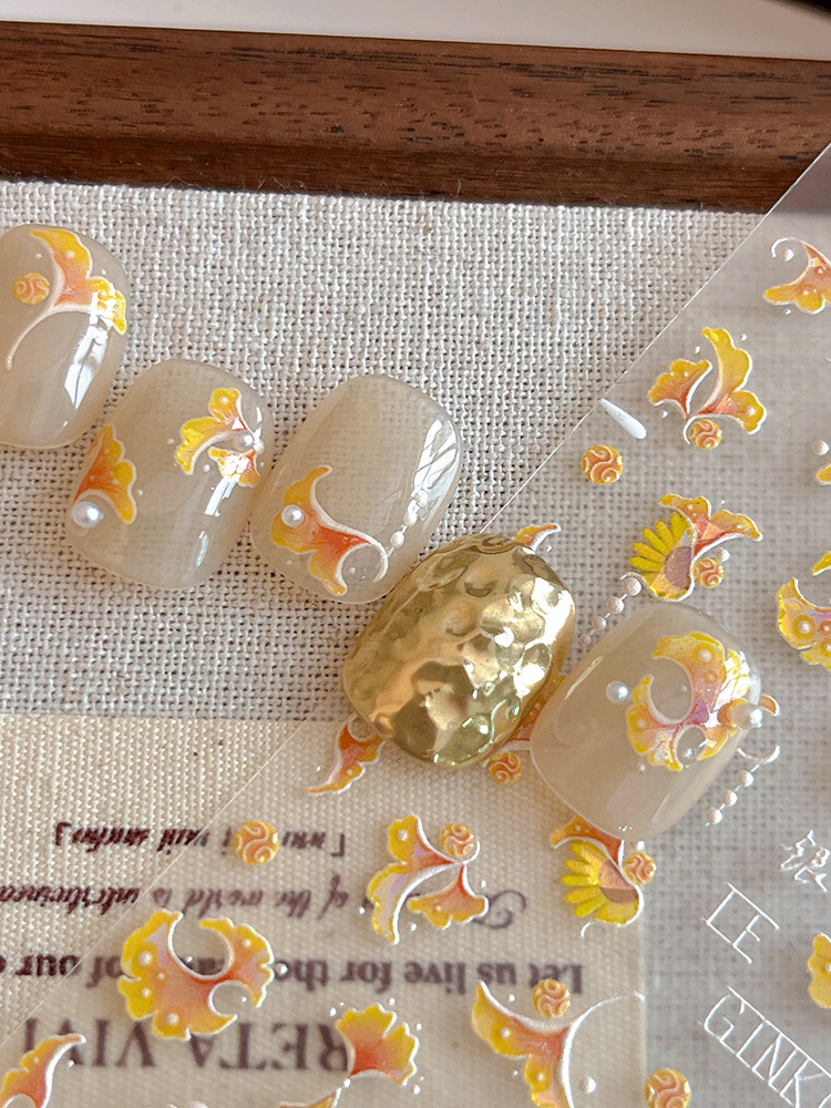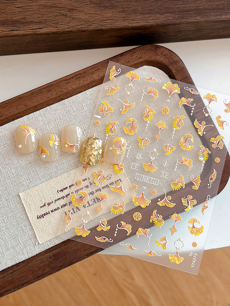 YITU 개미 그림 엠보싱 쉘 라이트 은행나무 네일 아트 스티커 접착제 네일 장식 스티커 YT4373