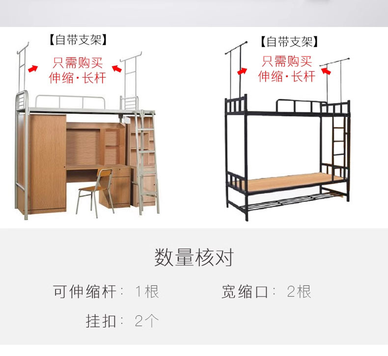 개폐식 싱글 및 더블 레이어 침대 커튼 음영 모기장 학생 기숙사 지원 막대 상단 및 하단 벙크 크로스바 푸터 침대 프레임스토어 가기