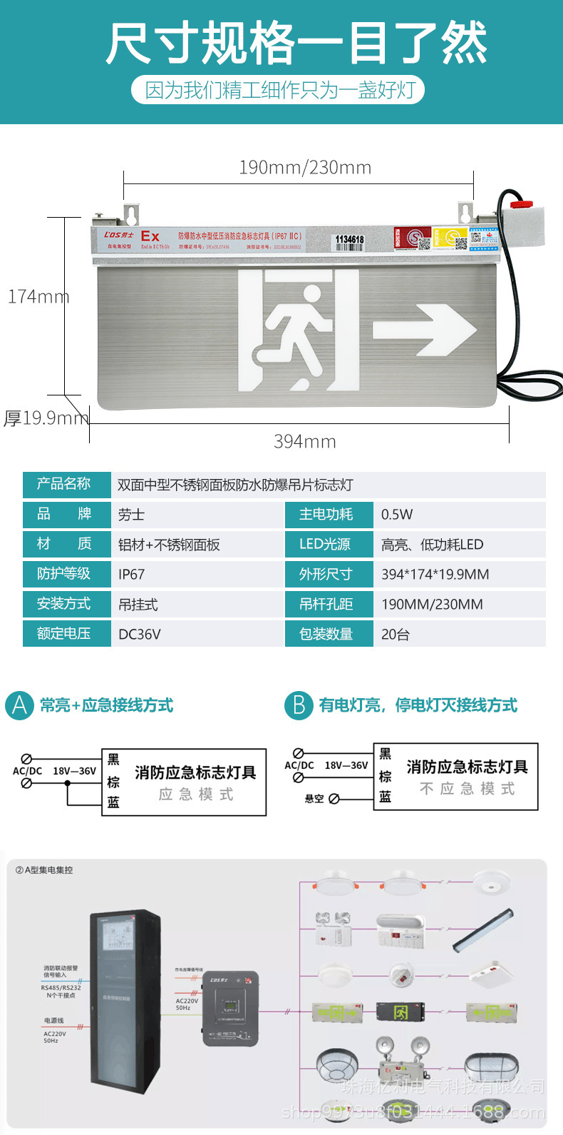 라우시 화재 통로 비상 표시등 양면 방폭 천장등 표지등 계단 통로 벽걸이 비상등