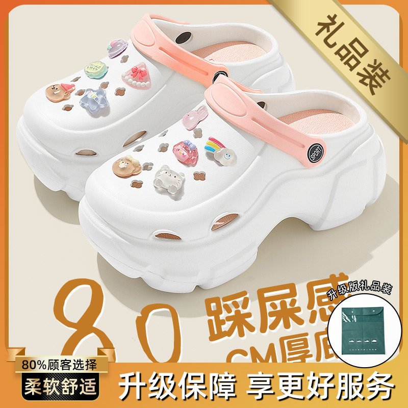 두꺼운 밑창의 여성용 통굽 샌들, 여름용 2025년 신상, 미끄럼 방지, 냄새 방지, 해변용, 키높이, 귀여운 EVA 샌들