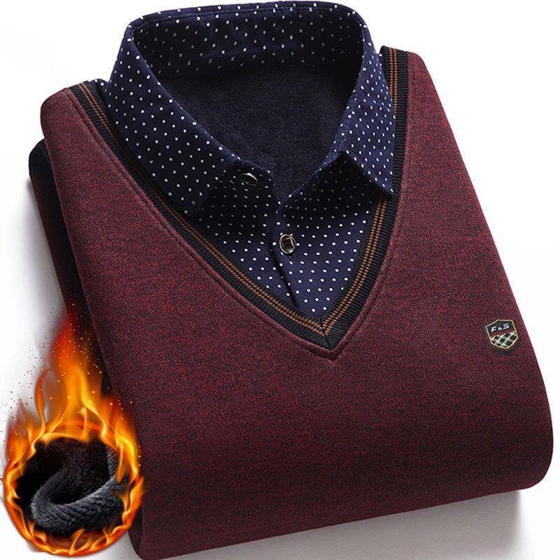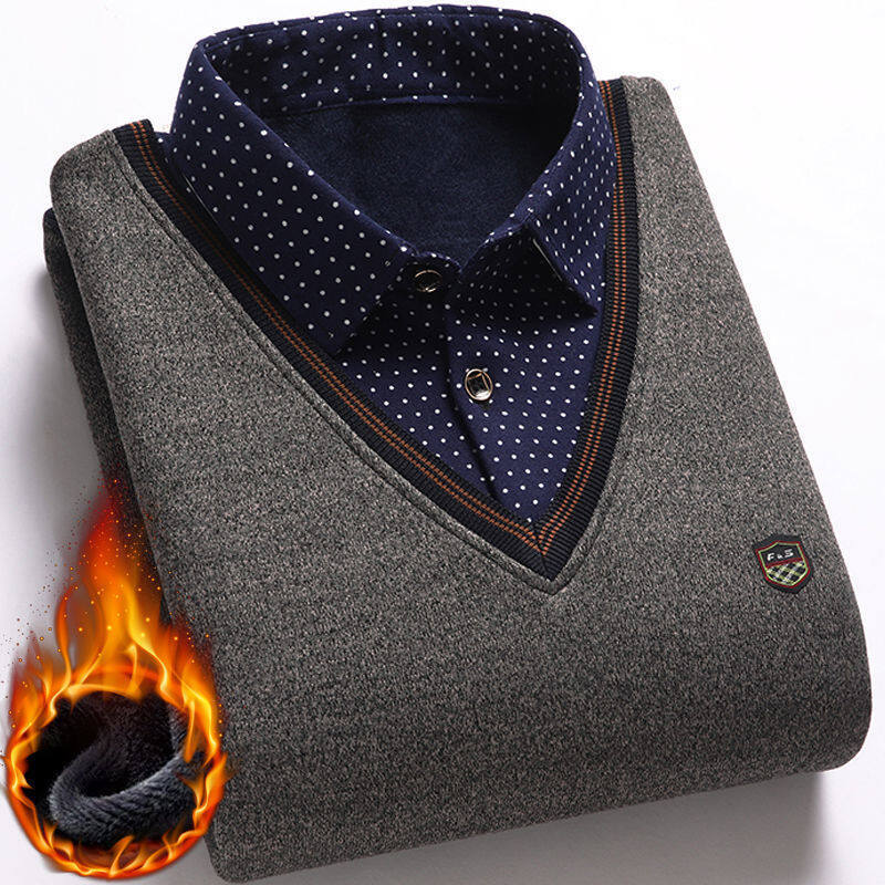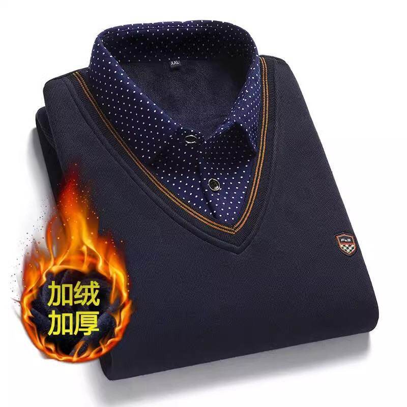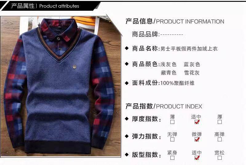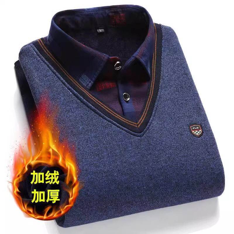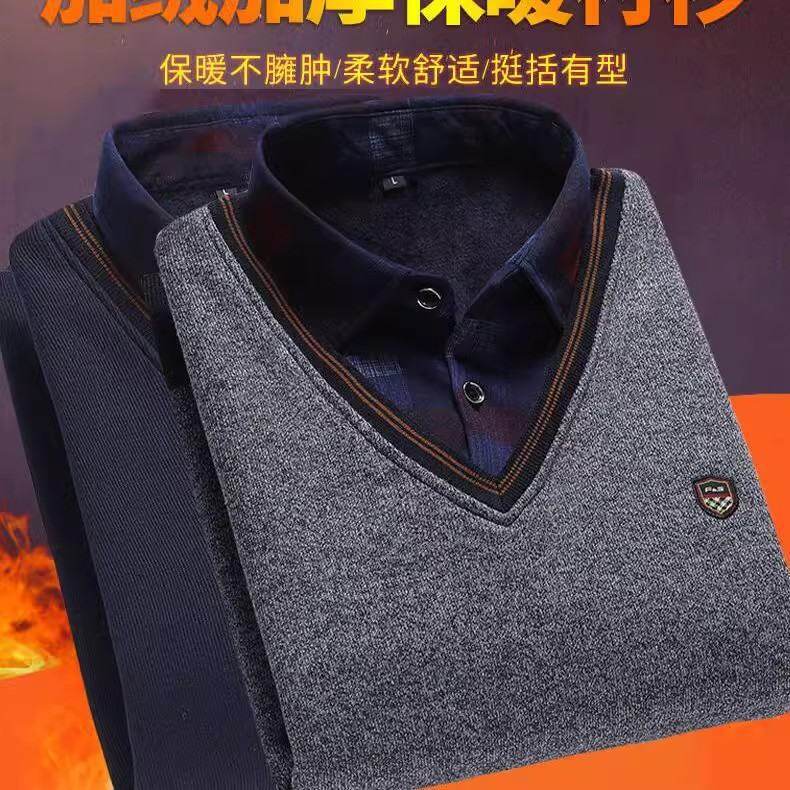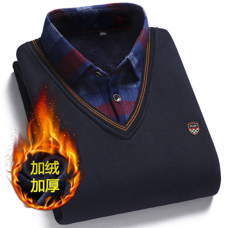 ZM 가을과 겨울 남자 기모 두꺼운 가짜 투피스 스웨터 라이트 그레이 격자 무늬 다크 그레이 라이트 그레이 점 다크 그레이 점
