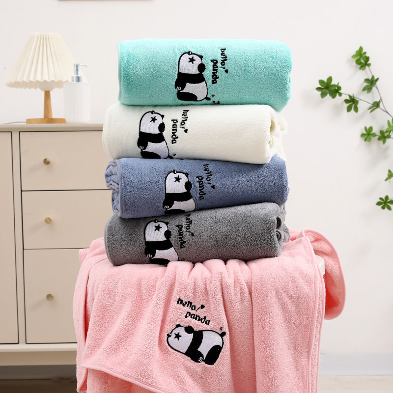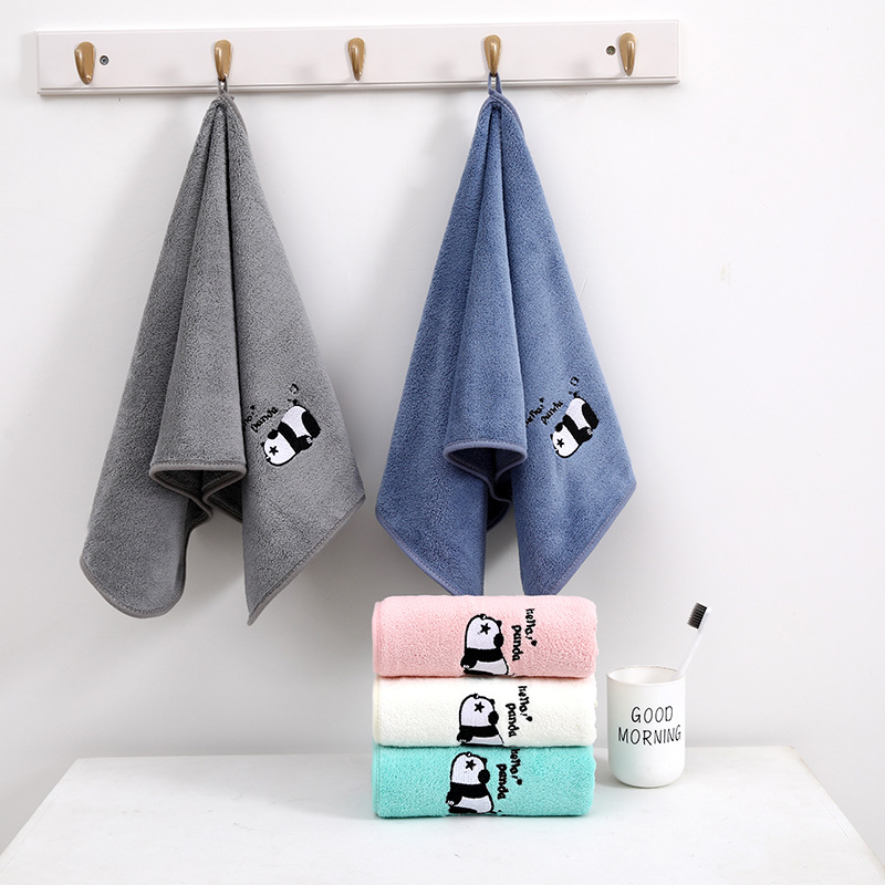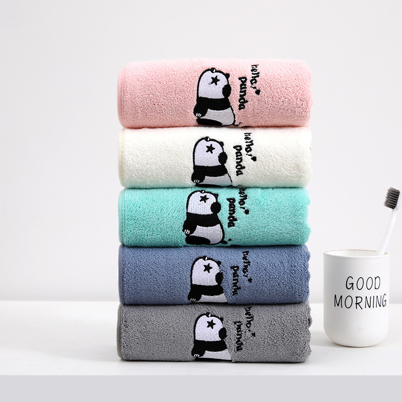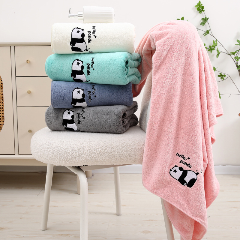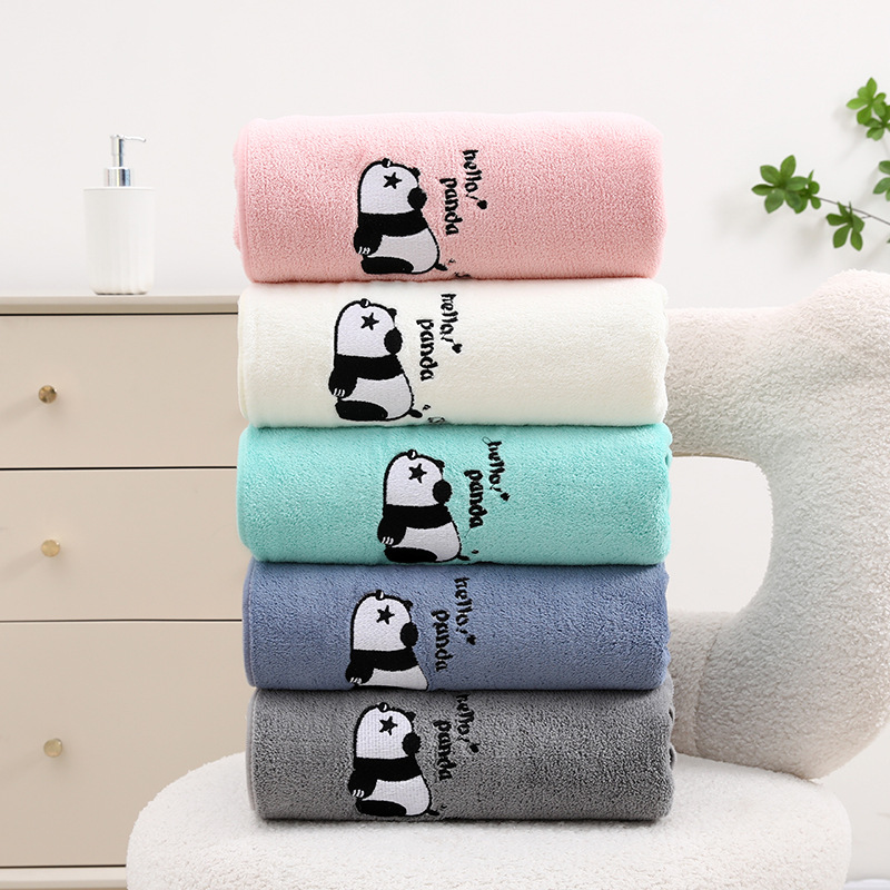 팬더 자수 수건 목욕 타월 추가 두꺼운 가정용 얼굴 세척 목욕 빠른 건조 흡수성 귀여운 부드러운 학생 커플