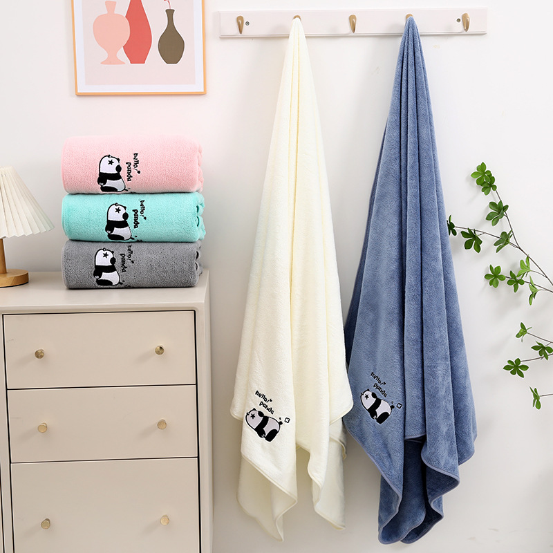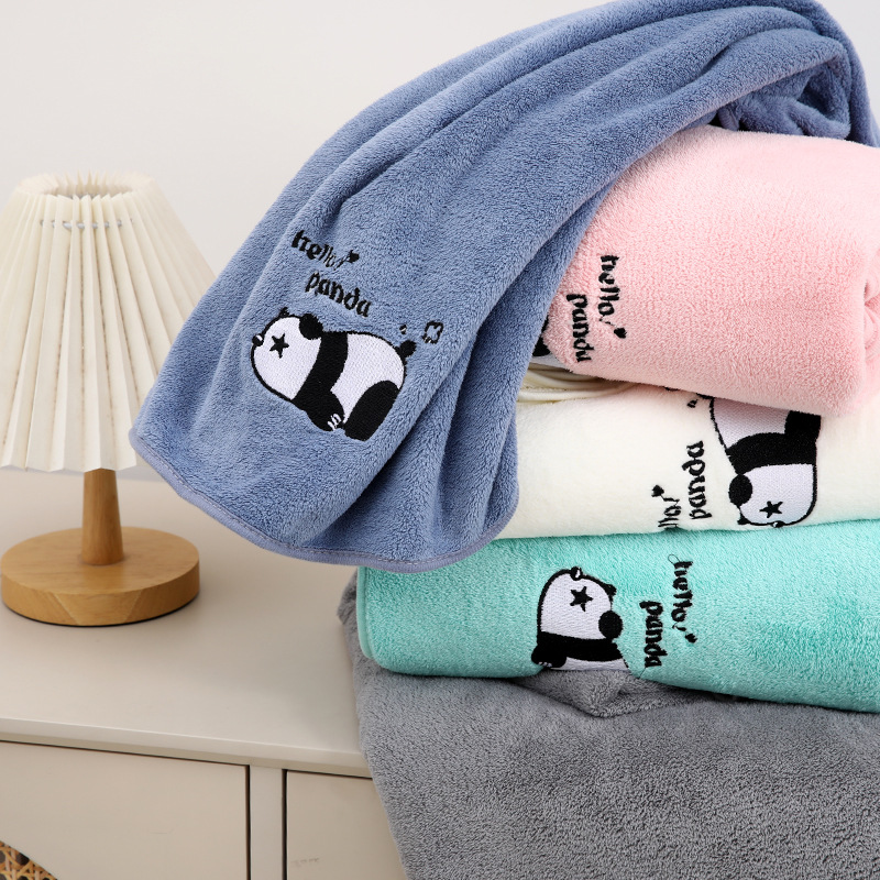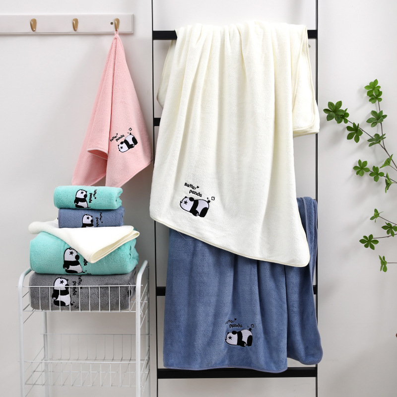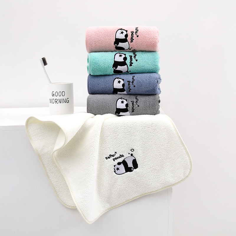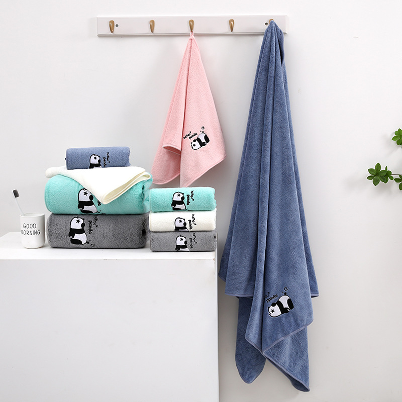 팬더 자수 수건 목욕 타월 추가 두꺼운 가정용 얼굴 세척 목욕 빠른 건조 흡수성 귀여운 부드러운 학생 커플