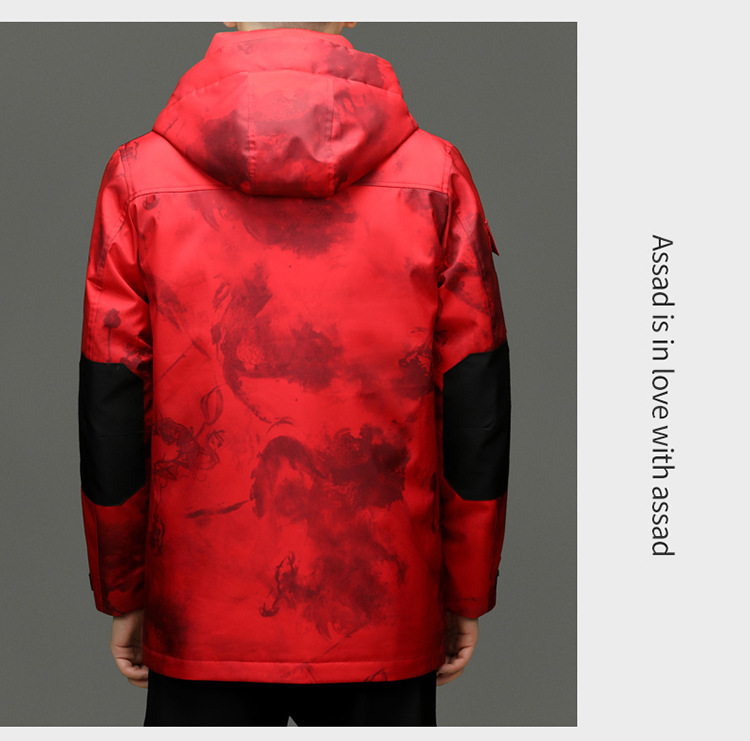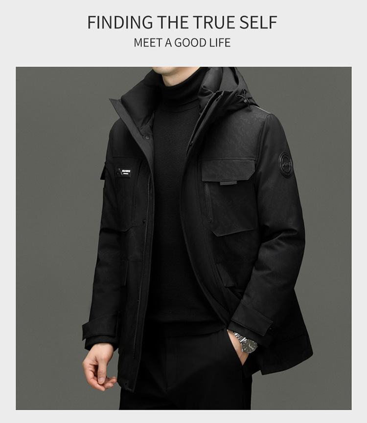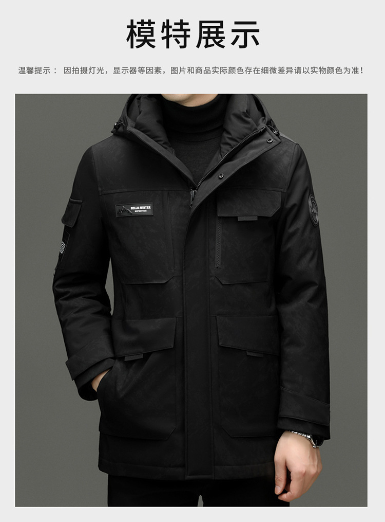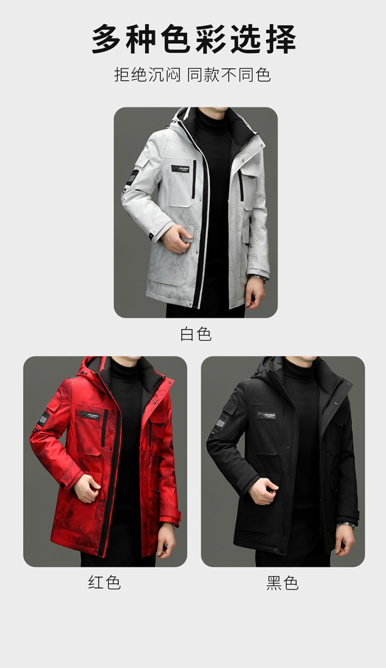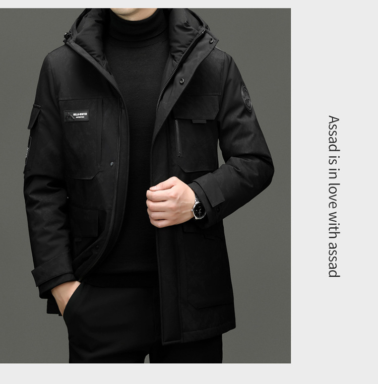 2024 년 가을과 겨울 새로운 남자 트렌디 한 중간 길이의 작업복 후드 다운 재킷 올 매치 캐주얼 야외 3 방직 소박한 자켓