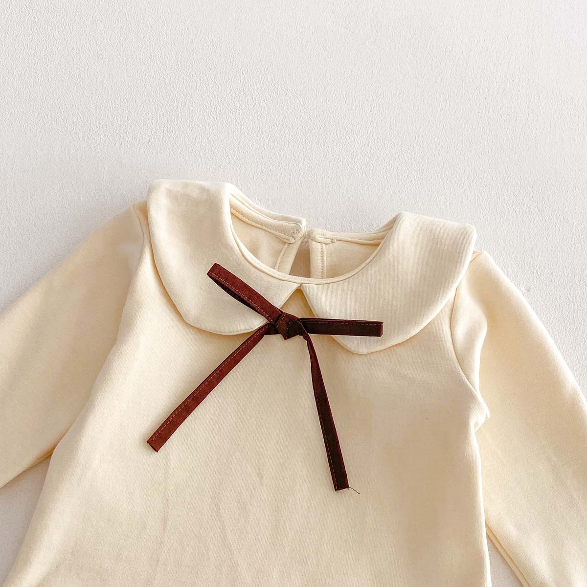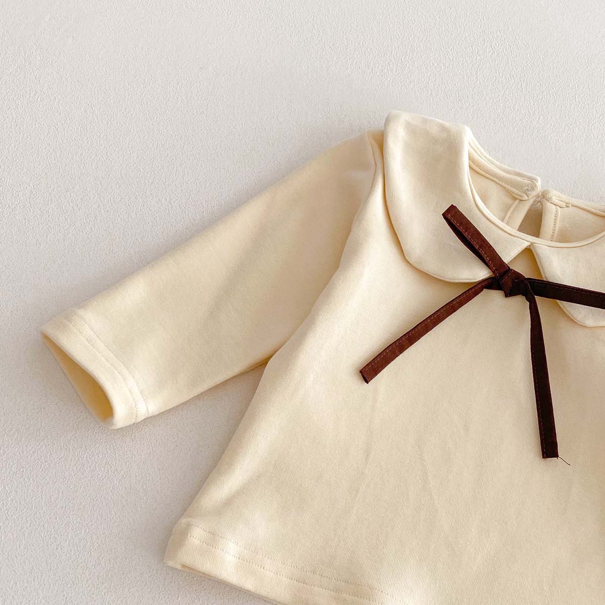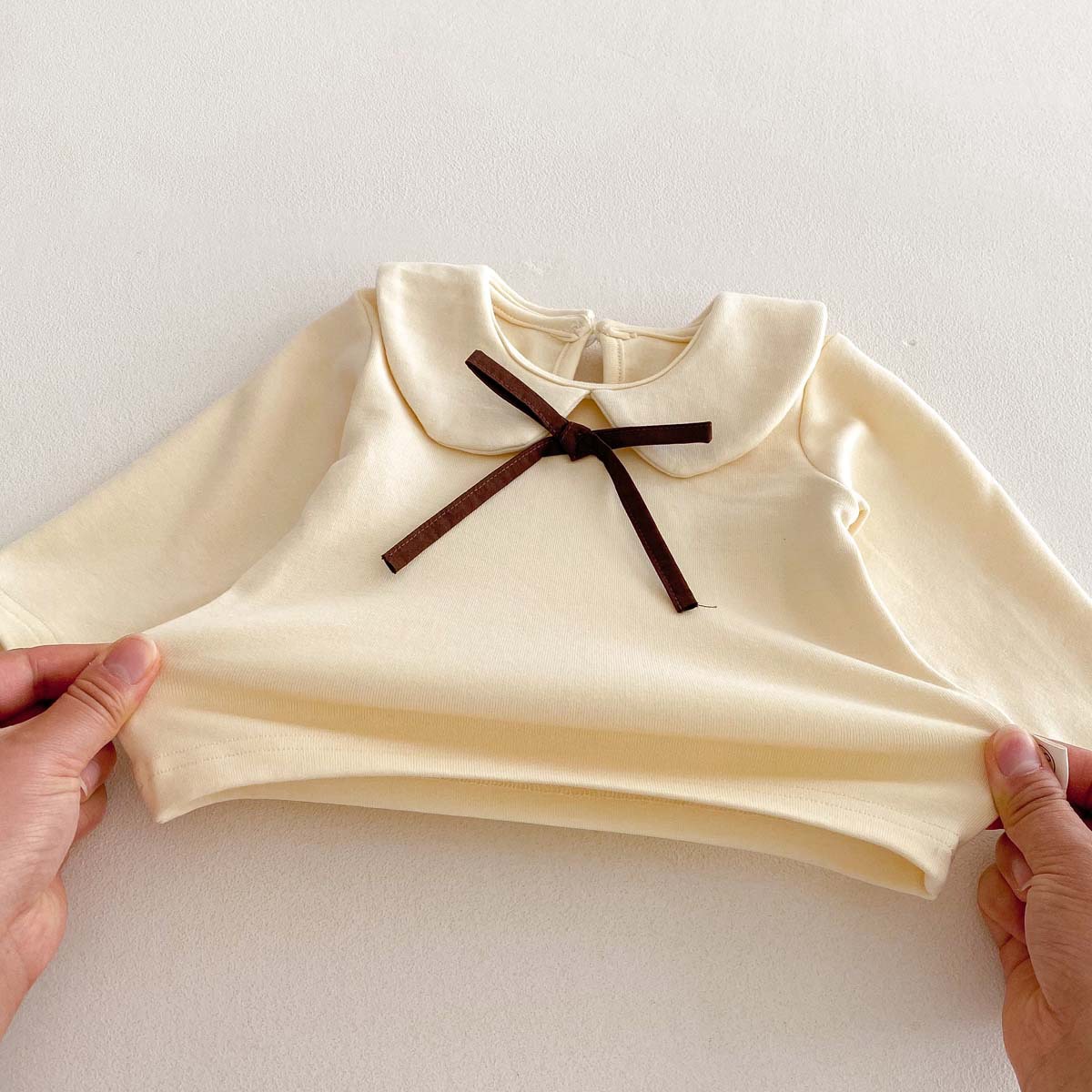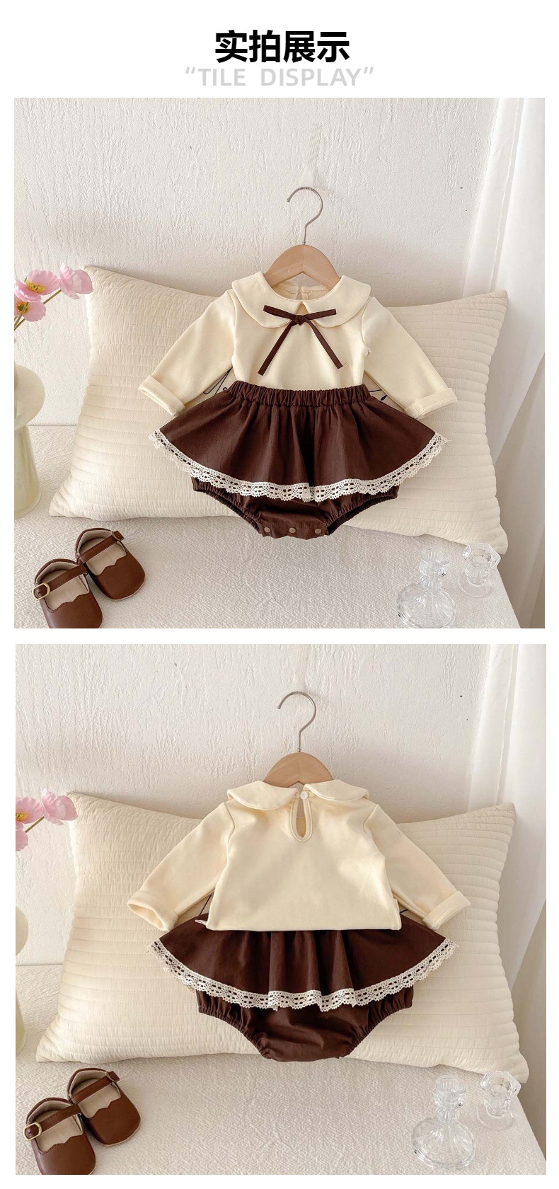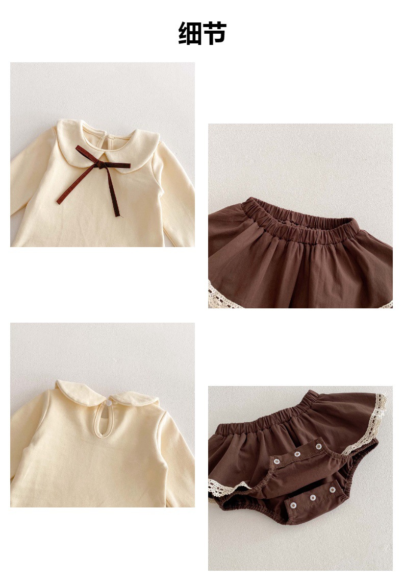 봄 새로운 아기 소녀 달콤한 세트 아기 활 옷깃 긴 소매 셔츠 레이스 랩 엉덩이 스커트 바지 투피스 세트스토어 가기
