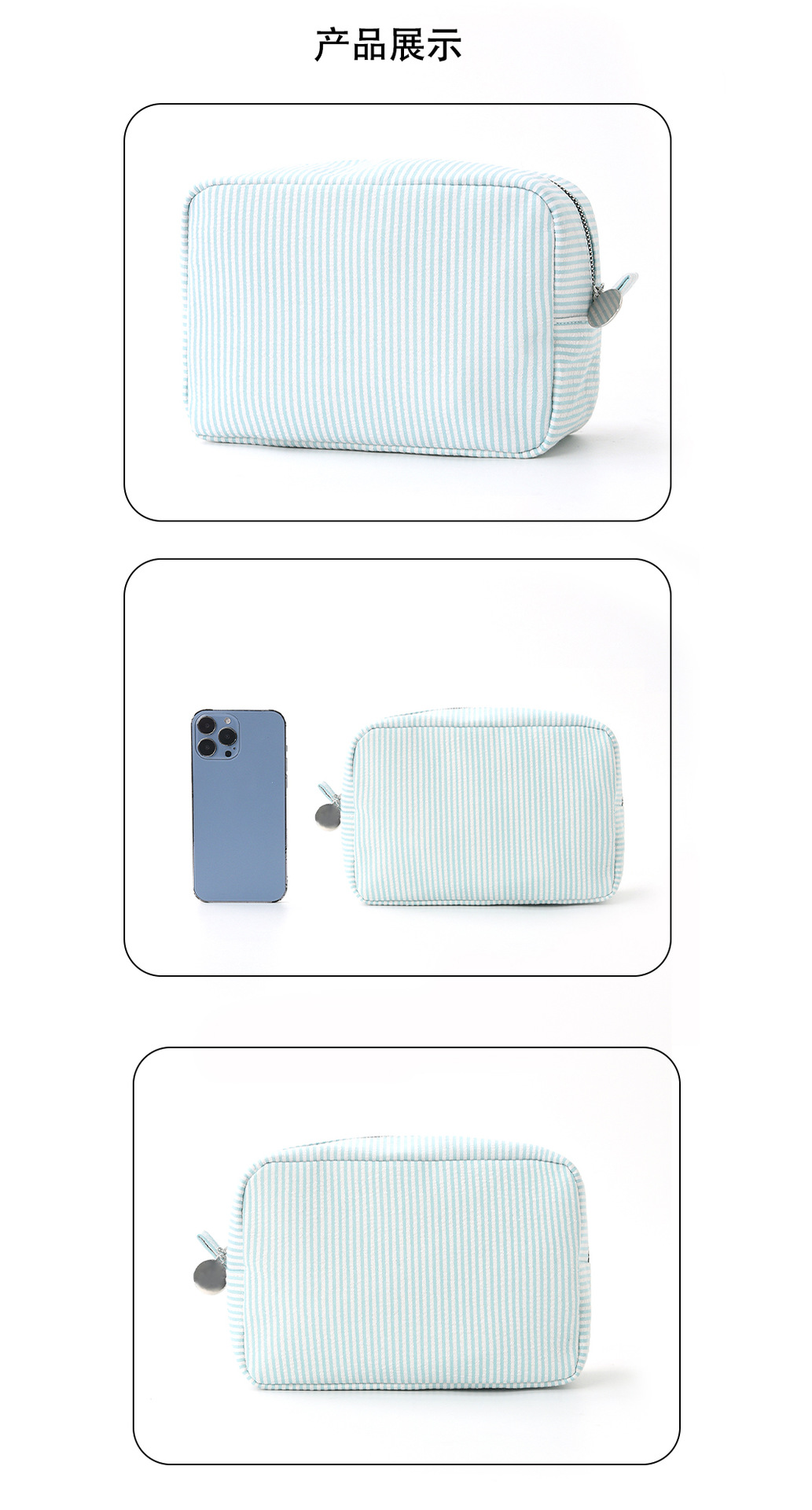 국경 간 Seersucker 화장품 가방 인도 스타일 줄무늬 휴대용 보관 가방 미시시피 인기 여행 보관 가방
