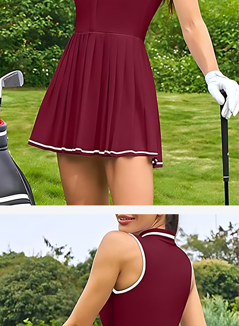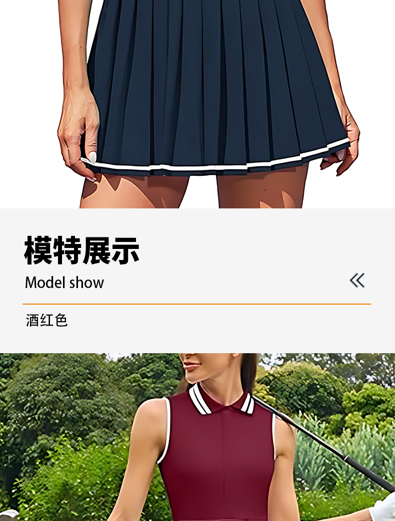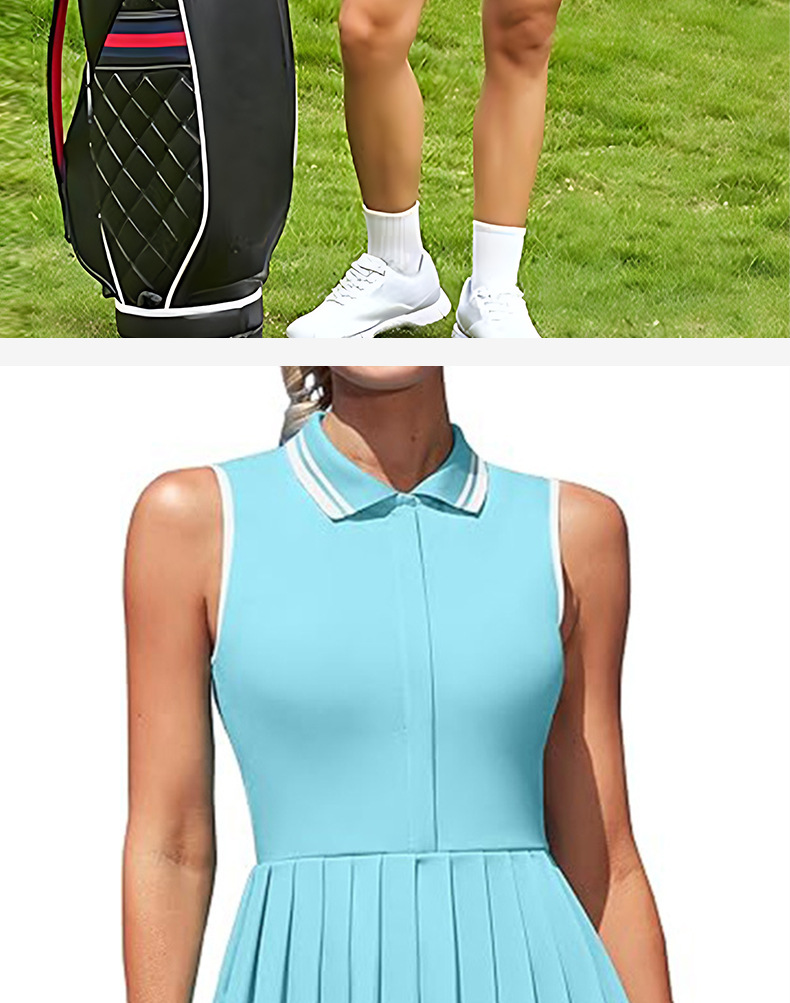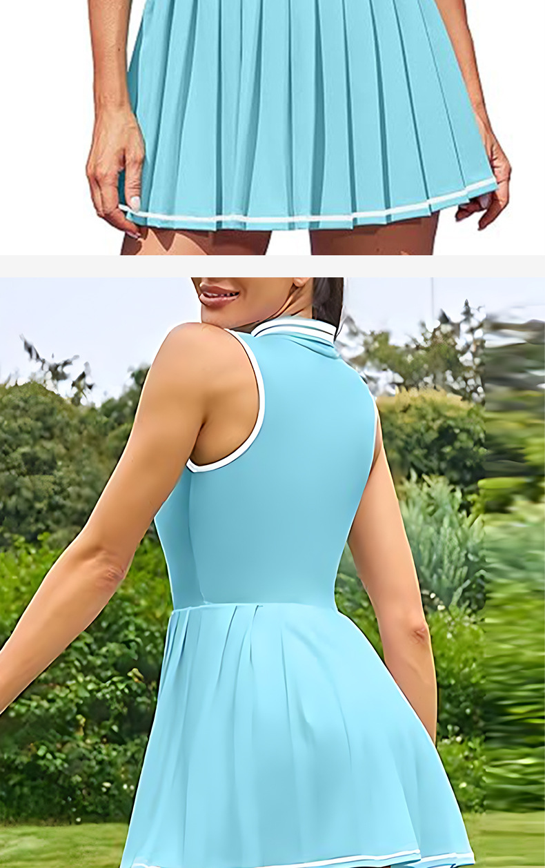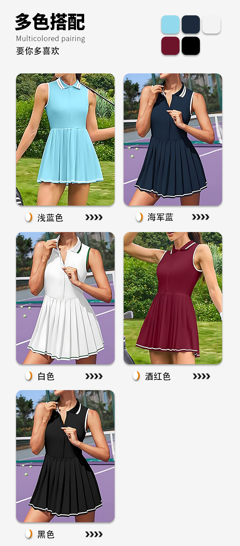 크로스 오버 컬러 폴로 넥 테니스 스커트 골프 원피스 수분 위킹 하프 Zip 주름 피트니스 스커트