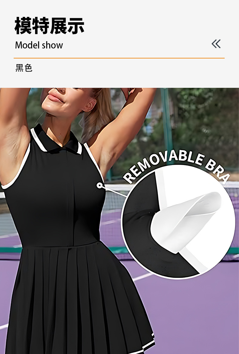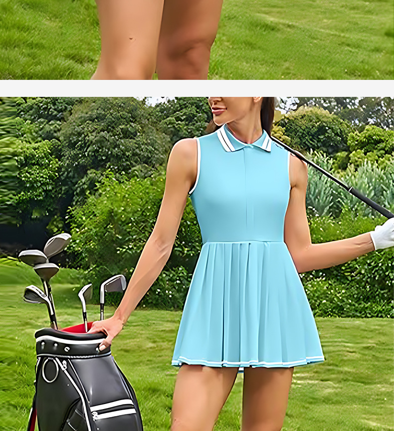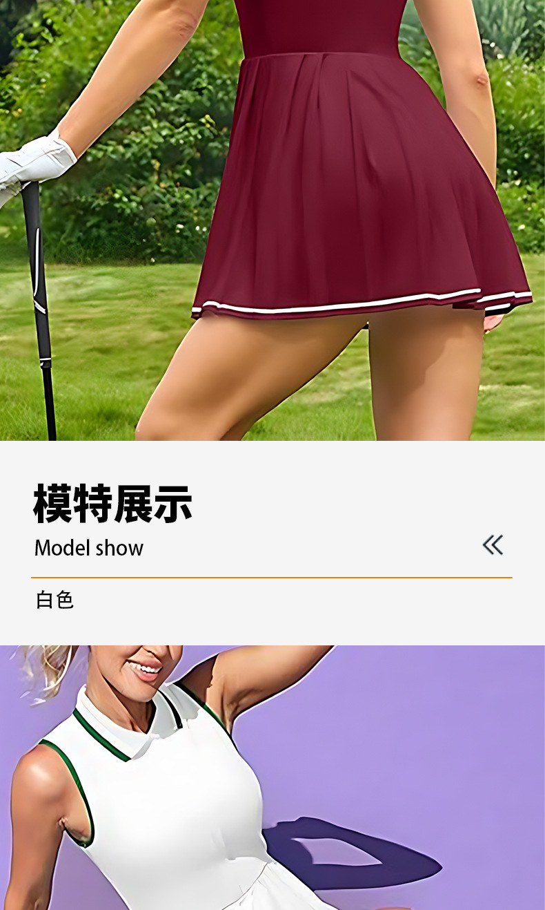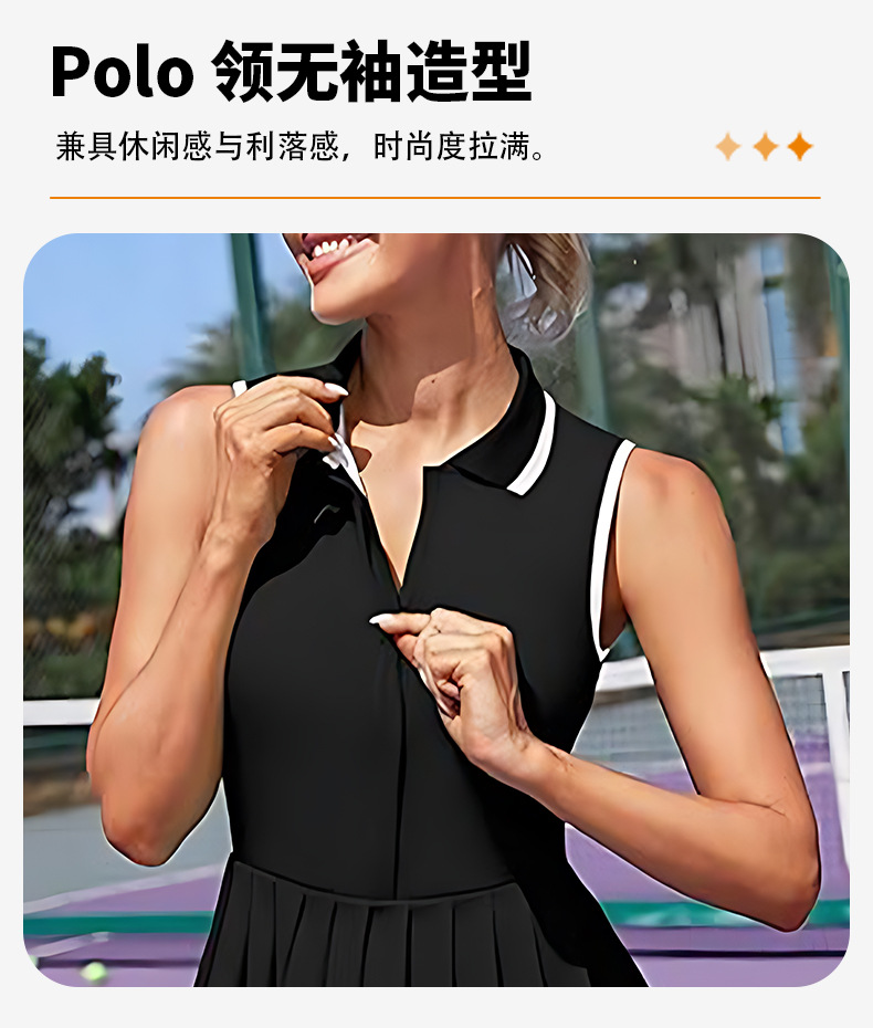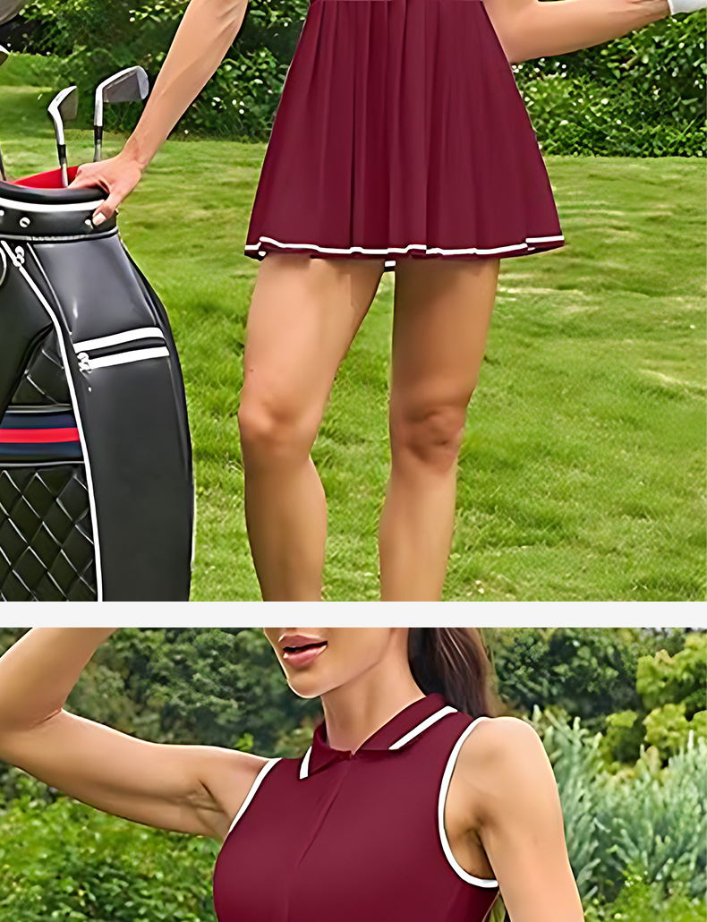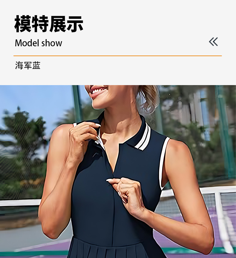 크로스 오버 컬러 폴로 넥 테니스 스커트 골프 원피스 수분 위킹 하프 Zip 주름 피트니스 스커트