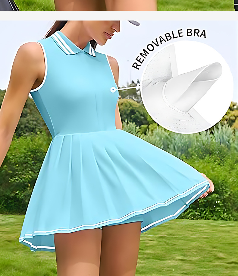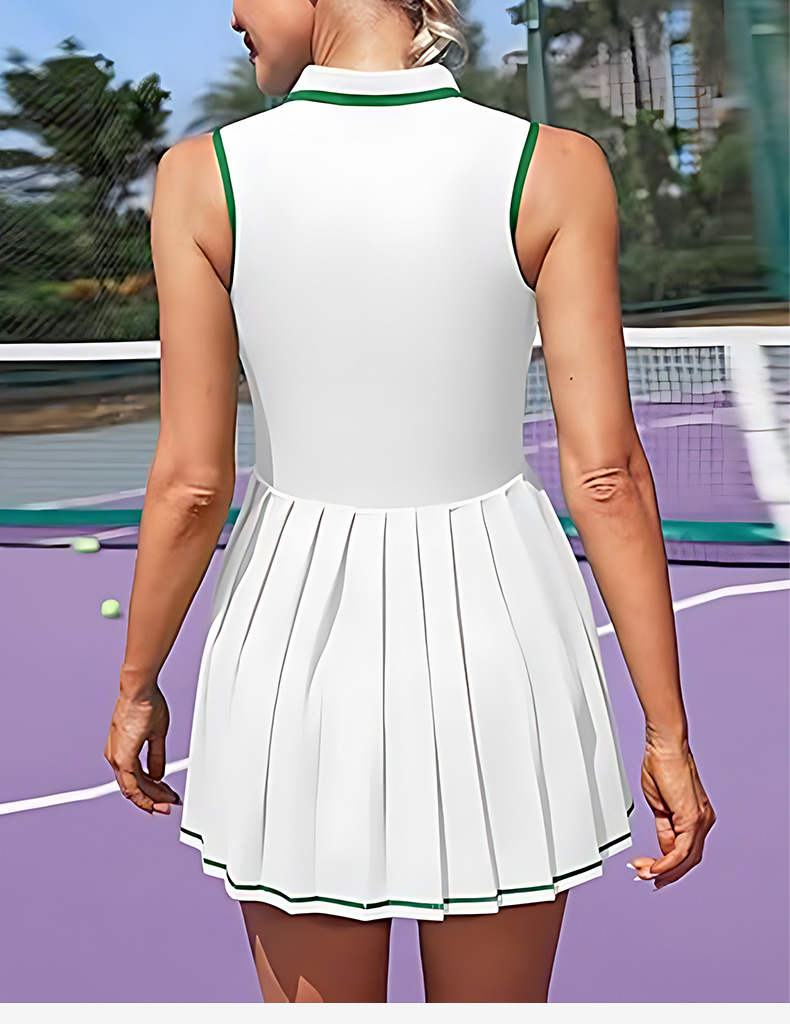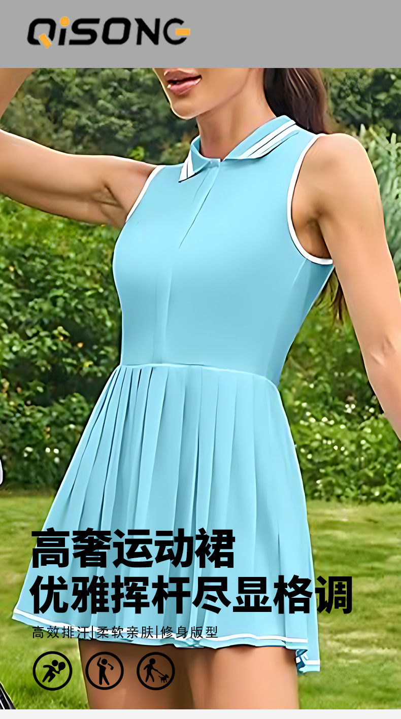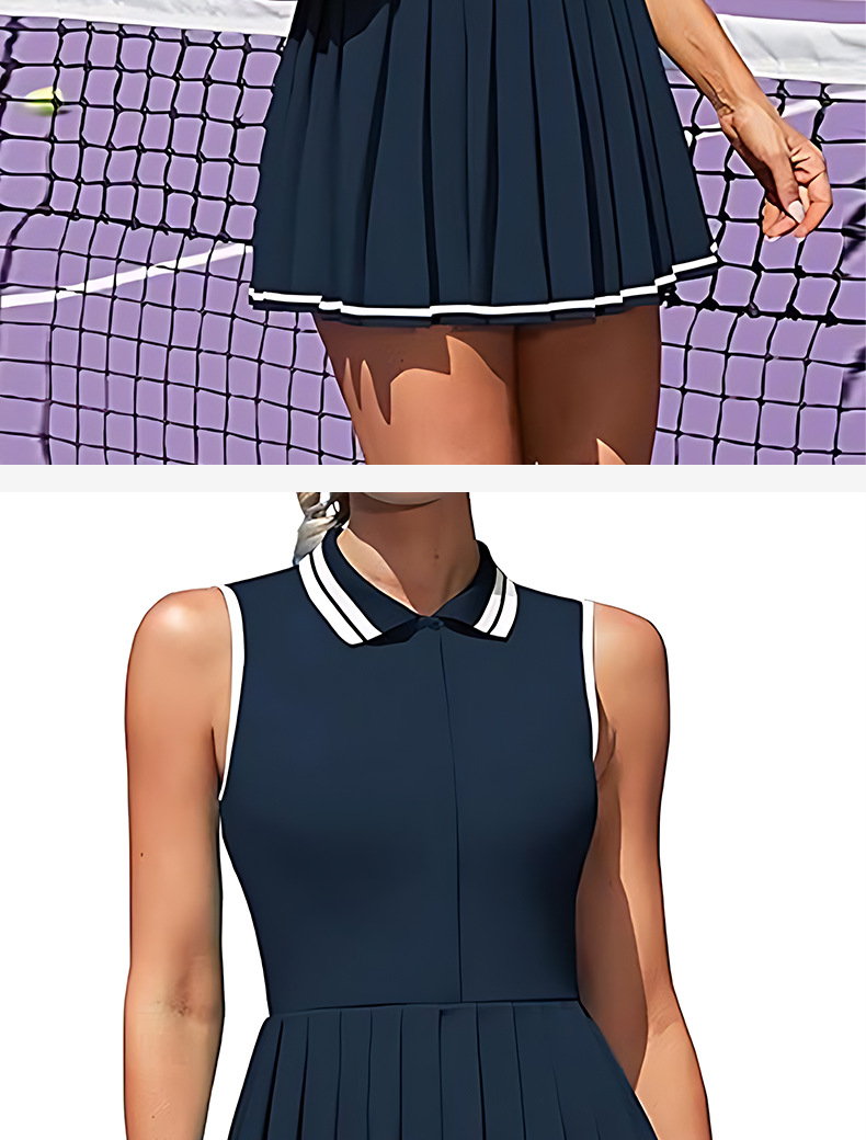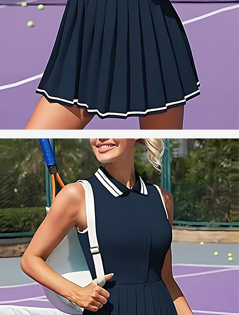 크로스 오버 컬러 폴로 넥 테니스 스커트 골프 원피스 수분 위킹 하프 Zip 주름 피트니스 스커트