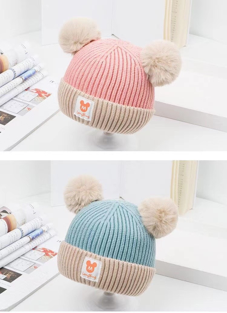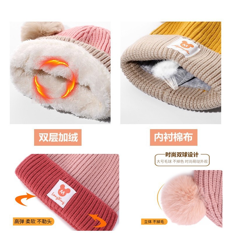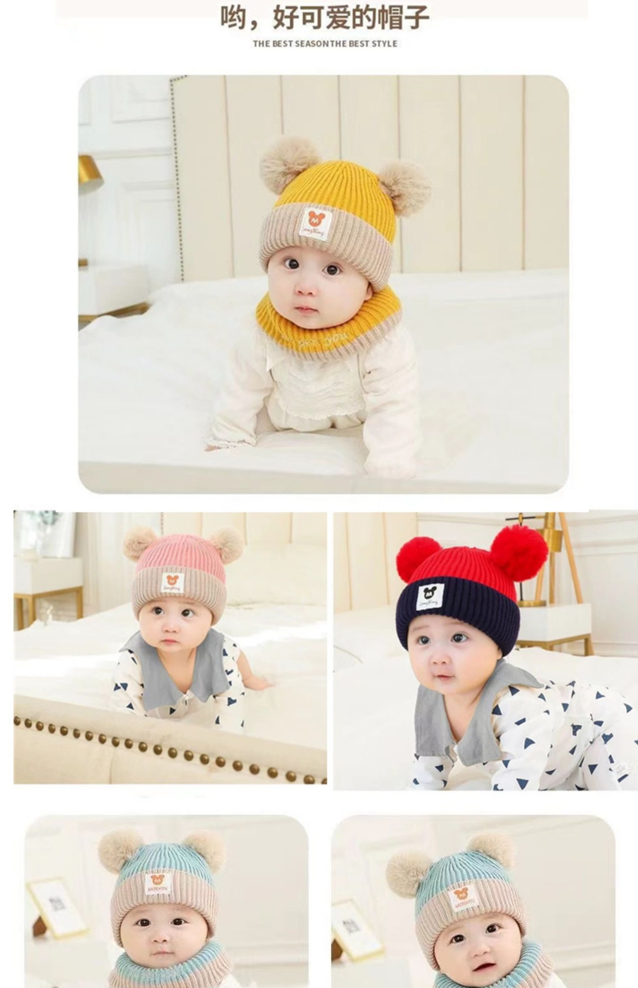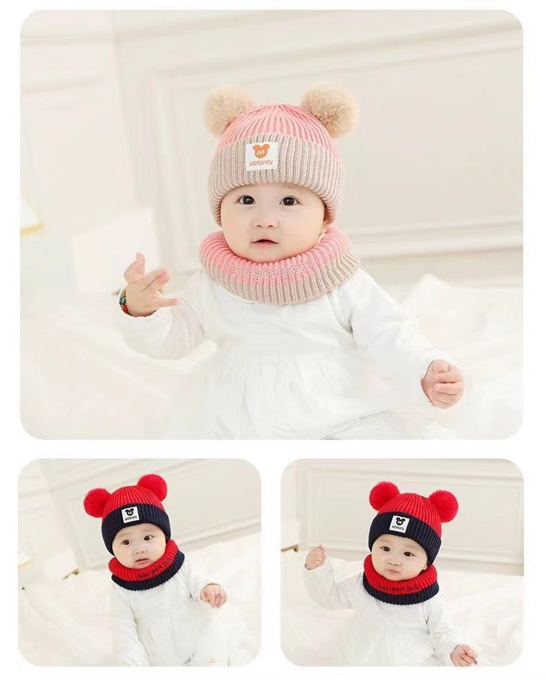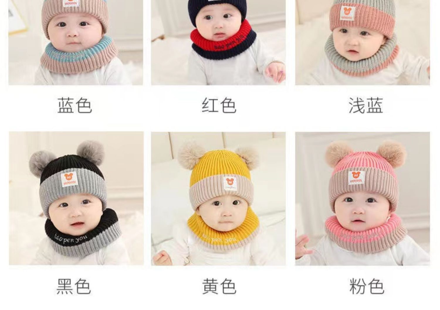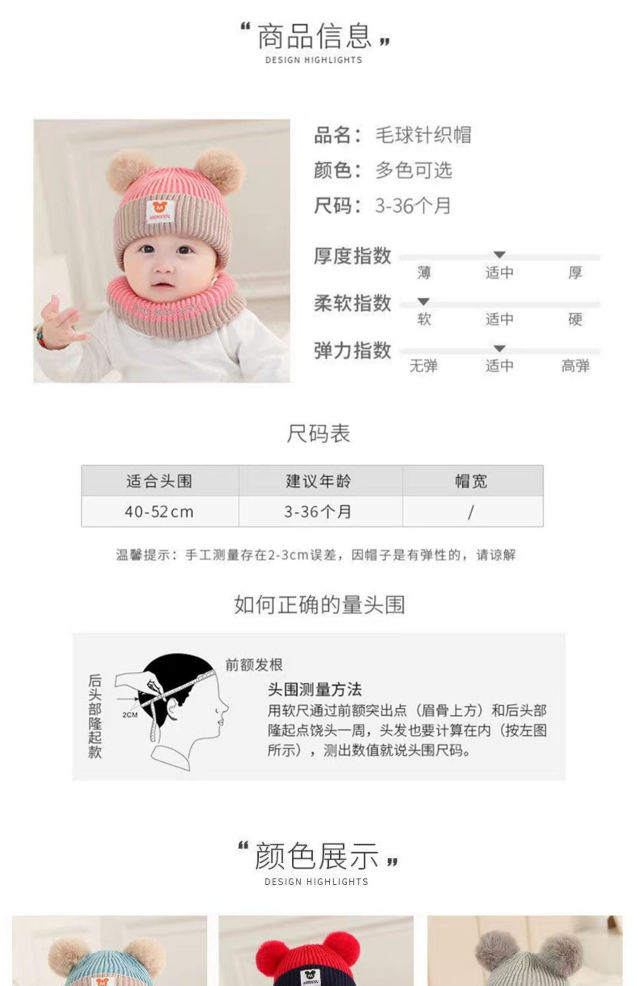 가을 겨울 남녀 어린이용 아기 목도리 일체형 니트 모자 귀여운 볼볼 추가 벨벳 두꺼운 방풍 귀 보호 목 보호