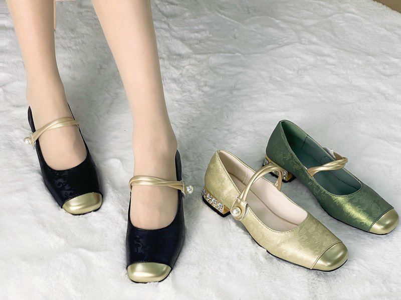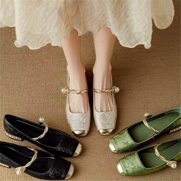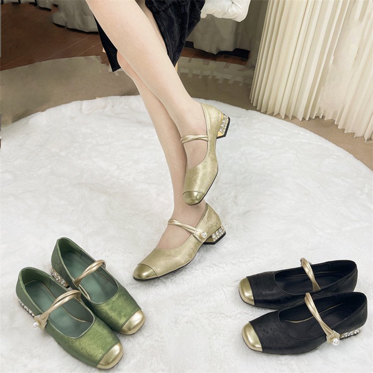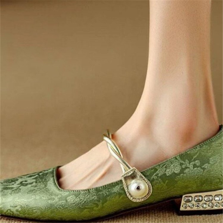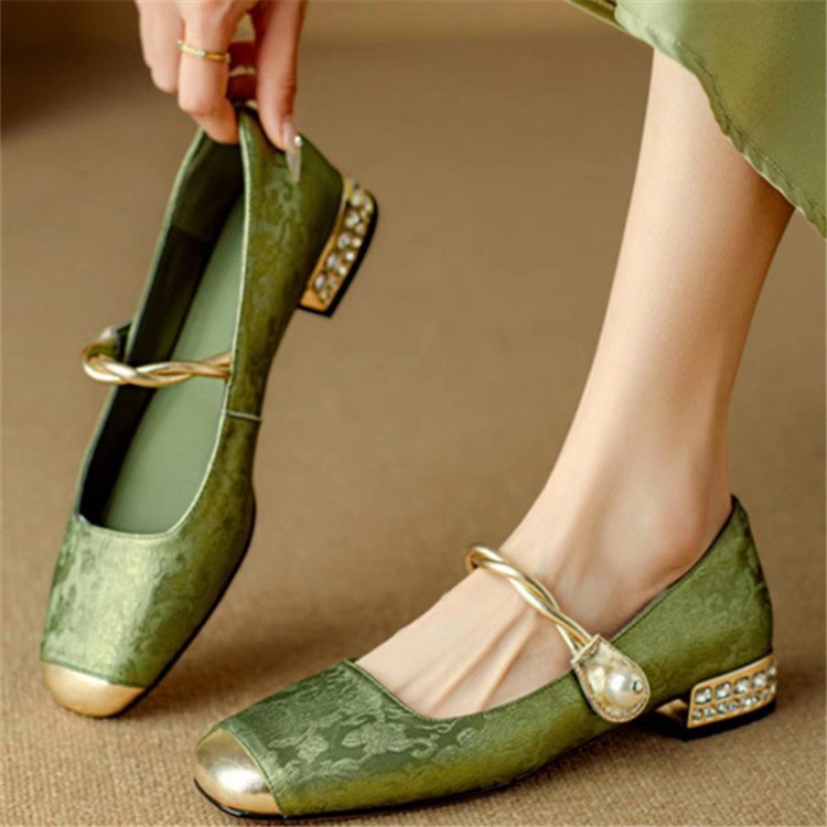 국가 스타일 새로운 중국 스타일 하이힐 여성 2025 봄 새로운 도착 빛 고급 부드러운 저녁 스타일 원피스 프랑스 스타일 두꺼운 힐 싱글 레이어 신발스토어 가기
