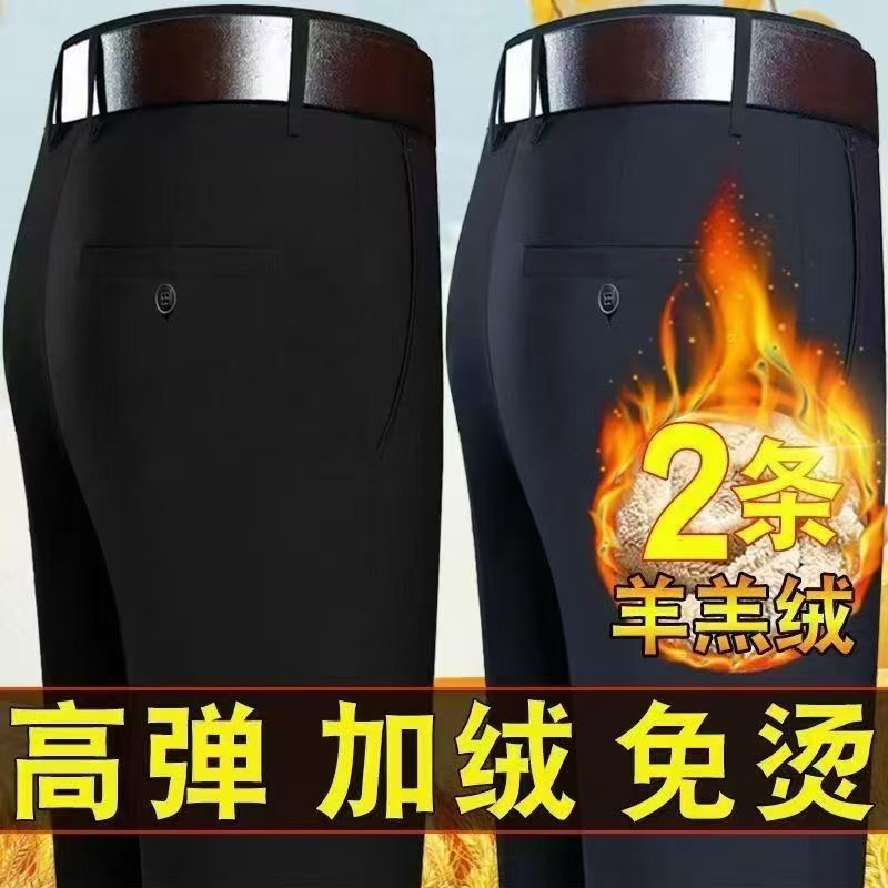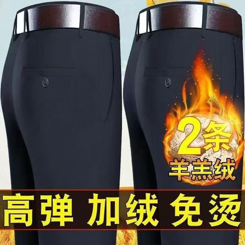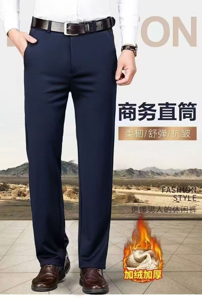 가을 두꺼운 남성 캐주얼 바지 중년 느슨한 스트레이트 하이 허리 비즈니스 스트레치 남성 바지 비 다림질 아빠 바지스토어 가기