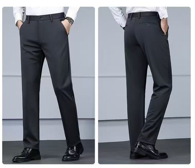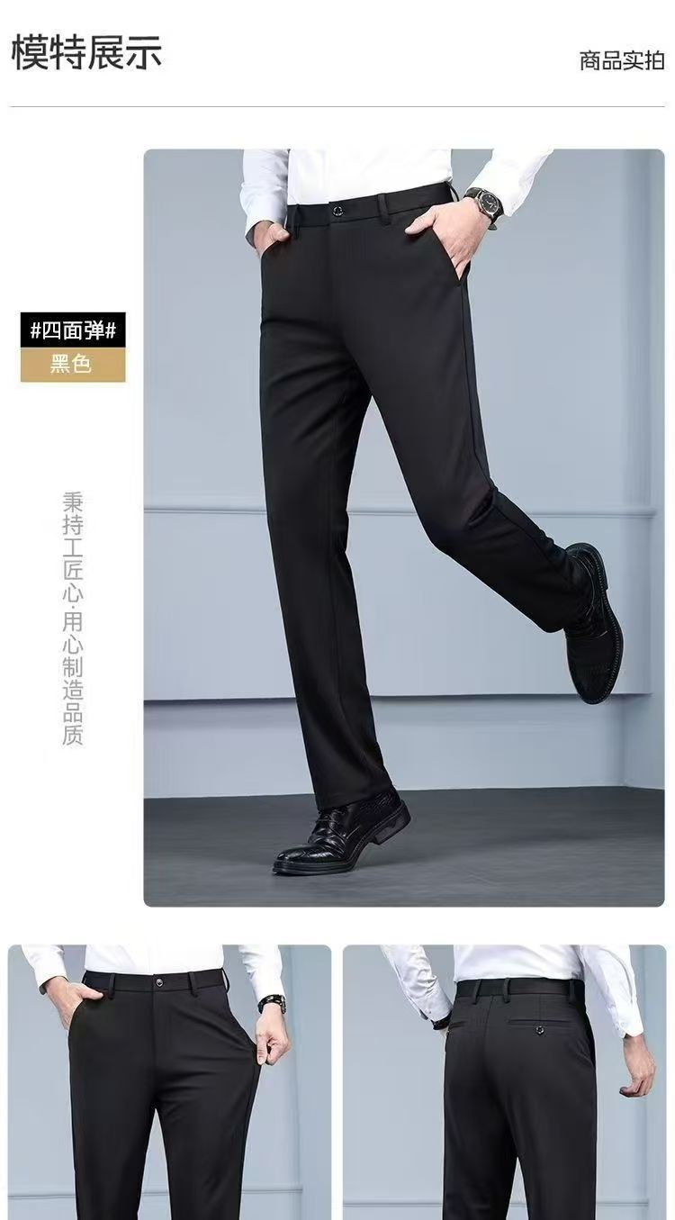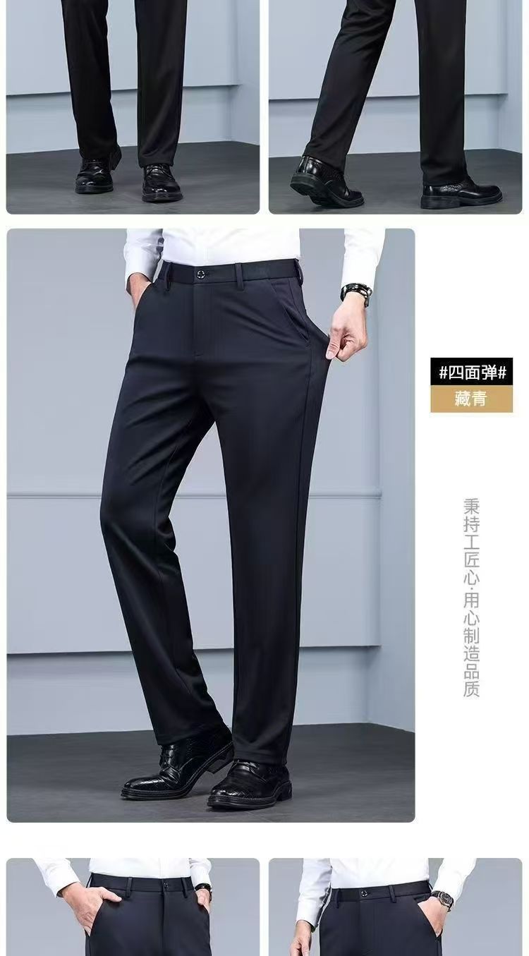 가을 두꺼운 남성 캐주얼 바지 중년 느슨한 스트레이트 하이 허리 비즈니스 스트레치 남성 바지 비 다림질 아빠 바지