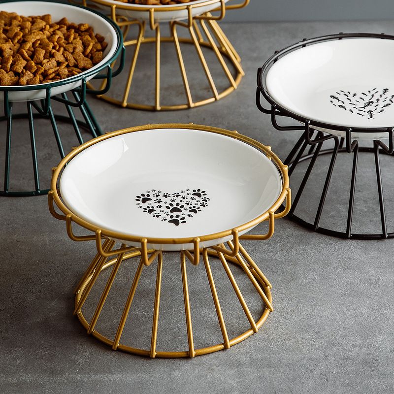 6 인치 고양이 플레이트 높은 다리 고양이 그릇 간단한 스타일 철 프레임 고양이 플레이트는 고양이 먹이 분지를 청소하기 쉬운 자궁 경부 척추 안티 노크를 보호하기 위해