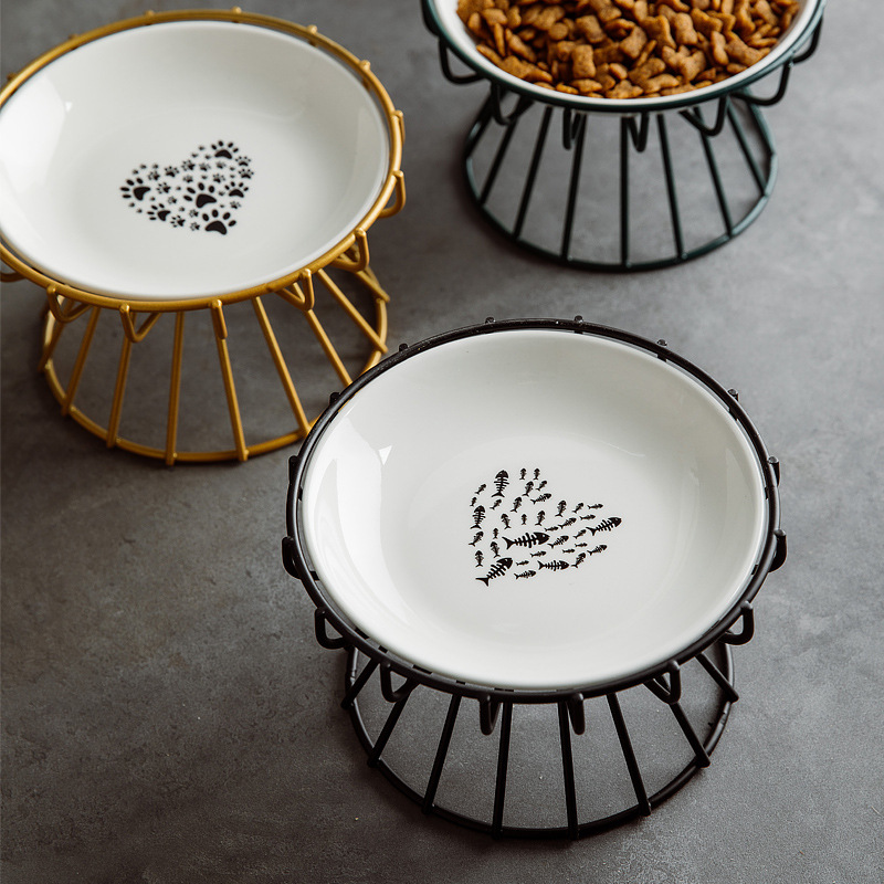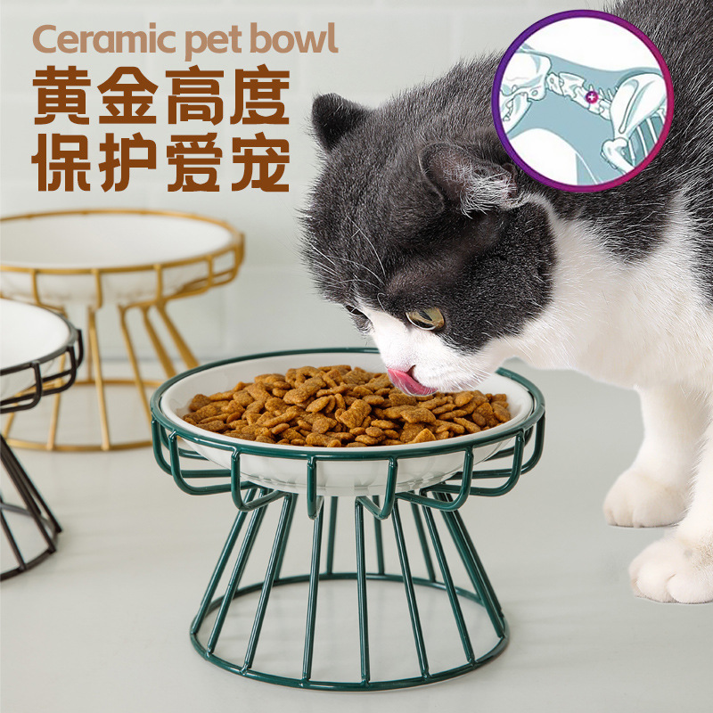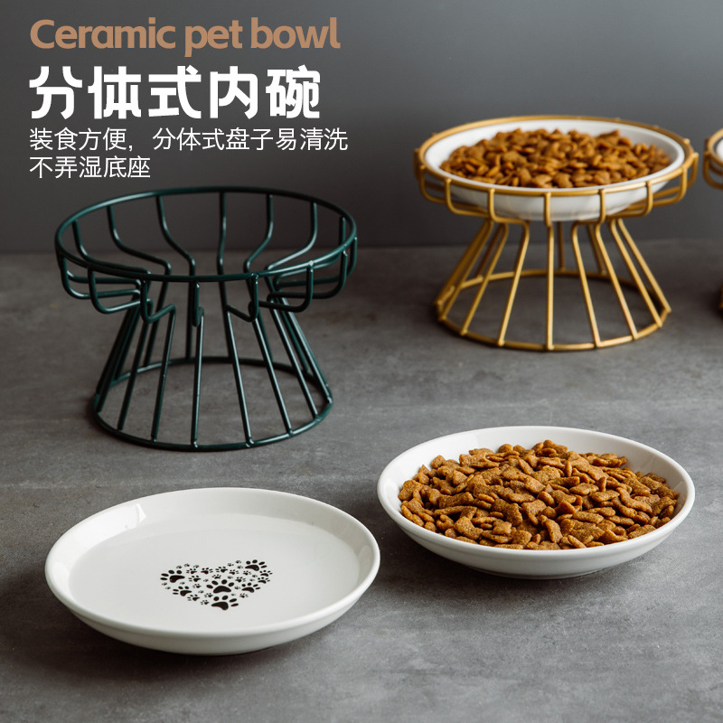 6 인치 고양이 플레이트 높은 다리 고양이 그릇 간단한 스타일 철 프레임 고양이 플레이트는 고양이 먹이 분지를 청소하기 쉬운 자궁 경부 척추 안티 노크를 보호하기 위해스토어 가기