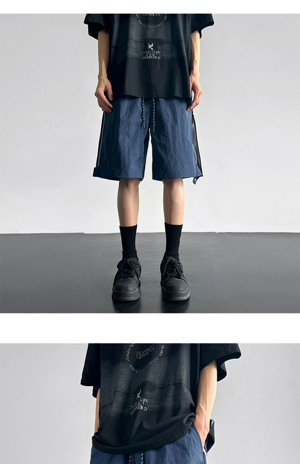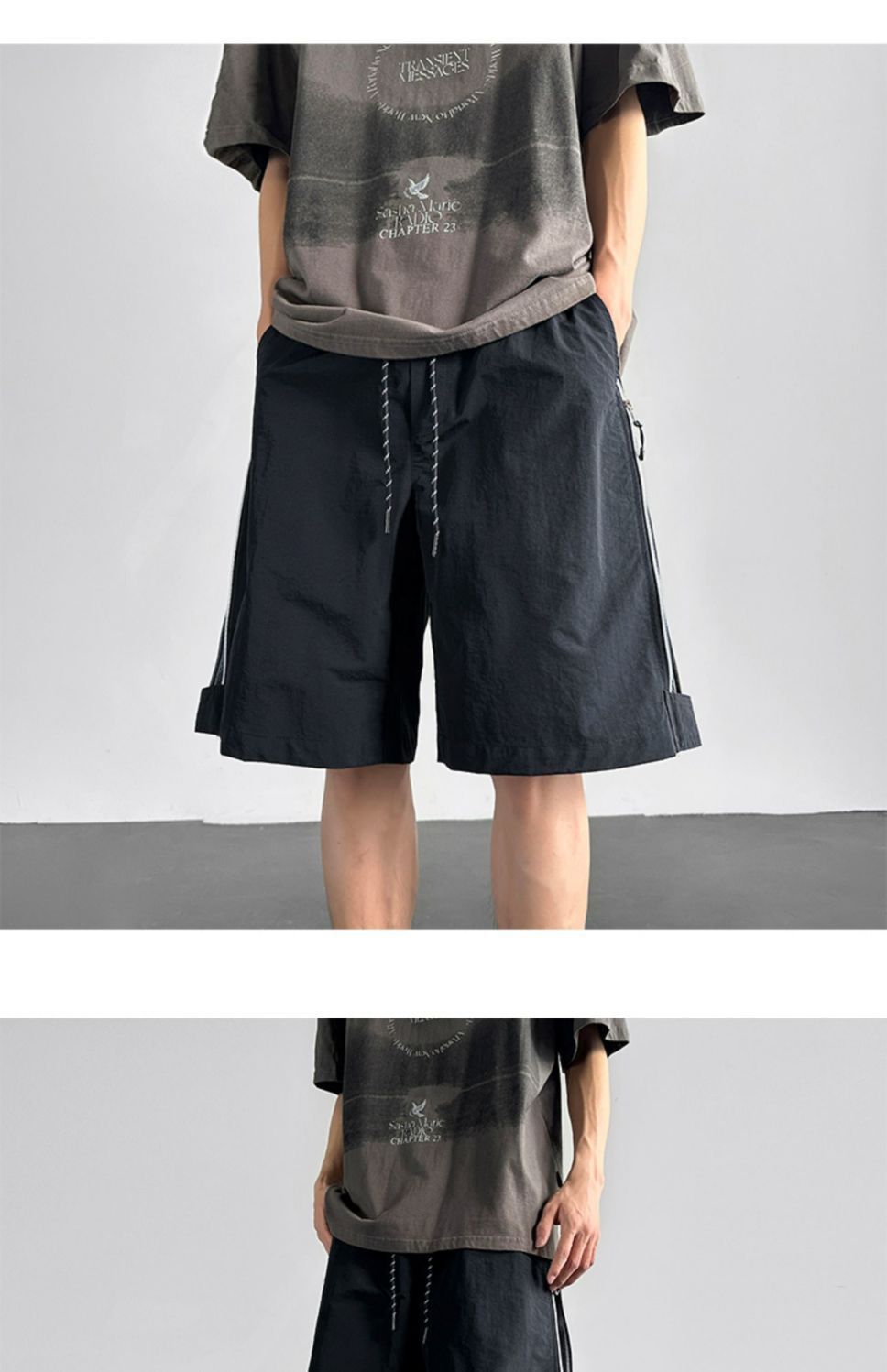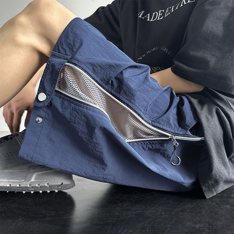 여름 방수 및 오일 방지 충전 반바지 남성 2024 폭발적인 패션 브랜드 메쉬 바느질 경량 느슨한 바지
