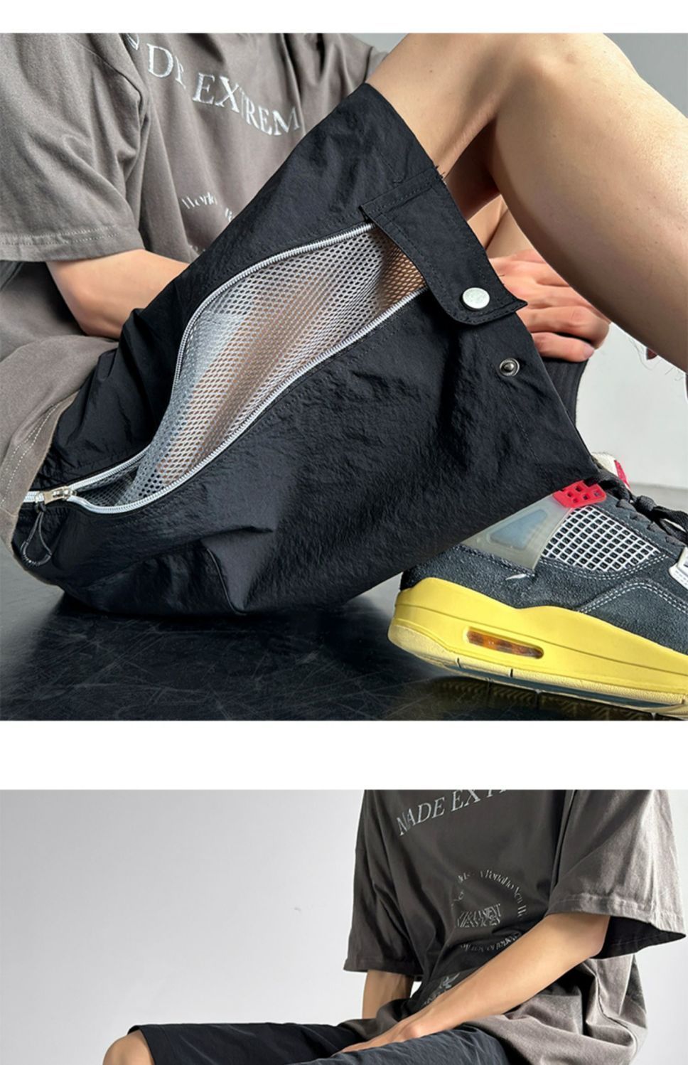 여름 방수 및 오일 방지 충전 반바지 남성 2024 폭발적인 패션 브랜드 메쉬 바느질 경량 느슨한 바지스토어 가기