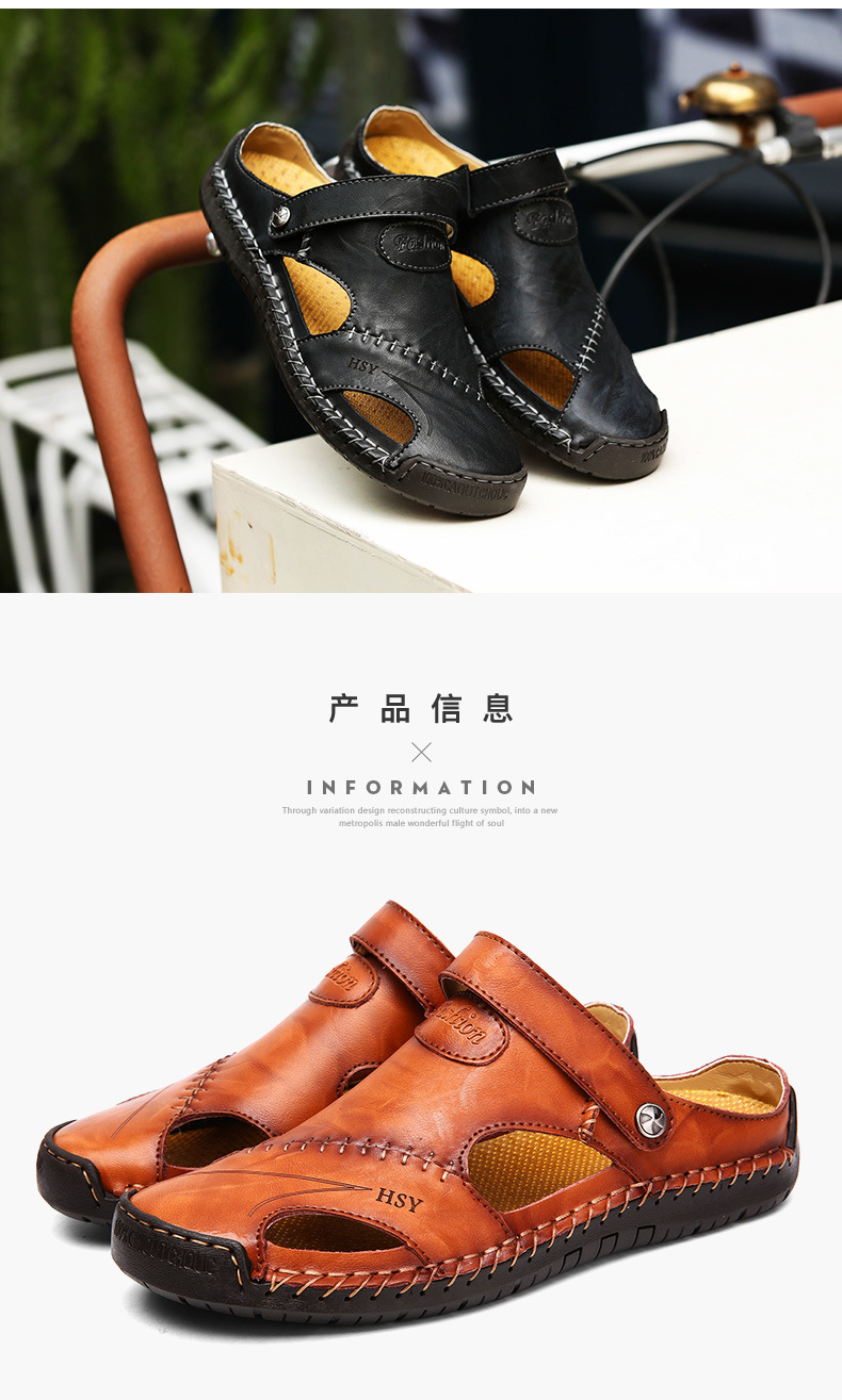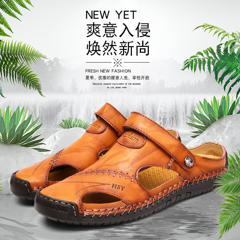 여름 남성 샌들 국경 간 플러스 사이즈 대외 무역 해변 가죽 샌들 남성용 신발 속이 빈 샌들 남성용 샌들 슬리퍼