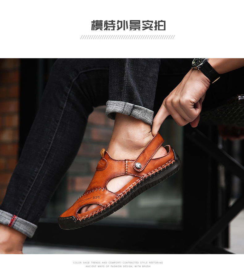 여름 남성 샌들 국경 간 플러스 사이즈 대외 무역 해변 가죽 샌들 남성용 신발 속이 빈 샌들 남성용 샌들 슬리퍼스토어 가기