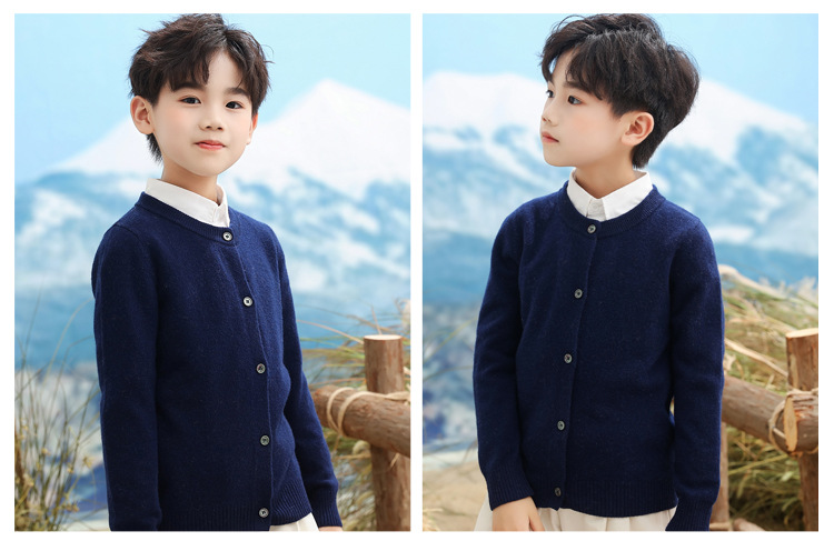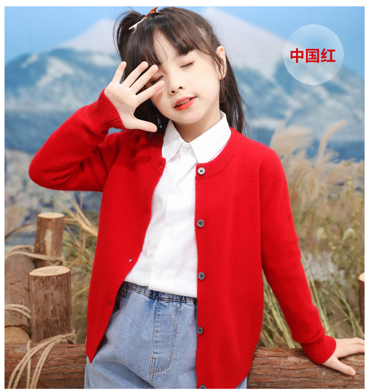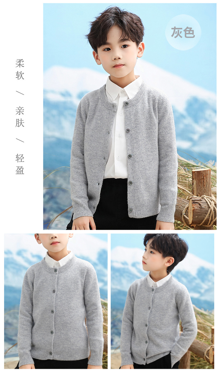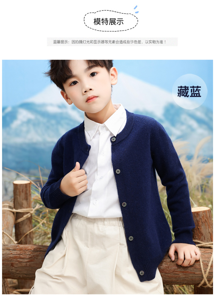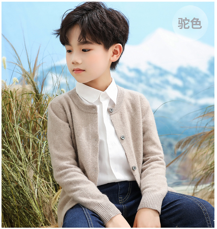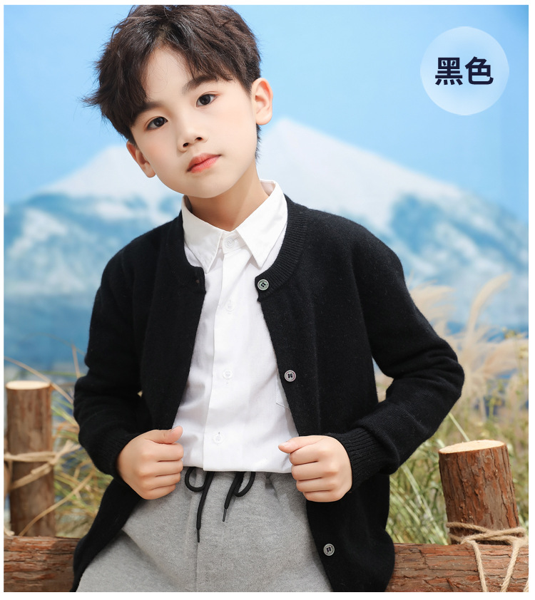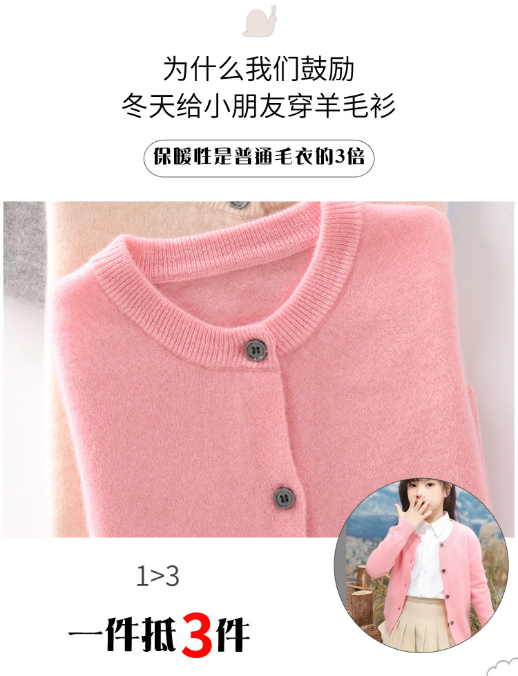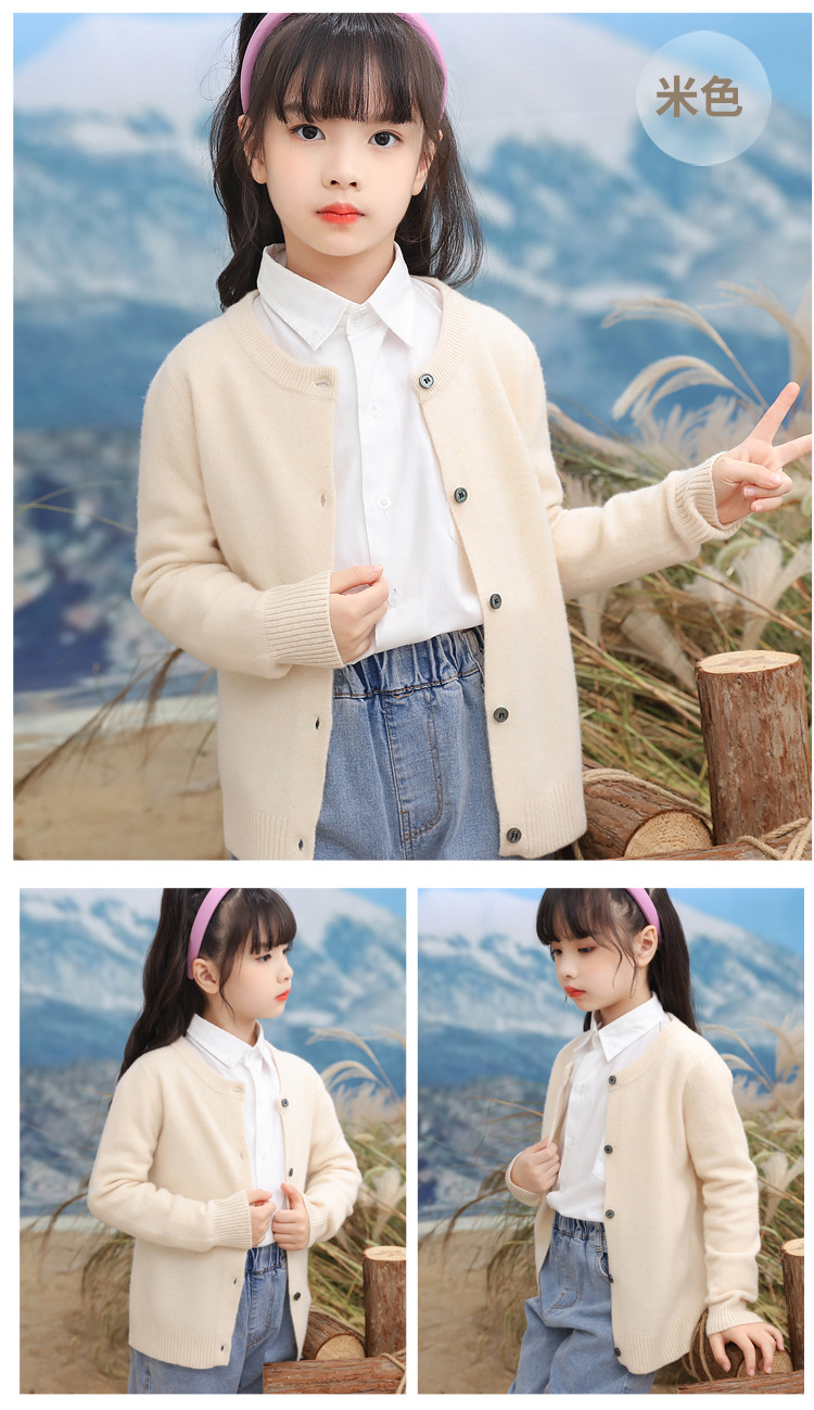 가을과 겨울 2024 새로운 순수 양모 단일 가닥 크루 넥 니트 카디건 단색 느슨한 코트 소년 소녀
