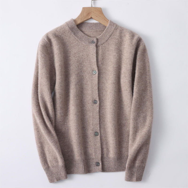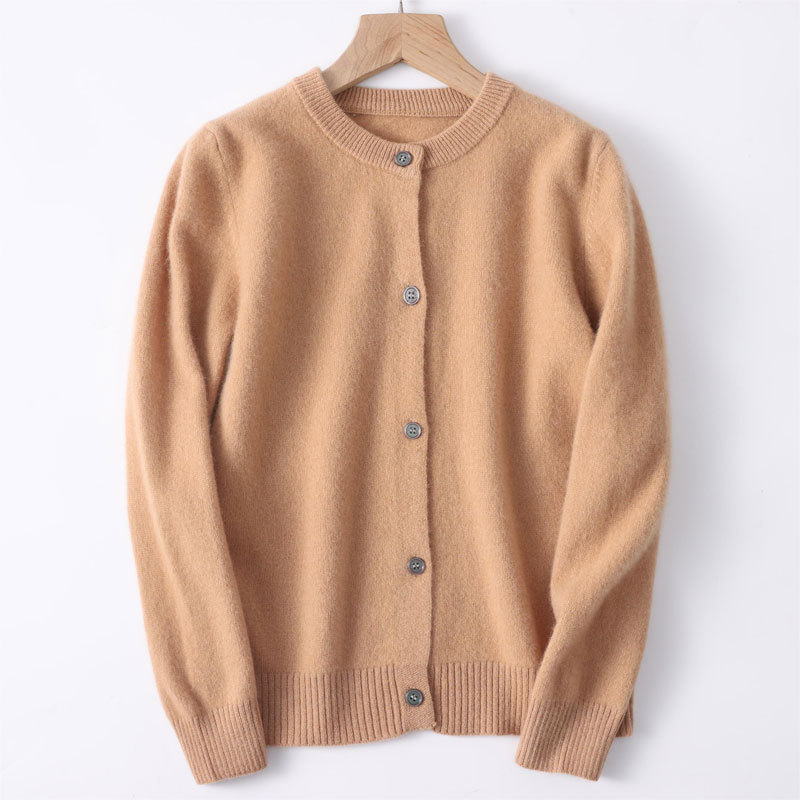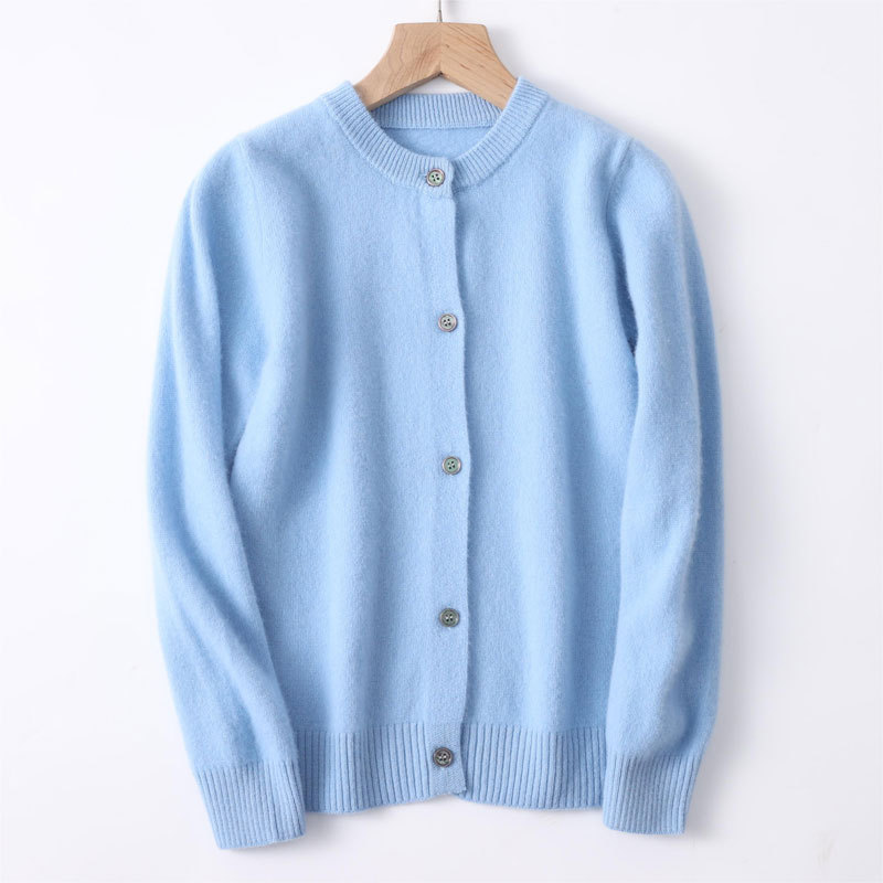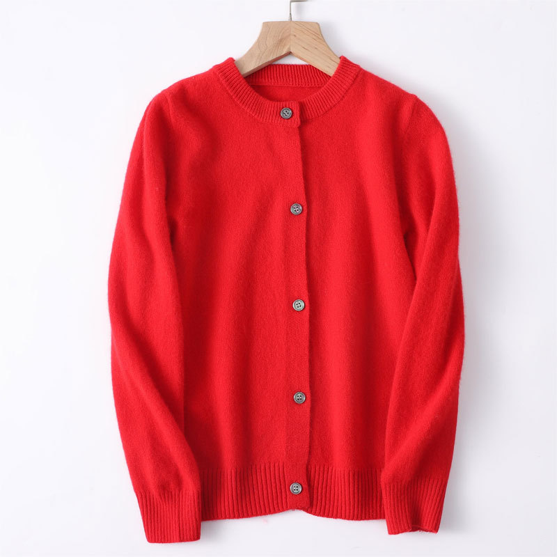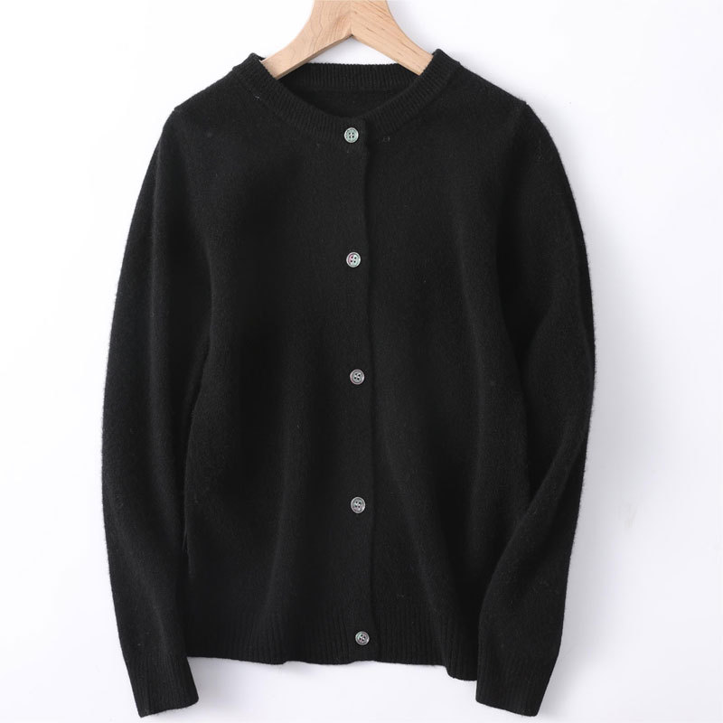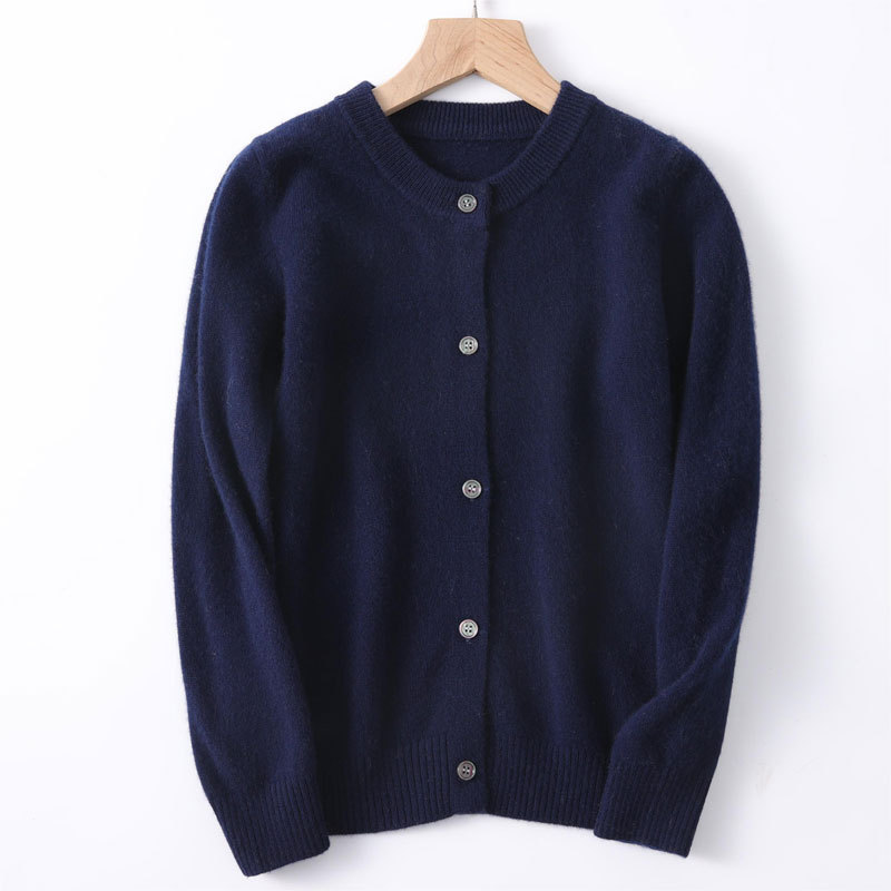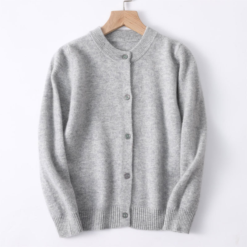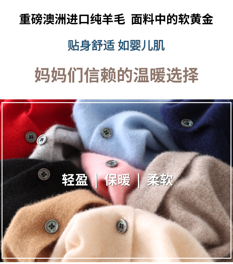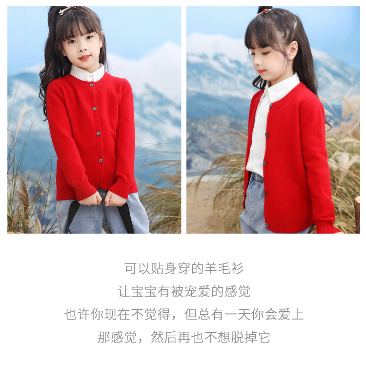 가을과 겨울 2024 새로운 순수 양모 단일 가닥 크루 넥 니트 카디건 단색 느슨한 코트 소년 소녀
